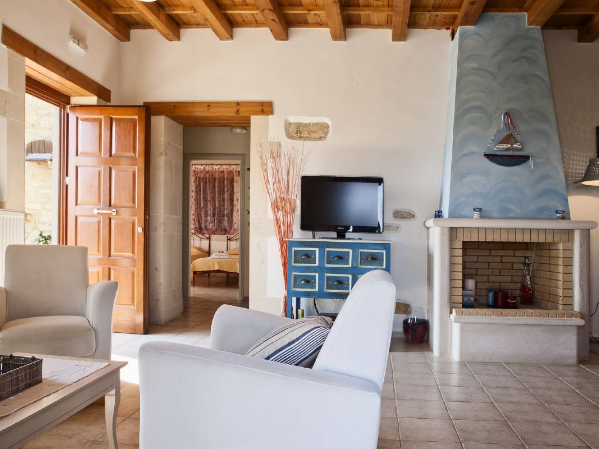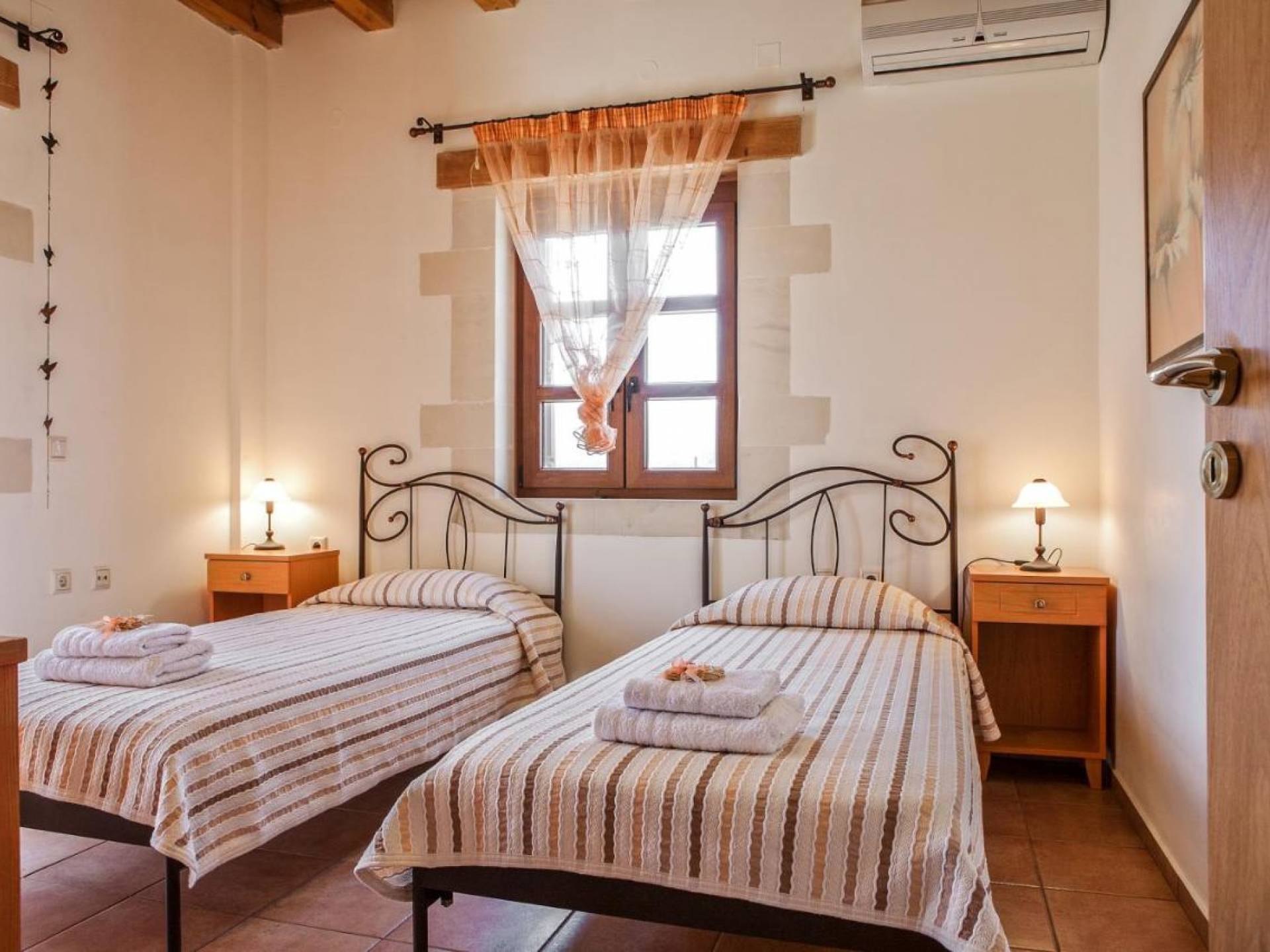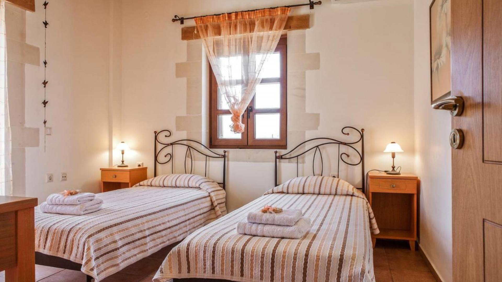 Overview: Villa Arodamos Rethymno consisting of 2 nearby twin-buildings (10meters away), a total of 240 m2 buildings in a land of 8.000 m2, 9 bedrooms, 8.000m2 plot, with pool. Each building offers a Ground floor: On the ground floor from the main entrance, we enter into a big area combining: dining area, living room area with fireplace and a fully equipped open plan kitchen. Also a twin bed bedroom and a bedroom with double bed, both with balcony. We also find a full bathroom (WC/shower room/washing machine).