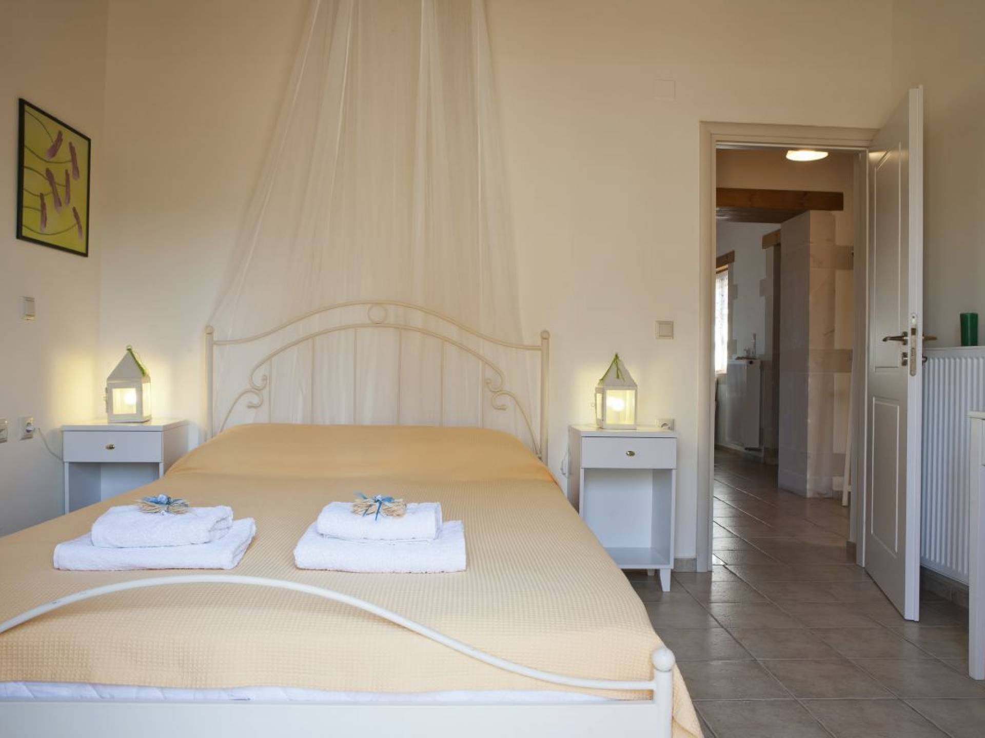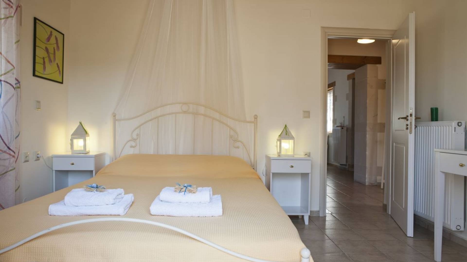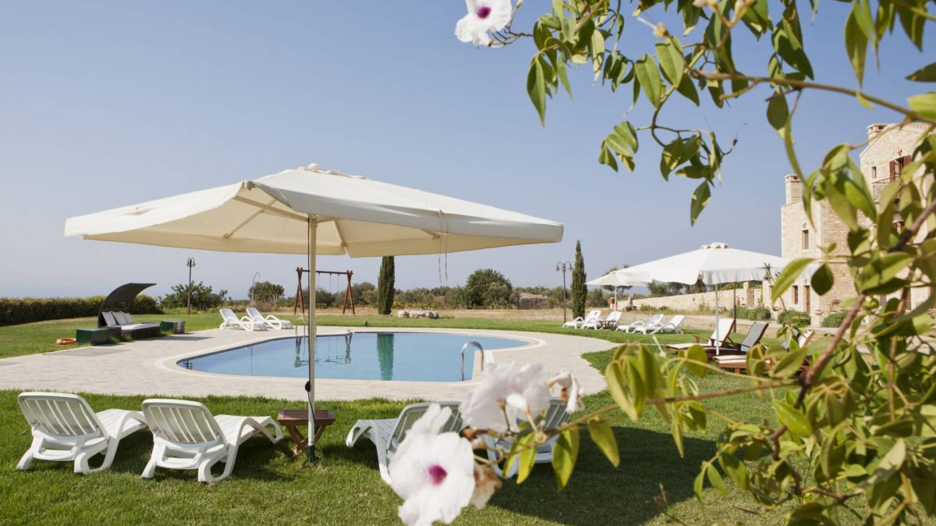 1st floor: From the interior stairs we enter into the hall with access to the two bedrooms, both with 2 single beds (may be united), and a huge veranda with wonderful sea-mountain-country views. Also a full bathroom (WC/bathtub/shower). Surroundings: Surrounded by a beautiful garden covered in grass, also flower beds at the middle of a huge olive grove Forrest. At the yard there is a large swimming pool, with armchairs, chairs, tables, umbrellas, bbq, build the oven. The villa also features a children`s swing, seesaw, slide, in a big plot of 8.000 m2 and plenty of parking space.