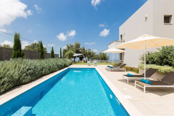 Villa Essence Crete, is a luxury retreat set on a private 4,000 m² estate near the picturesque village of Amnatos. Nestled among olive groves, the villa offers complete privacy, breathtaking sea views, and a refined contemporary design - all while remaining close to everyday conveniences.