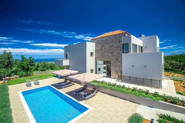 Escape to a stunning modern retreat nestled in a serene olive grove - just minutes from the beach, charming villages, and cultural landmarks. Villa Essence Crete, an elegant 250 sqm two-level villa with a separate guest house offers complete privacy, luxurious amenities, and breathtaking views of the Cretan landscape.