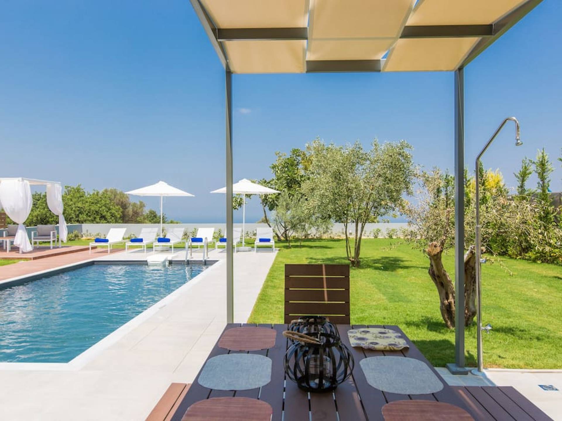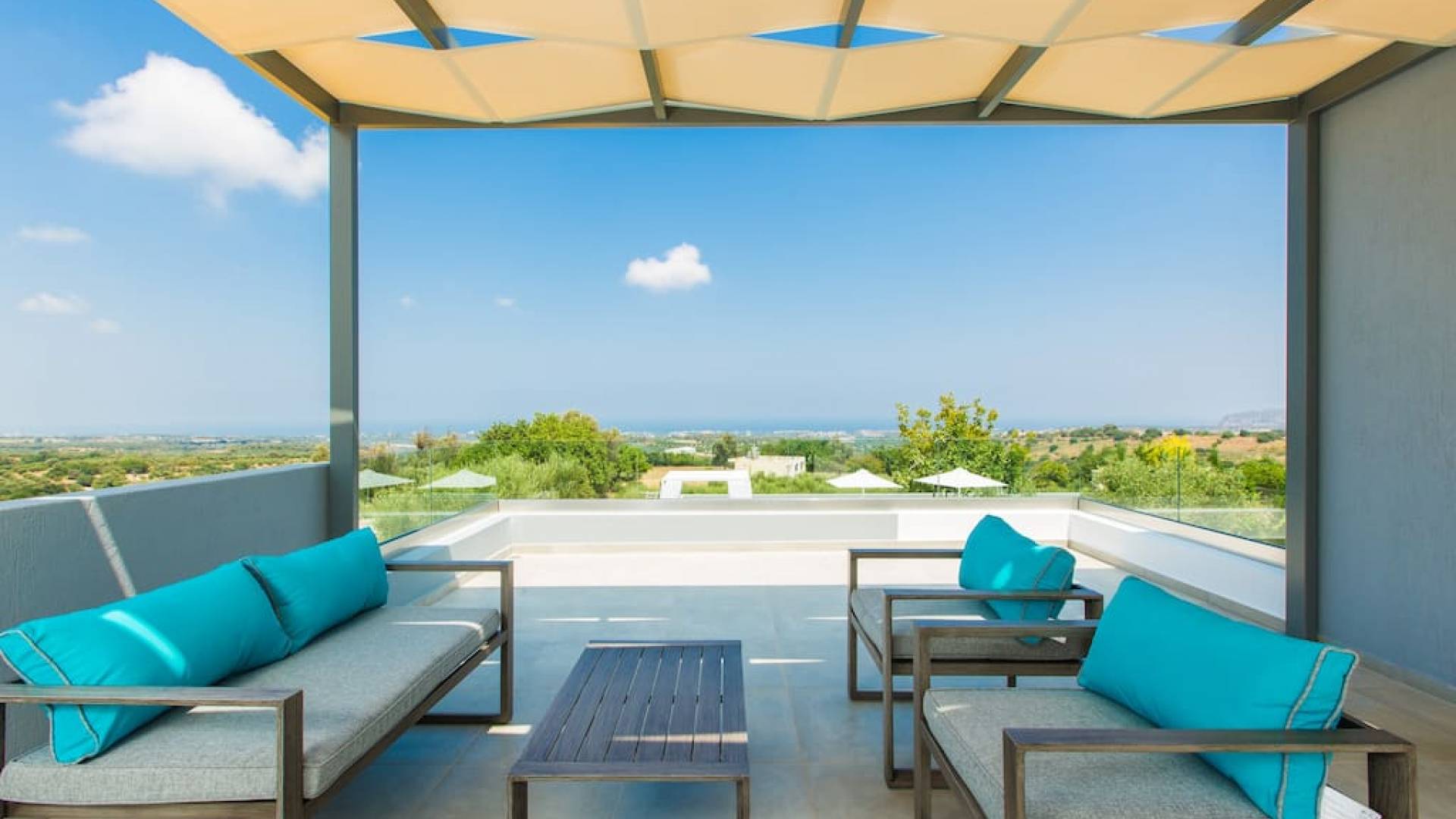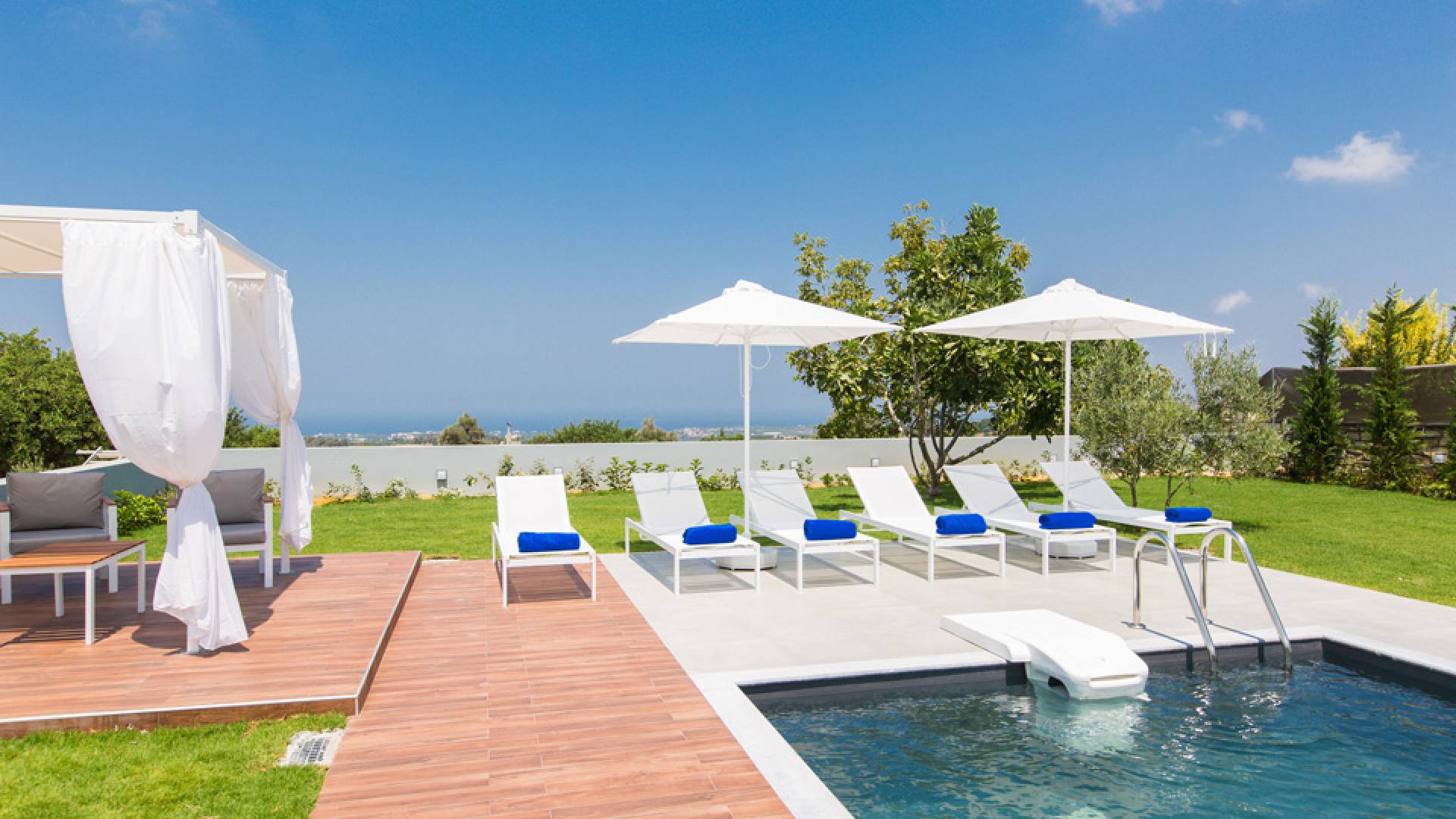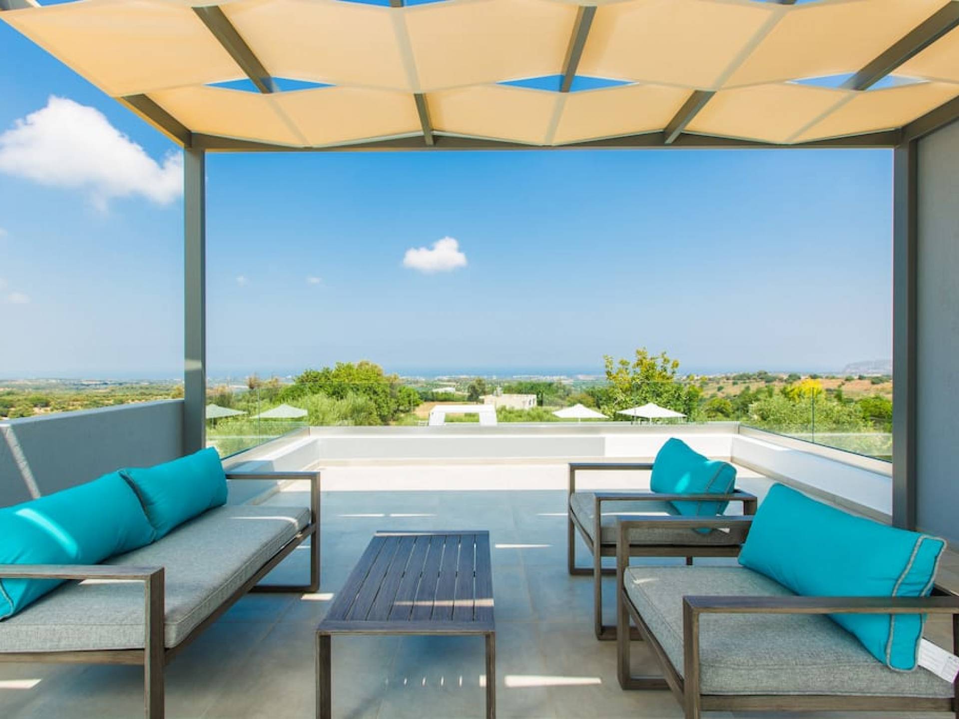 Recently built, on a mountain slope, and in one of the nicest and most fertile areas of Crete, in the modern architecture of 180 m2 and three levels, in an idyllic picturesque background and with a breathtaking view, only 18 km away from Rethymno, Vilana Villa Crete is ideal for moments of relaxation and peace. The villa offers a memorable and fascinating holiday in a luxury self-catering accommodation experience throughout the year with the capability of hosting 2 - 8 people in Rethymno Crete.