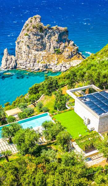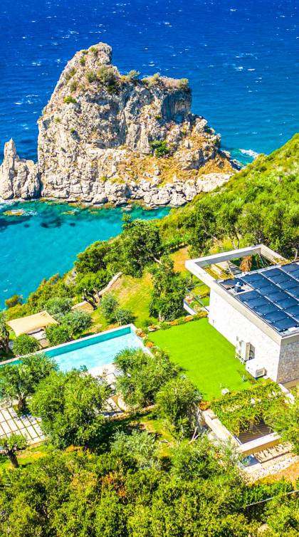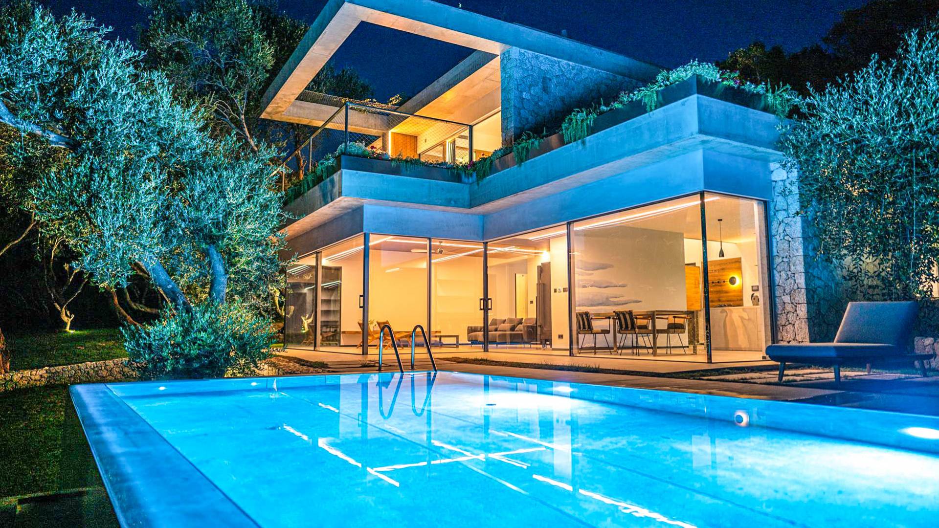 Fulfill your vacation dream – wake up every morning with the bustle of olive groves. Let the sky-blue water bay enchant you. The luxury villa offers a direct sea view from the cliffside and a wonderful view of the horizon. This is the best place for your unforgettable vacation time.