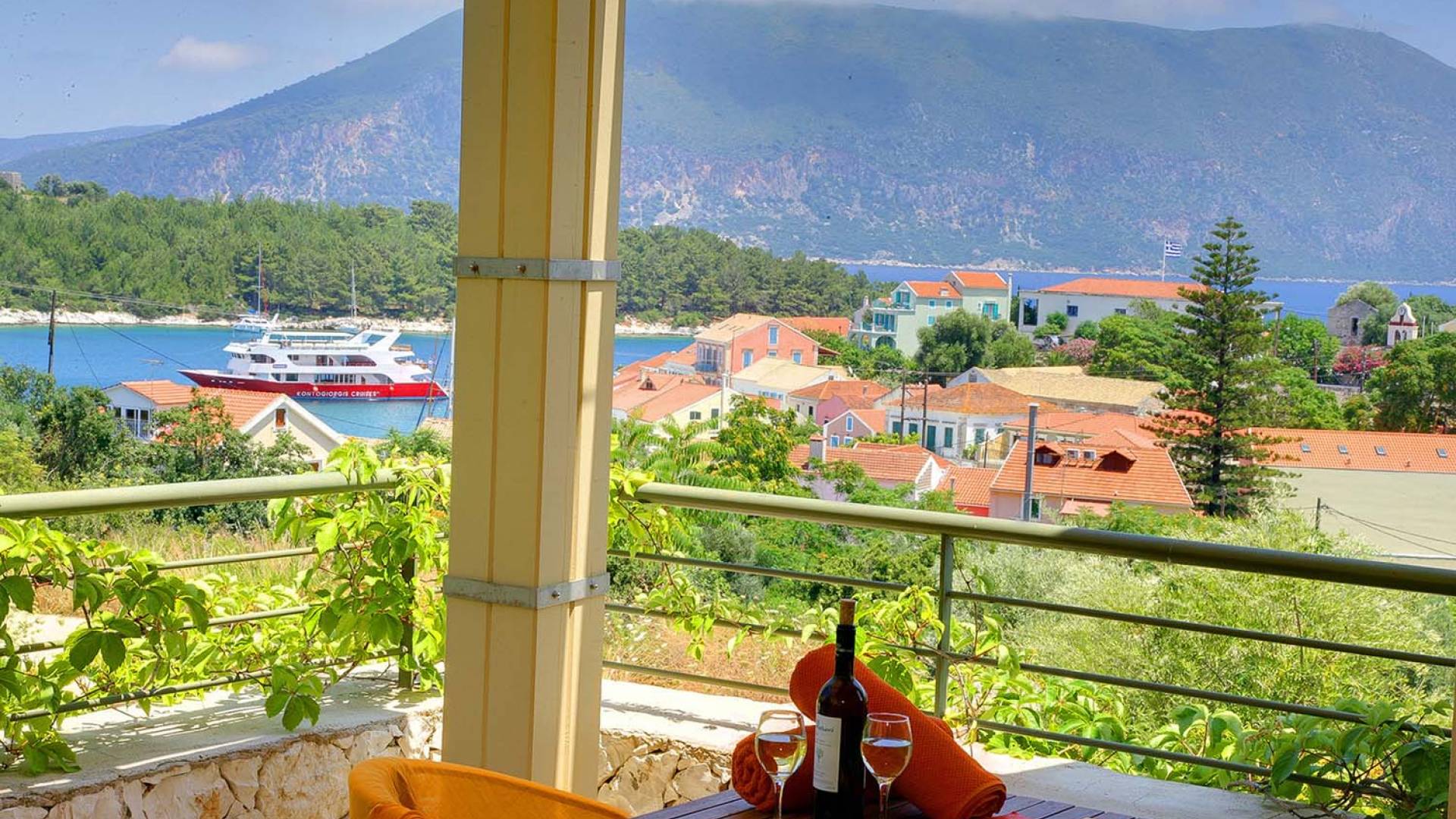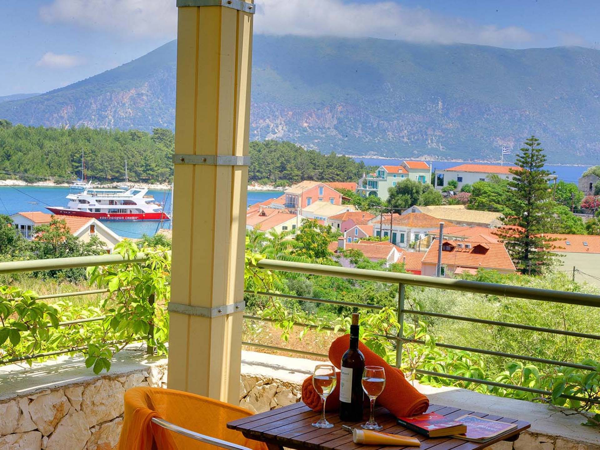 Fiscardo is located 50km north of Argostoli, the capital of Kefalonia. The picturesque village hosts many private yachts and fishing boats and has a lively cosmopolitan atmosphere. Fiscardo offers stunning views to the island of Ithaca and is one of the few villages that remained intact from the major earthquake of 1953. Today Fiscardo is a pole of attraction due to its natural beauty and colorful, picturesque architecture, but also famed for its…Fiscardo is located 50km north of Argostoli, the capital of Kefalonia. The picturesque village hosts many private yachts and fishing boats and has a lively cosmopolitan atmosphere. Fiscardo offers stunning views to the island of Ithaca and is one of the few villages that remained intact from the major earthquake of 1953. Today Fiscardo is a pole of attraction due to its natural beauty and colorful, picturesque architecture, but also famed for its…