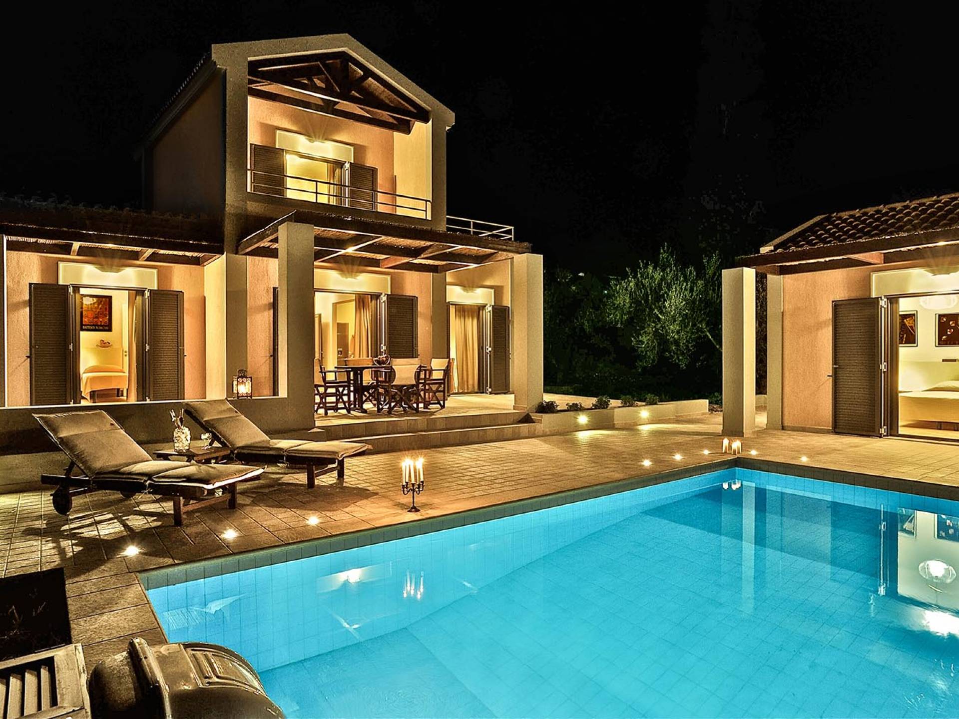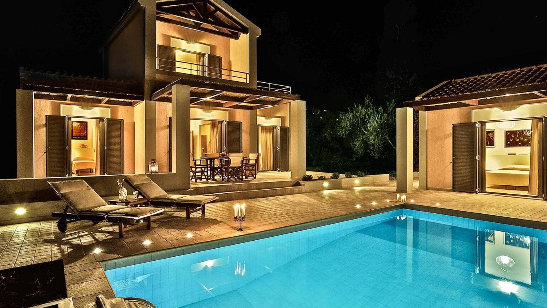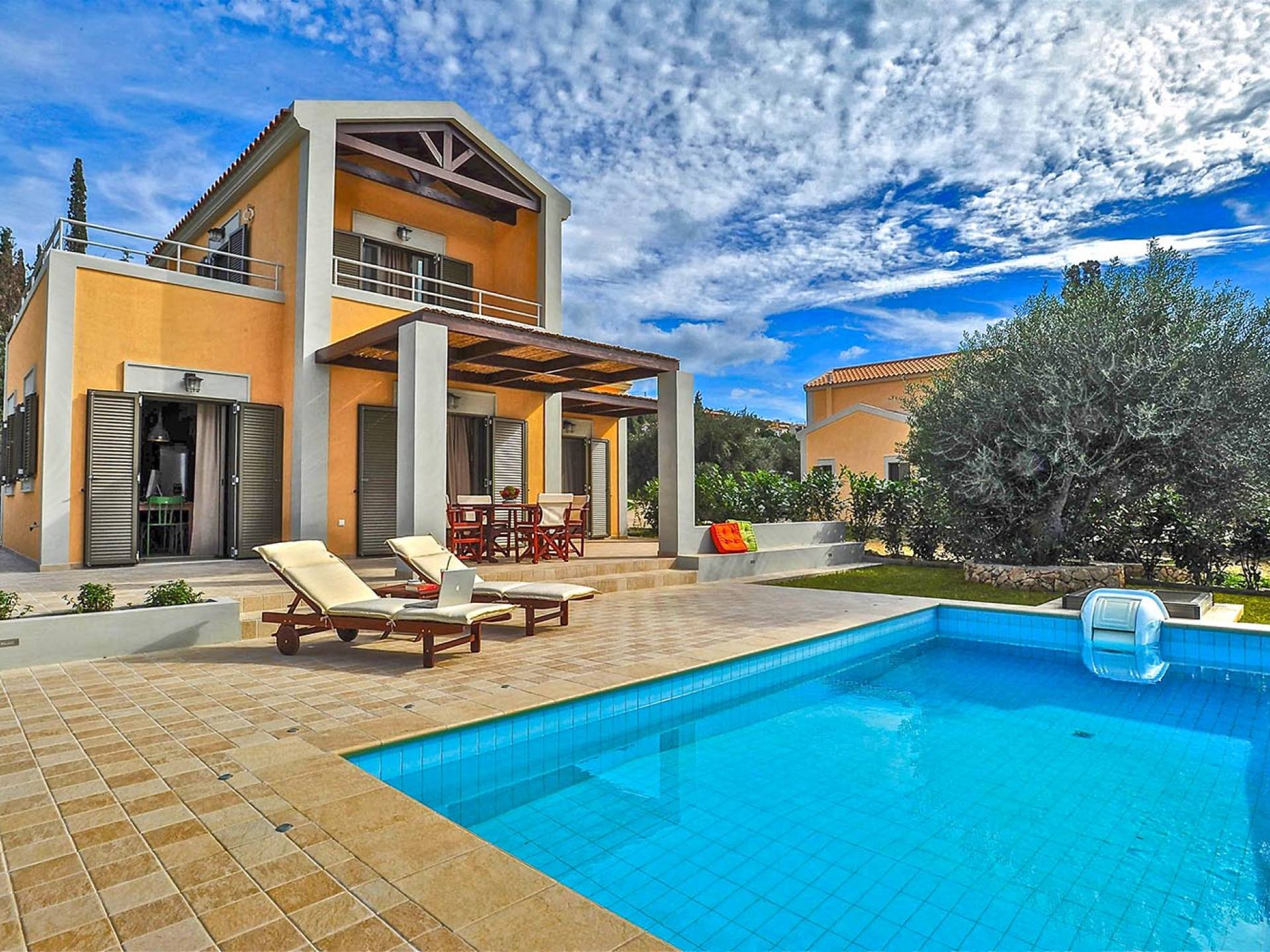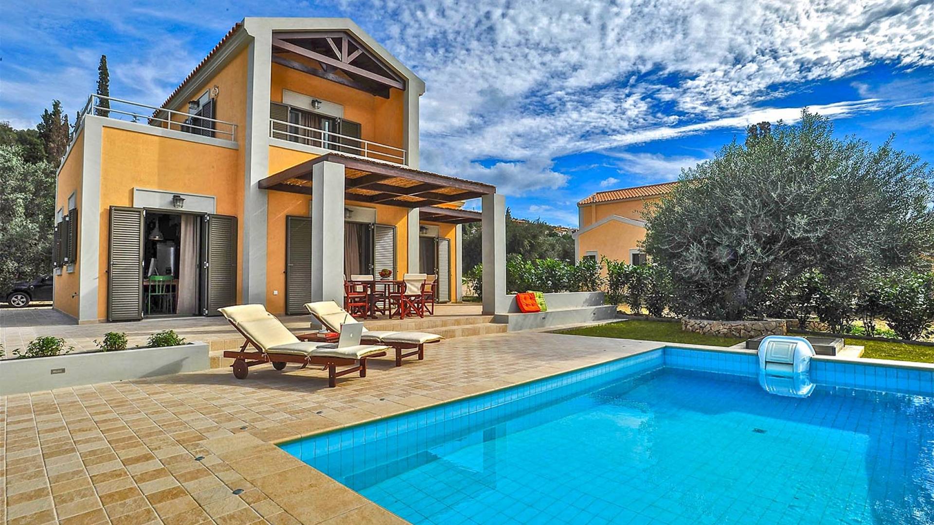 Villa Agrilia is a luxury villa rental with 3 bedrooms and private pool. A two-storey detached villa plus studio ready to host up to 7 guests. The main building, on the ground floor, consists of a living-room, dining-room, fully equipped modern kitchen, W.C., double bedroom and offers direct access to the private pool. On the first floor there is the master bedroom, a bathroom and two large balconies. The villa also has a sofa bed for one guest. The studio has an open plan area with its own private facilities. On the verandas you can relax and plan the following day’s summer activities.