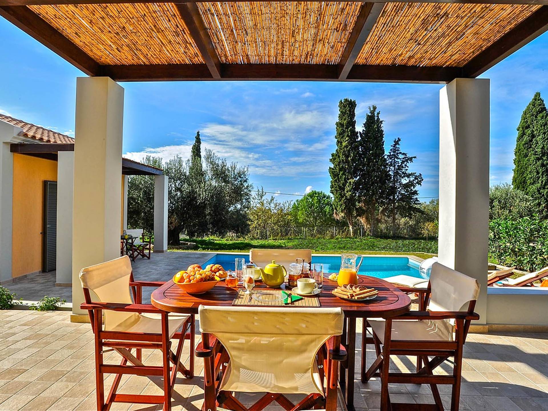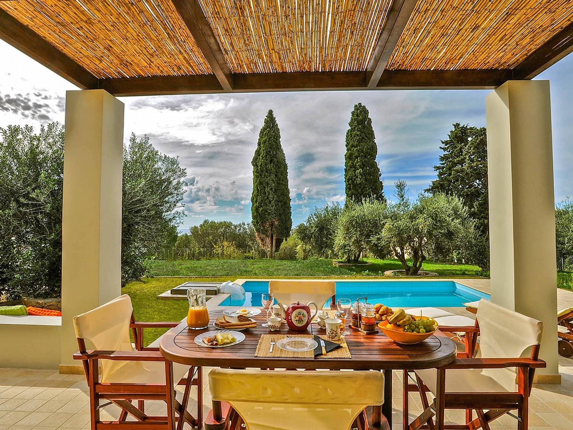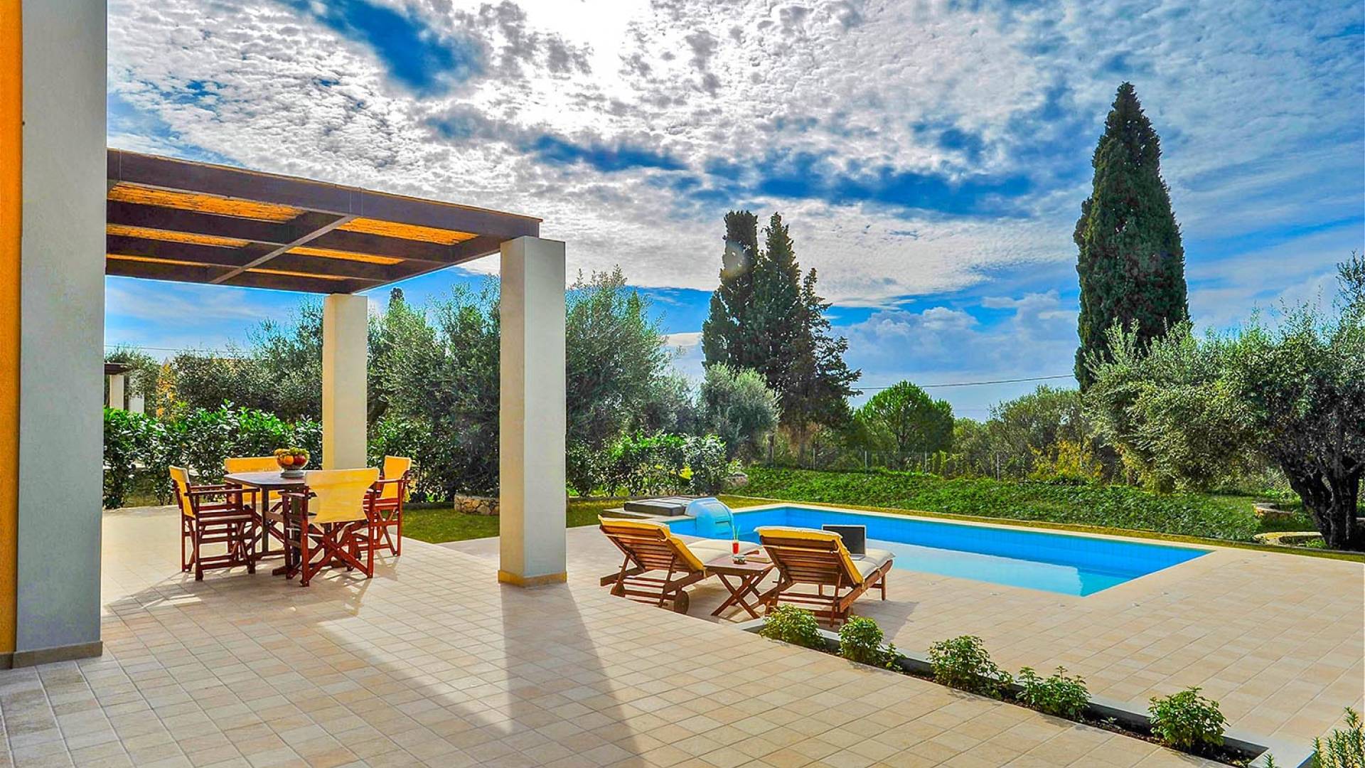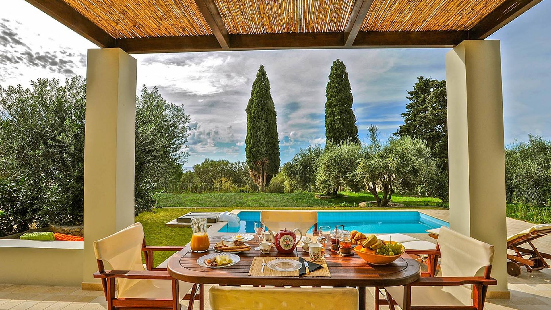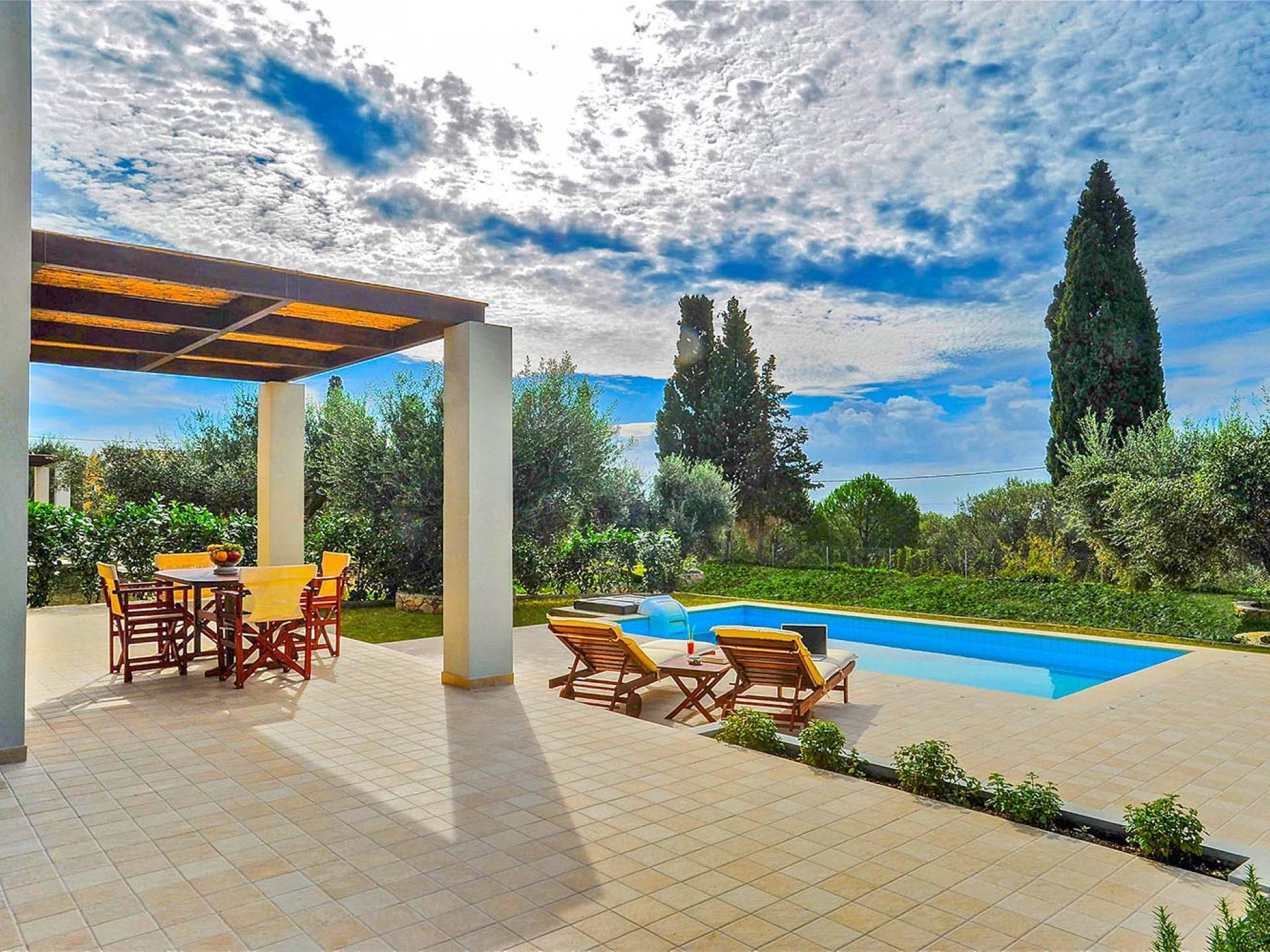 Villa Agrilia is a luxury villa rental with 3 bedrooms and private pool. A two-storey detached villa plus studio ready to host up to 7 guests. The main building, on the ground floor, consists of a living-room, dining-room, fully equipped modern kitchen, W.C., double bedroom and offers direct access to the private pool. On the first floor there is the master bedroom, a bathroom and two large balconies. The villa also has a sofa bed for one guest. The studio has an open plan area with its own private facilities. On the verandas you can relax and plan the following day’s summer activities.