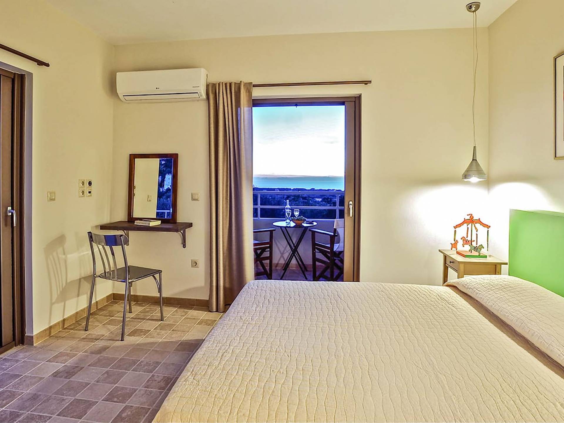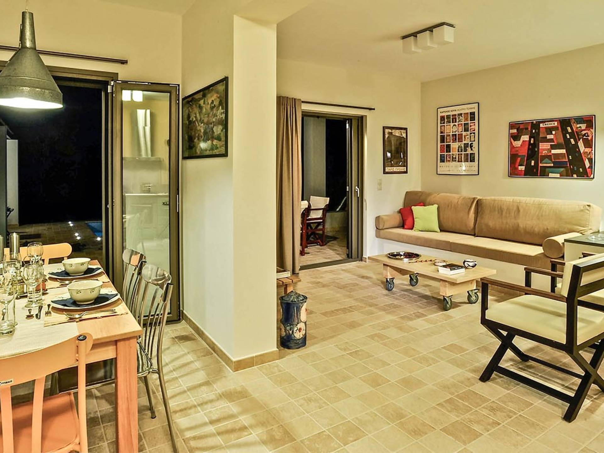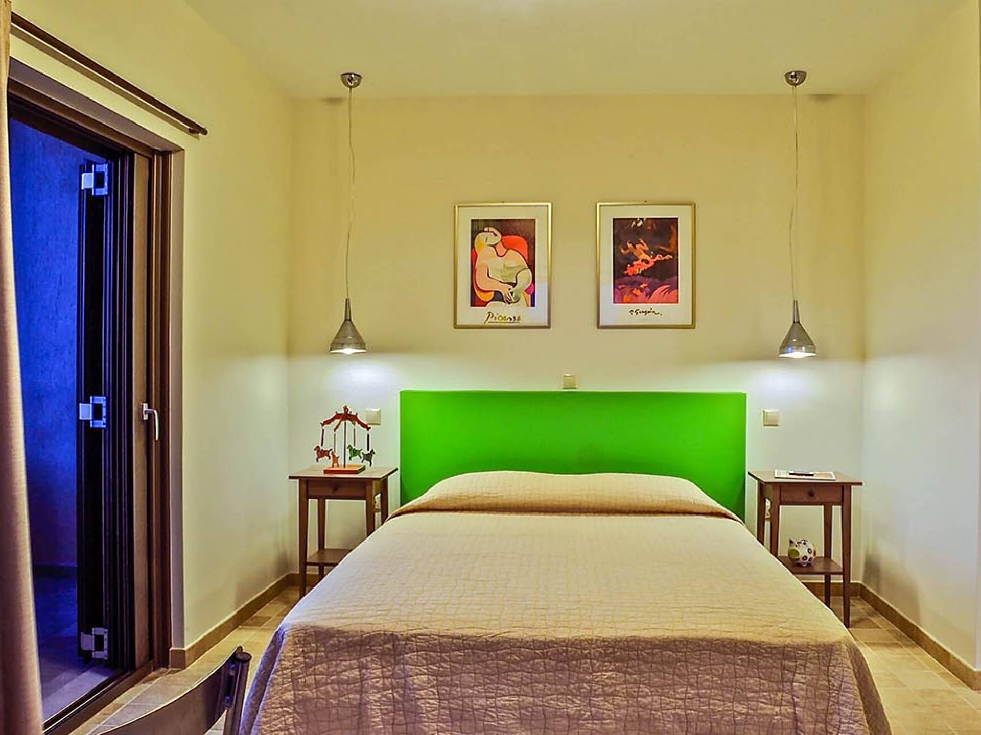 Villa Koroni is a luxury villa rental with 2 bedrooms and private pool. A two-storey detached villa ready to host up to 5 guests. The ground floor of the house offers direct access to the private pool, consists of a living-room, dining-room, fully equipped modern kitchen, W.C. and a double bedroom. At the next floor there is the master bedroom, a bathroom and two large balconies. The villa also has a sofa bed for one guest. On the verandas you can enjoy the worldwide known Mediterranean sunset.