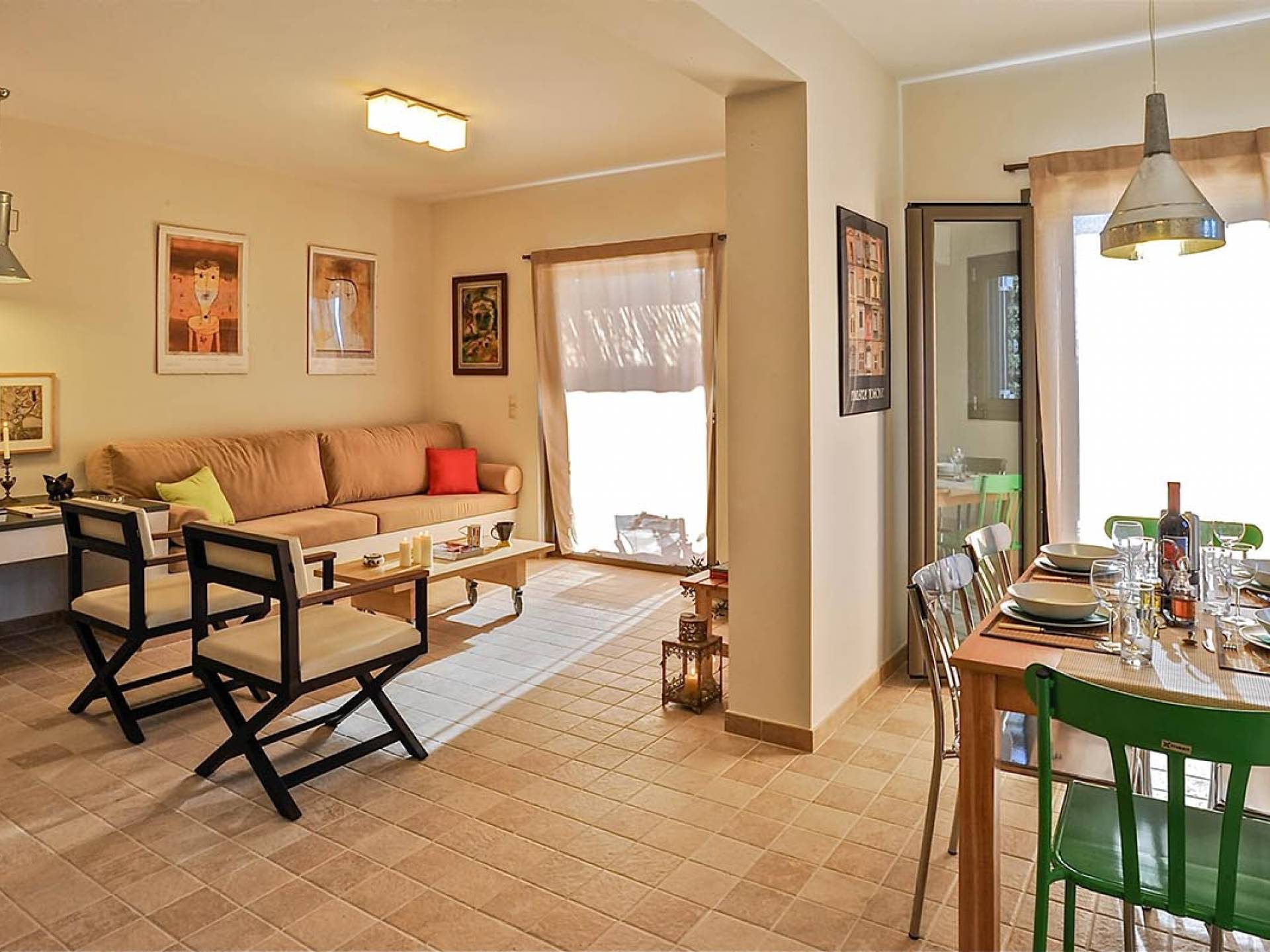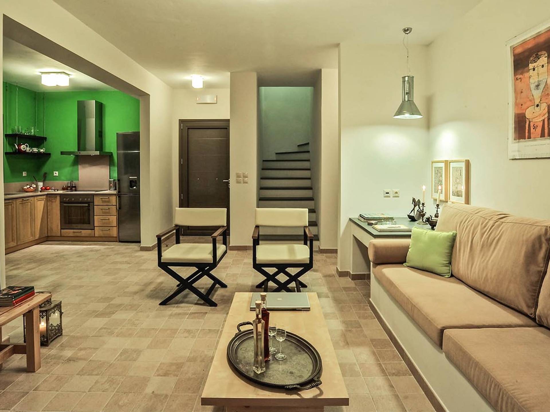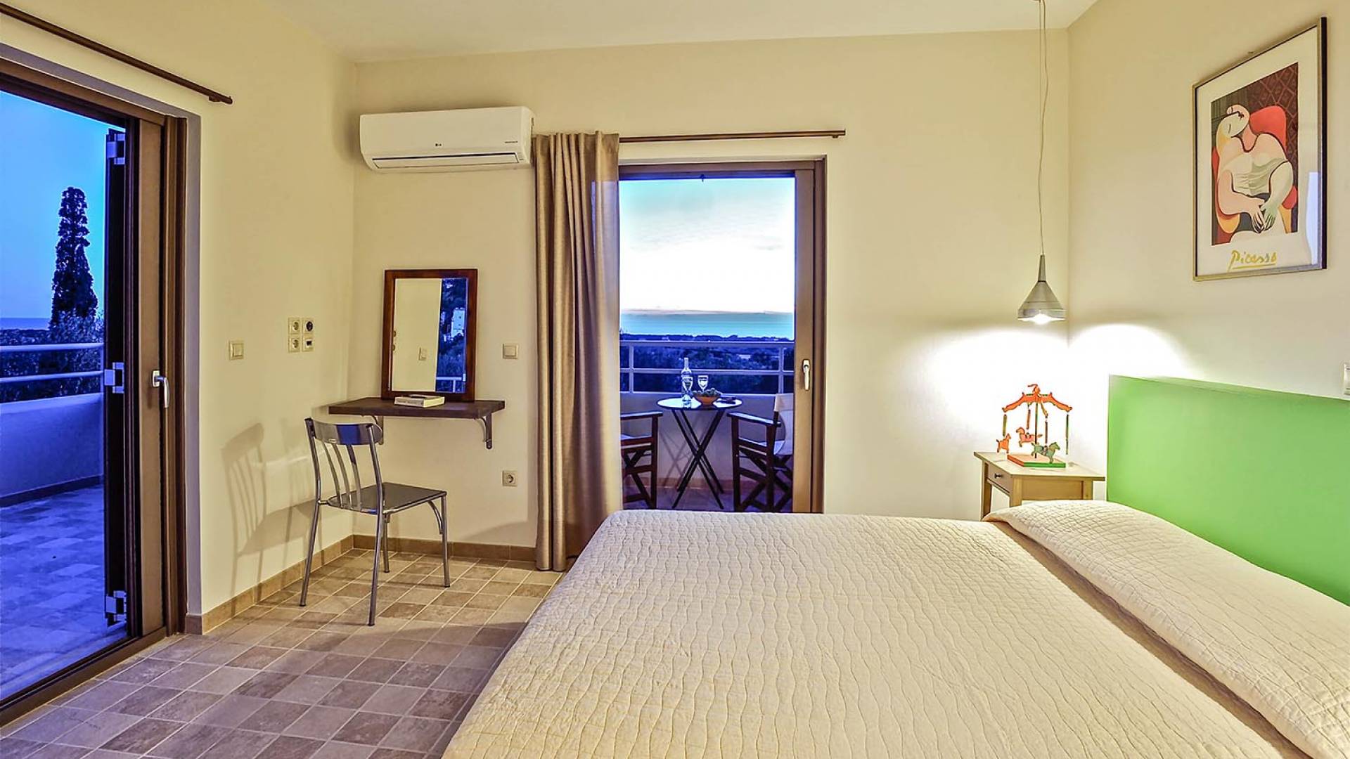 Villa Koroni is a luxury villa rental with 2 bedrooms and private pool. A two-storey detached villa ready to host up to 5 guests. The ground floor of the house offers direct access to the private pool, consists of a living-room, dining-room, fully equipped modern kitchen, W.C. and a double bedroom. At the next floor there is the master bedroom, a bathroom and two large balconies. The villa also has a sofa bed for one guest. On the verandas you can enjoy the worldwide known Mediterranean sunset.