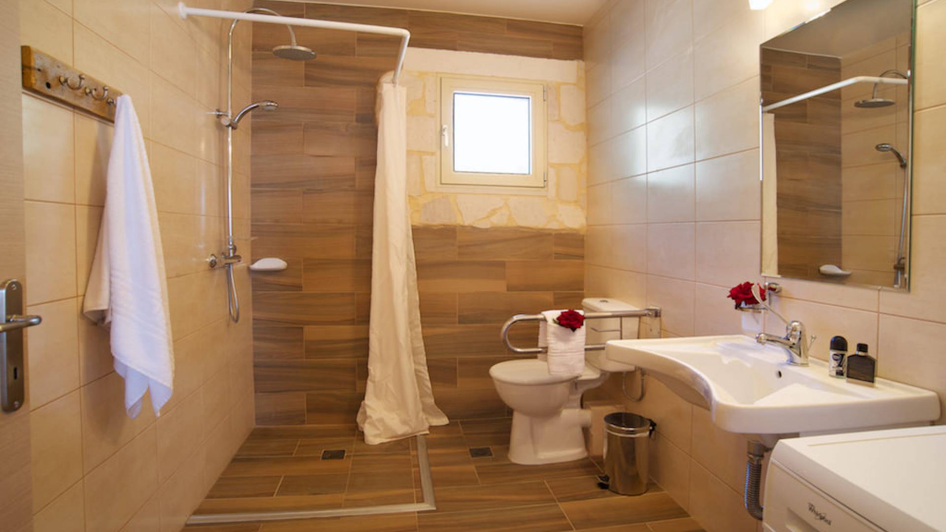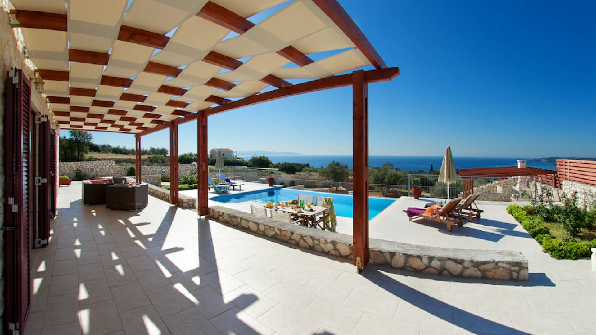 The greatest advantage of the villa however is the large well-furnished terrace with a wooden pergola for shading where guests can enjoy breakfast, lunch, and coffee or drink in combination with the amazing and unobstructed panoramic views of the Ionian Sea! It should be noted that all areas, both indoor and outdoor, are directly and easily accessible from people with special mobility needs.