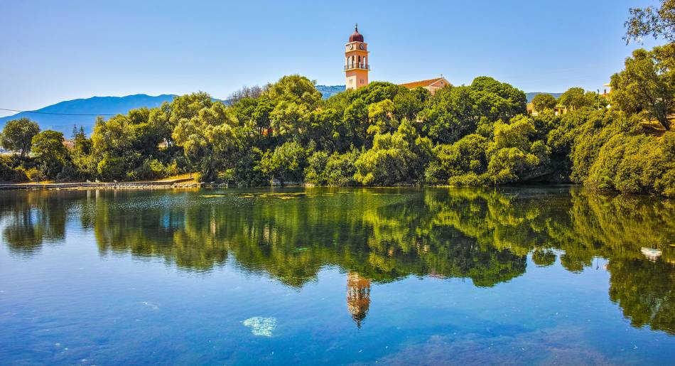 Karavomilos is a picturesque fishing village 1km west of the harbor of Sami. It is a pole of attraction for visitors, as very close to it, are some of the most famous natural sights in Kefalonia; the cave of Drogarates and the lake of Melissani. The impressive cave of Drogarati with rare stalagmites and stalactites is a must-see. With an acoustic similar to this of ancient theaters, it can easily host a concert. Visitors can combine Drogati with a visit to the underground lake of Melissani, a really magnificent sight you can explore by boat. Another characteristic image of the area is the traditional water mill on the edge of the beach Karavomilos. Just outside of Karavomilos, Old Vlachata village hosts one of the most important contemporary music festivals, the “saristra festival”, held in the homonymous square of the village.
