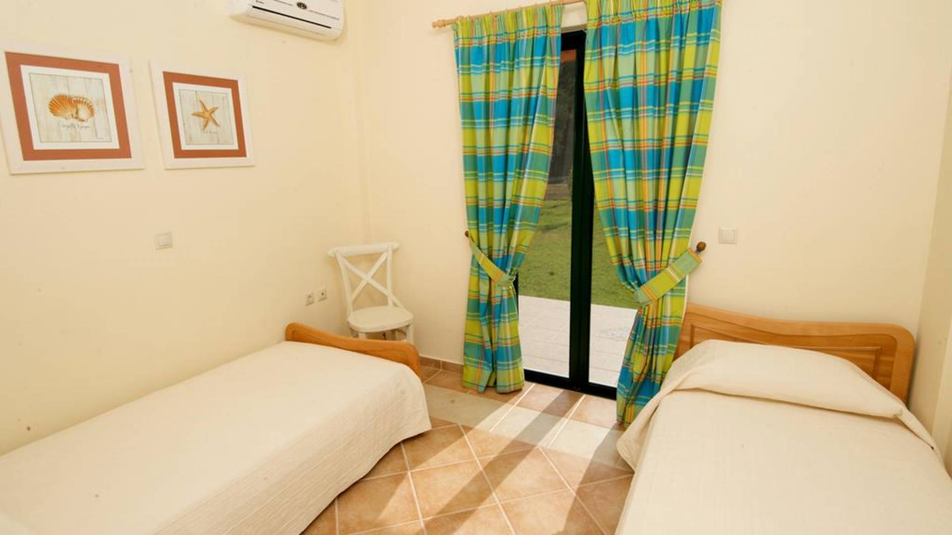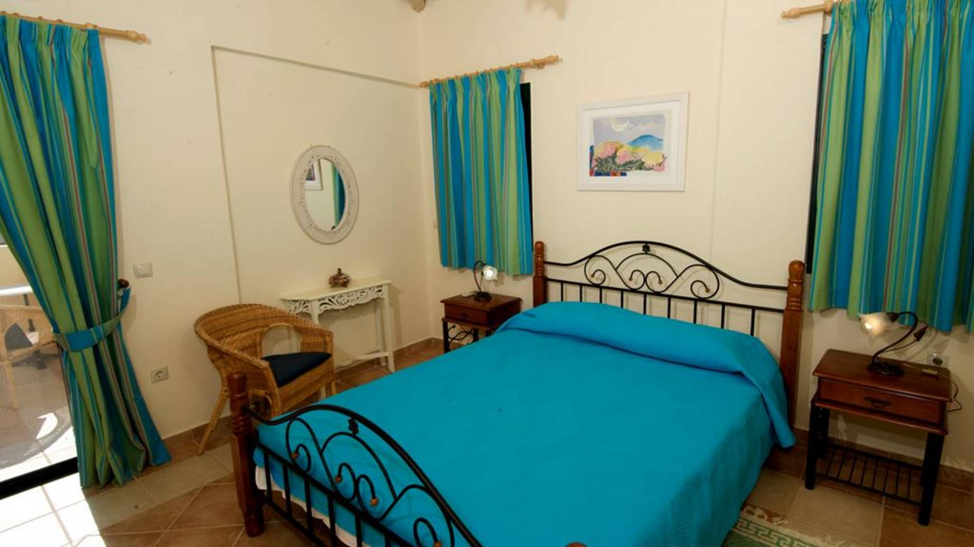 Villa Dafni, the third of the four Sami Beach Villas has two bedrooms, set within its own garden with established plants and flowers offering privacy for its’ visitors. Villa Dafni also has its’ own private pool set in a terrace area with sun loungers and a shaded outside dining area. A BBQ is on hand for outside cooking whilst inside the villa, there is an open plan lounge, dining, and kitchen area, each fully equipped and furnished to a very high standard, the lush green mountainous scenery surrounding the villa offers a perfect setting for your holiday.