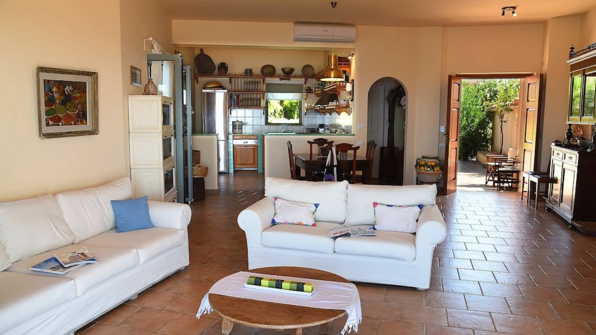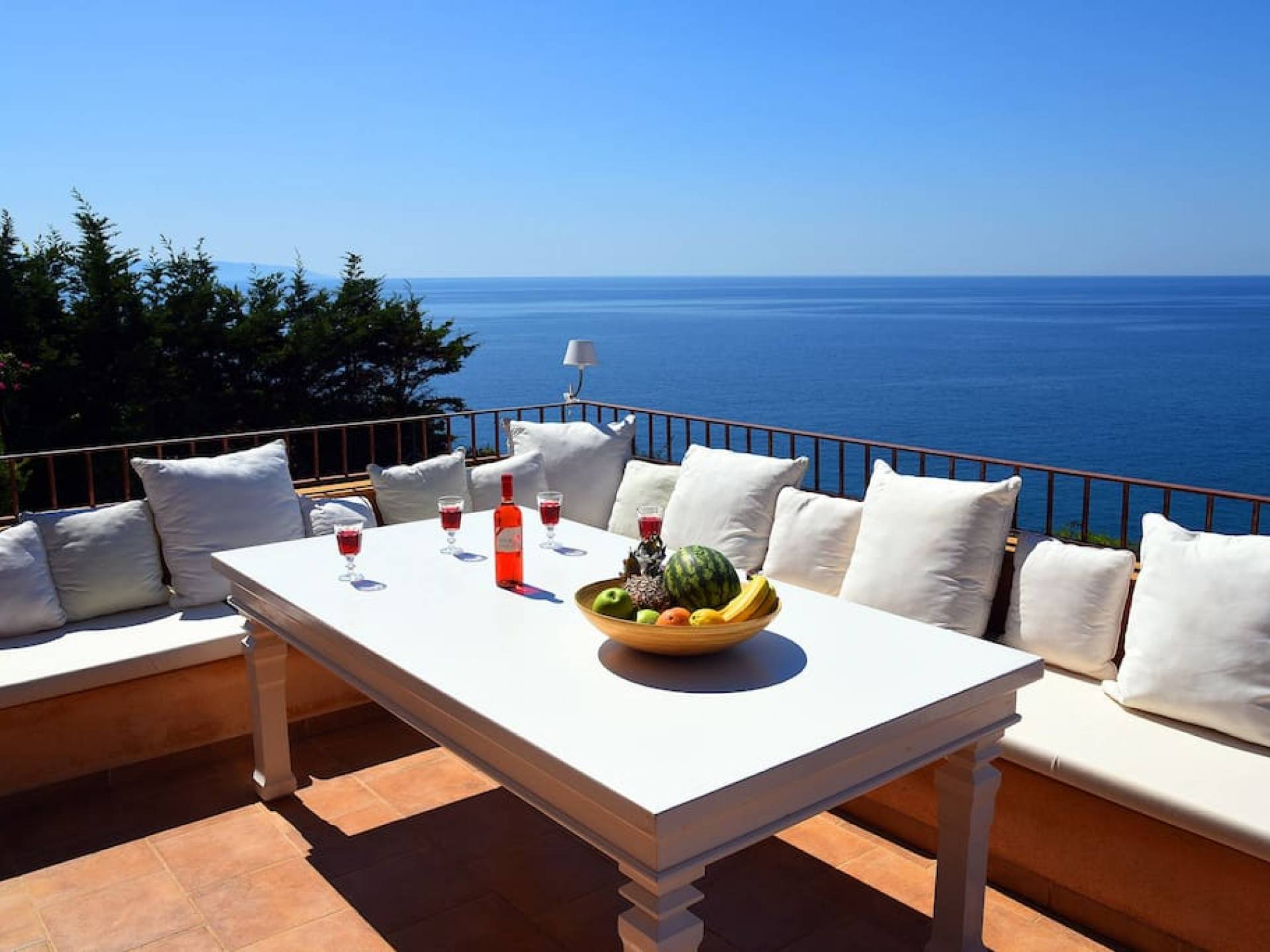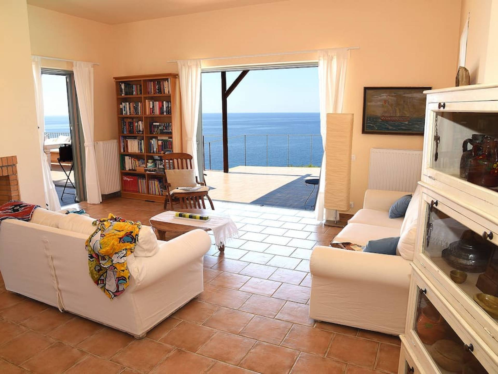 Armonia Villa Kefalonia is surrounded by an 11000 m2 garden, with an amazing 360 view. Armonia is 250m² with 4 bedrooms and 4 bathrooms nicely placed on 2 levels. Accommodates up to 8 people in 4 bedrooms. Ground Level: Spacious living room and fully equipped kitchen with direct access to an outdoor dining table, the garden, the BBQ terrace, and the common swimming pool. Also houses one of the 4 bedrooms of the villas equipped with twin beds and an en-suite bathroom. On this level, there is also a WC for guests.