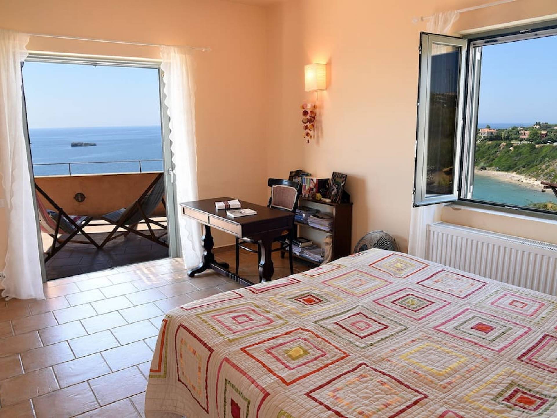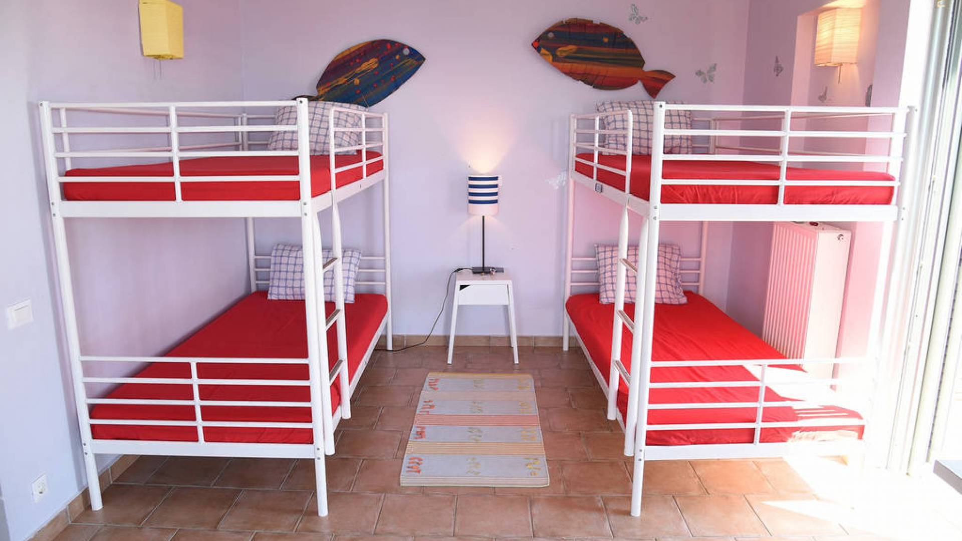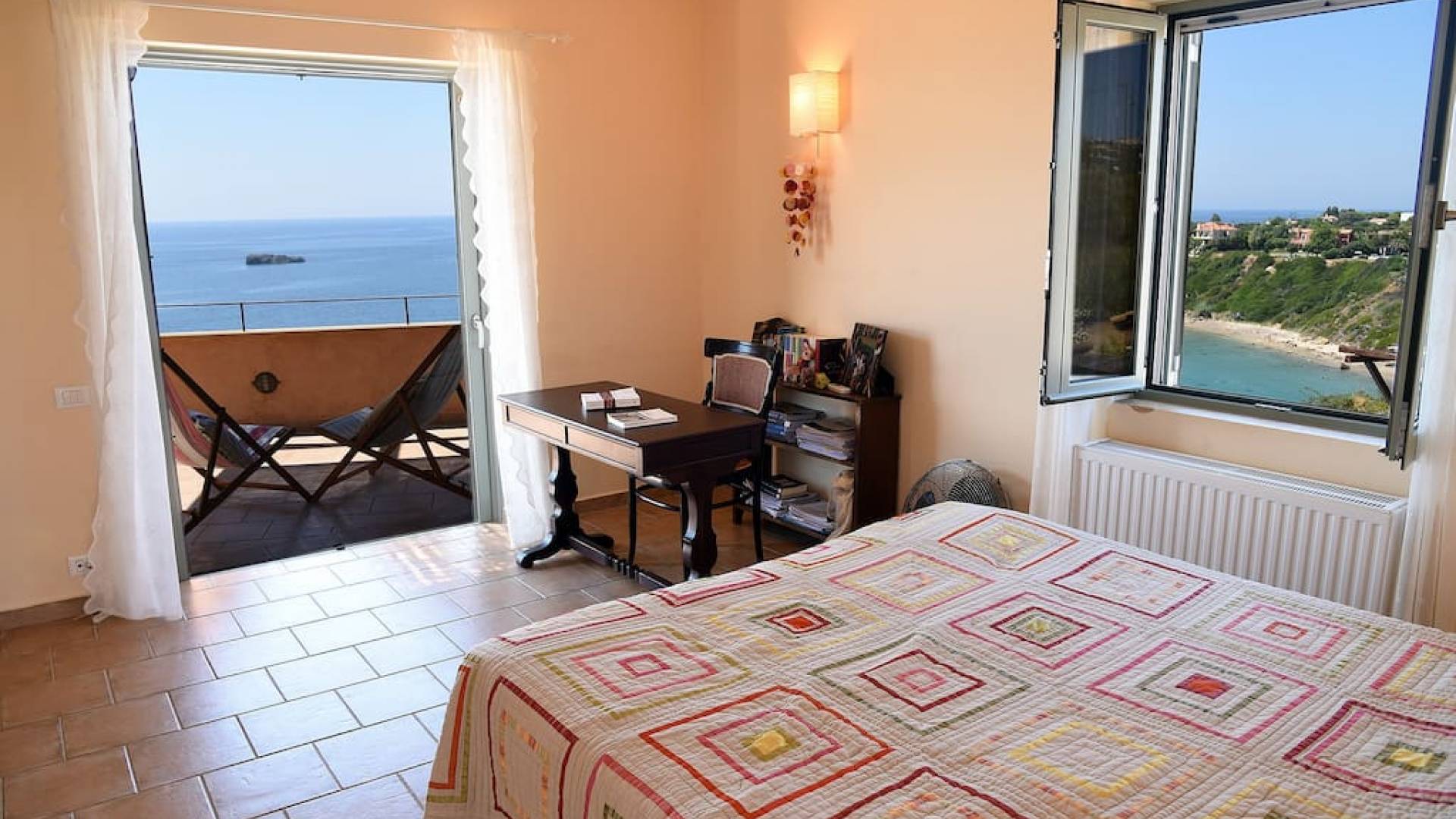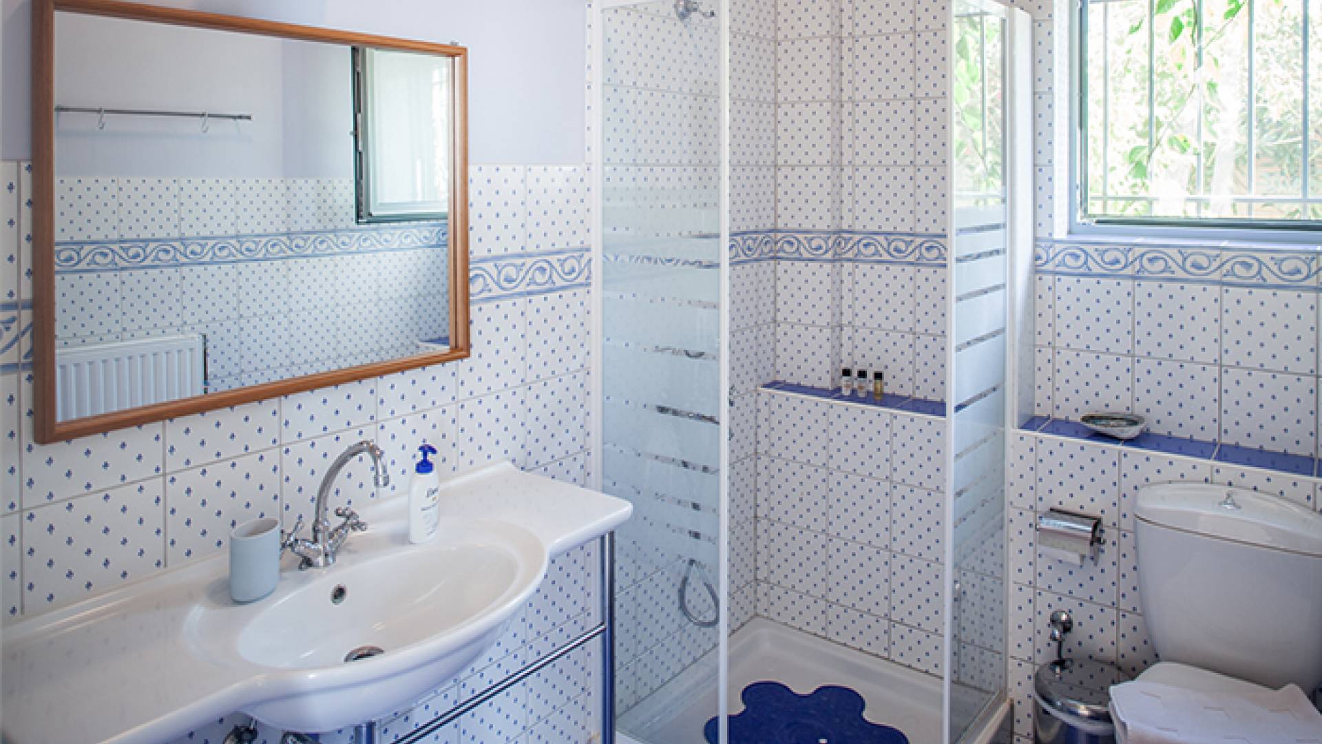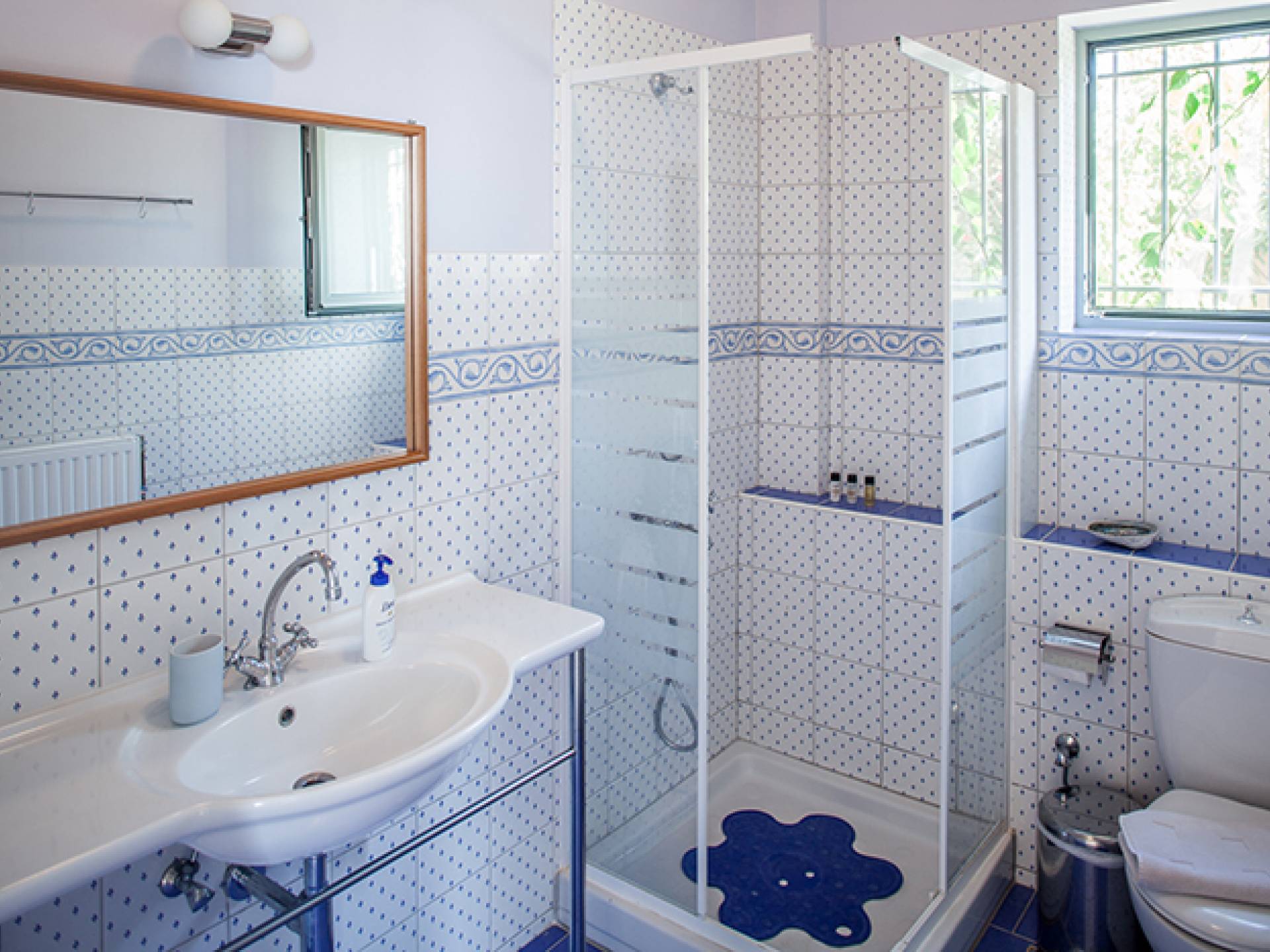 Bedroom level: A staircase in the living room leads on the second floor that features the master bedroom with a double bed, and the 3rd bedroom with berths. All the bedrooms have ensuite bathrooms. Armonia Villa Kefalonia also houses a studio bedroom with a small kitchen, bathroom (en-suite), and double access, from outdoors or from inside the villa. Onsite the property there are two extra fully equipped guesthouses that can be provided upon request.