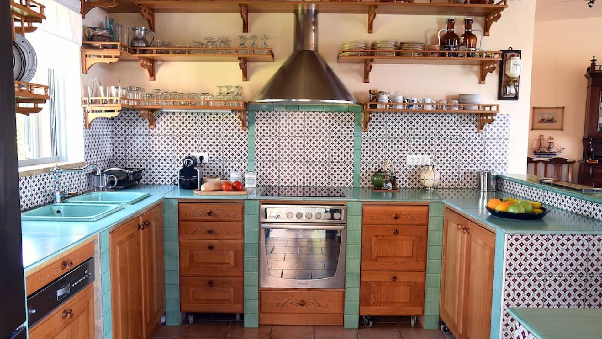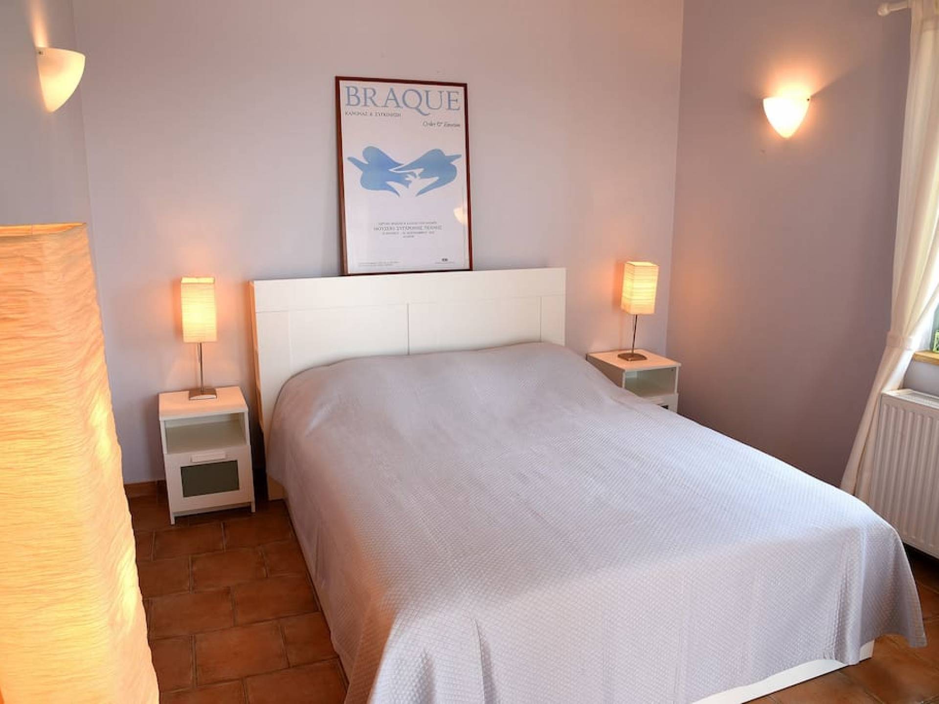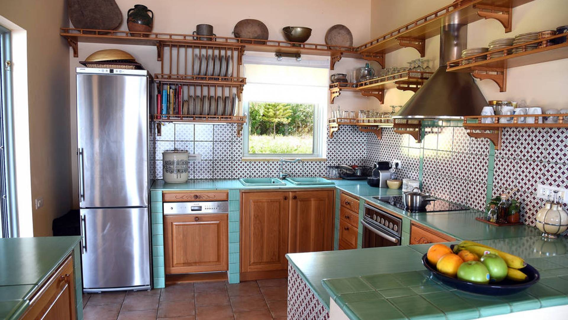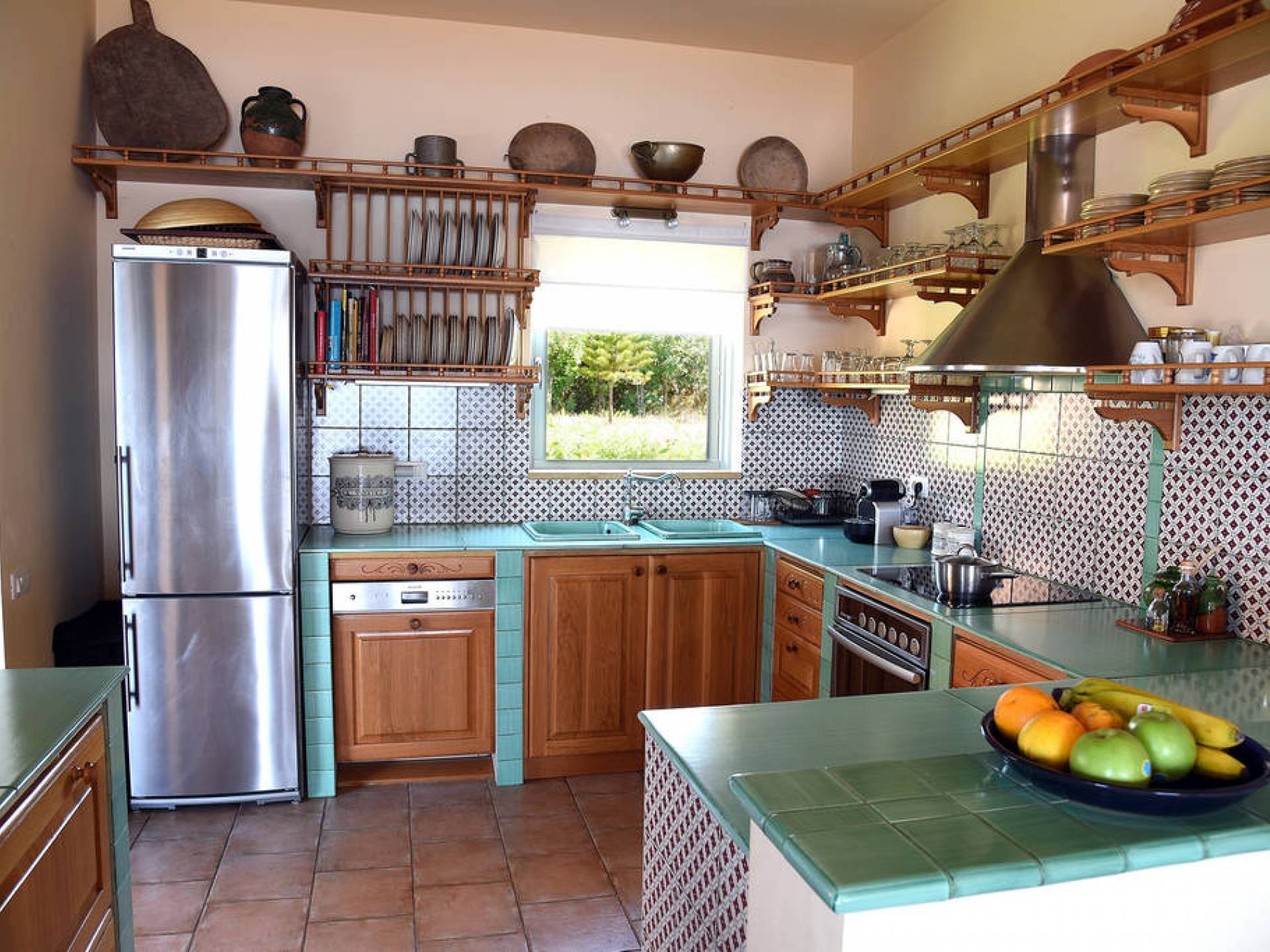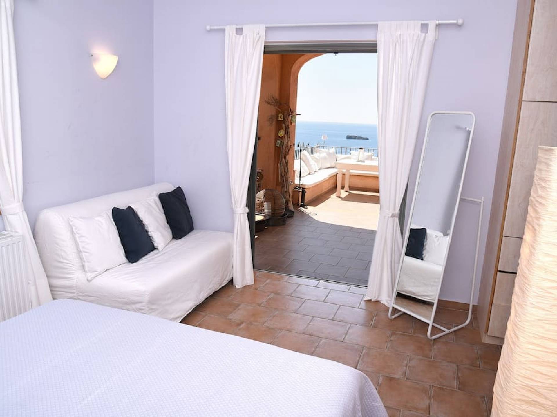 Bedroom level: A staircase in the living room leads on the second floor that features the master bedroom with a double bed, and the 3rd bedroom with berths. All the bedrooms have ensuite bathrooms. Armonia Villa Kefalonia also houses a studio bedroom with a small kitchen, bathroom (en-suite), and double access, from outdoors or from inside the villa. Onsite the property there are two extra fully equipped guesthouses that can be provided upon request.