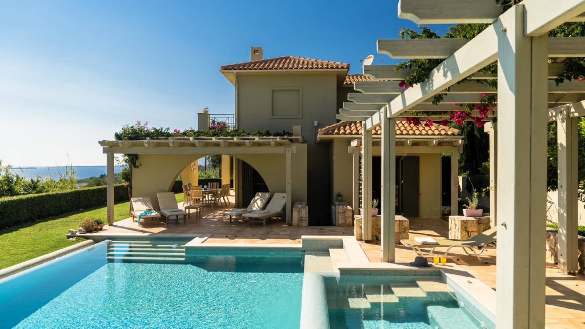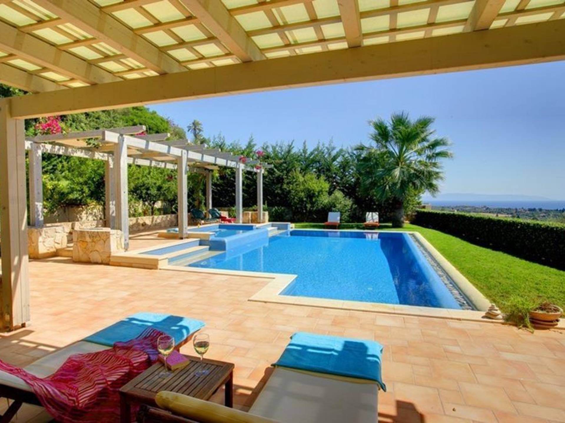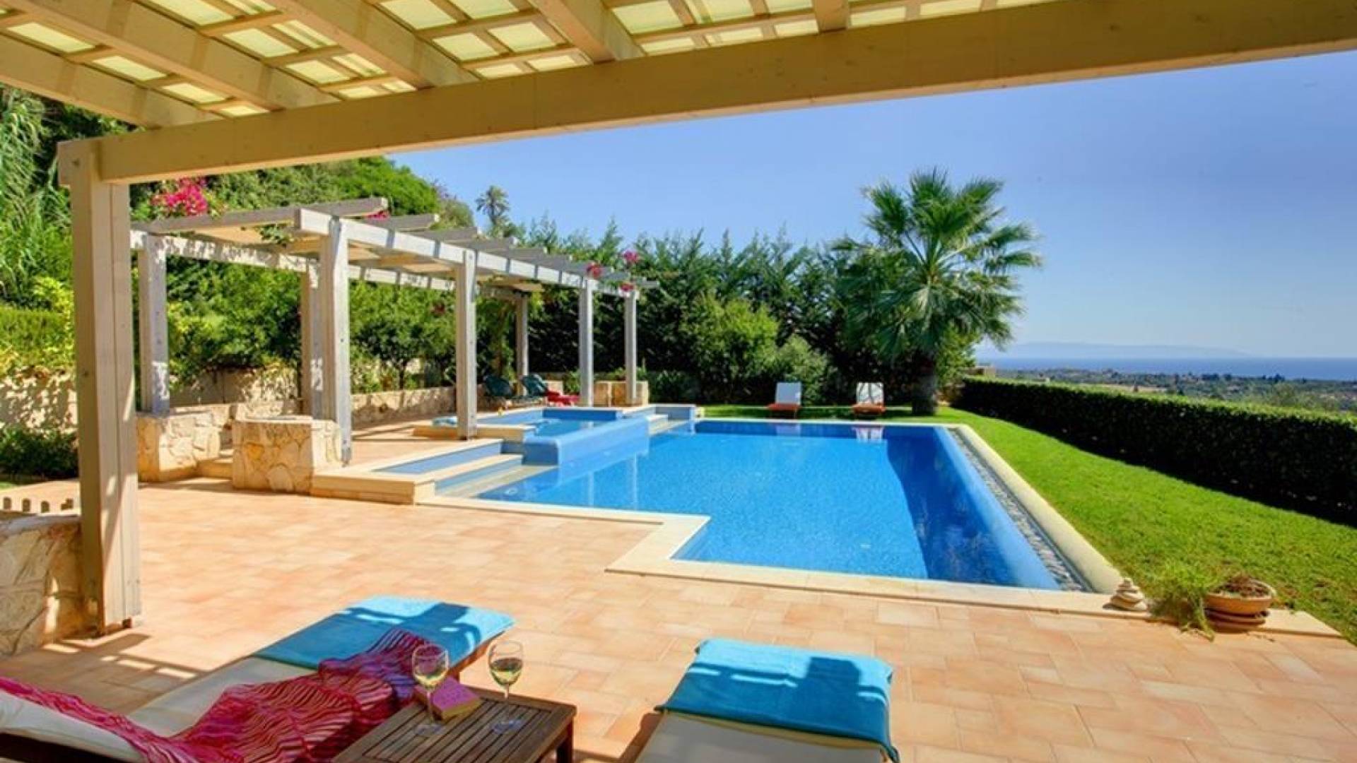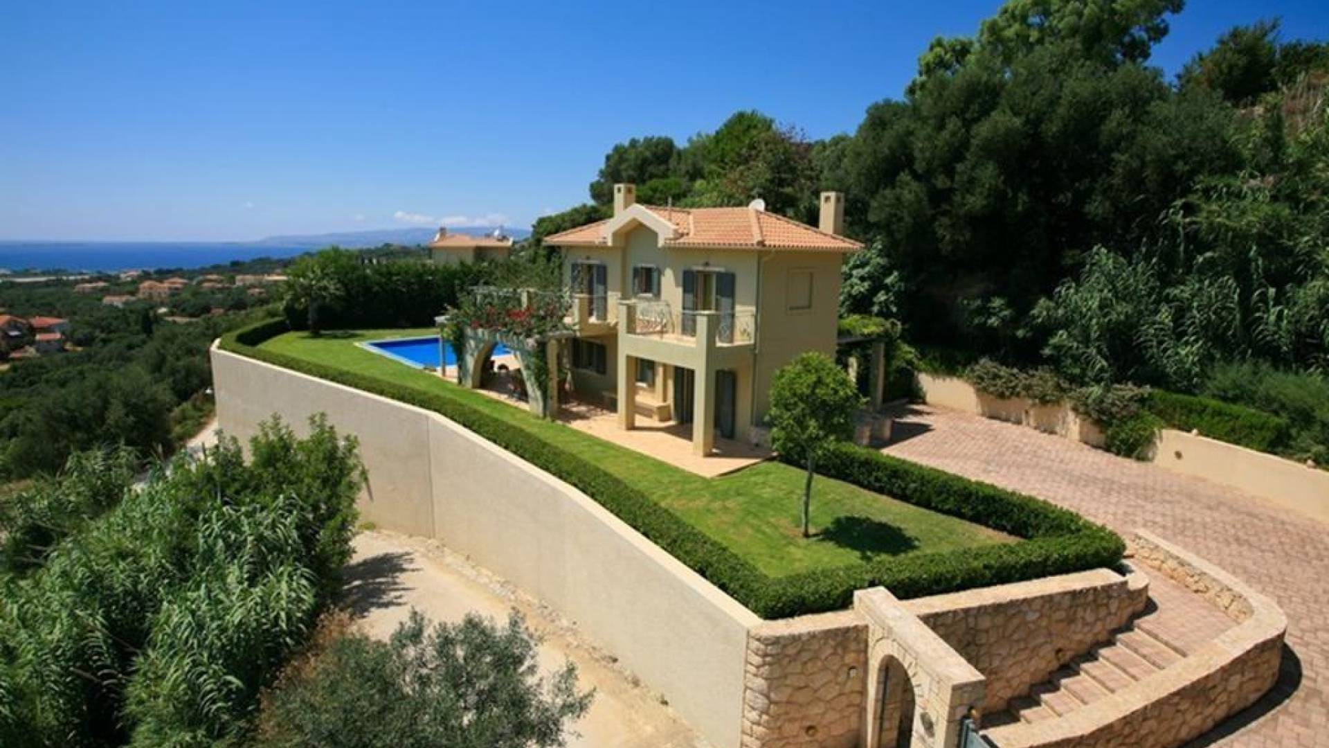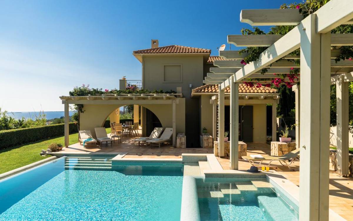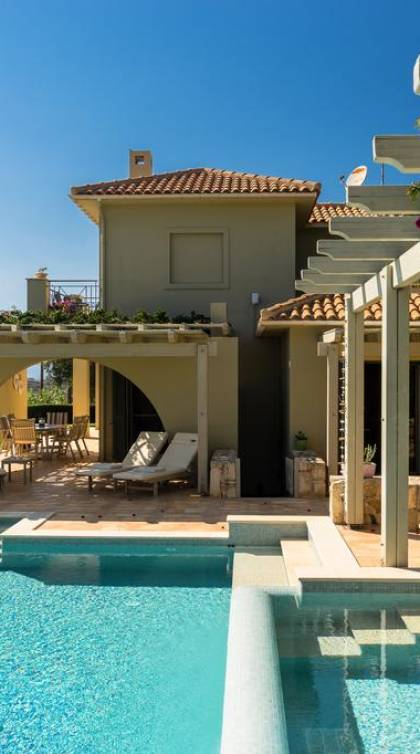 Villa Alexandra Kefalonia is a luxury villa rental consisting of 3 bedrooms, 3 bathrooms, a private heated pool of 45m2 with a Jacuzzi, and can accommodate up to 6 guests.