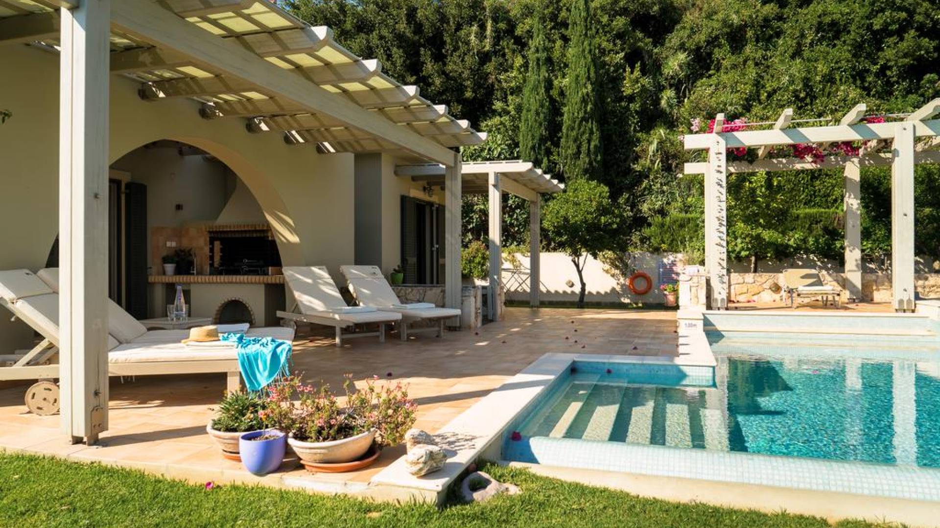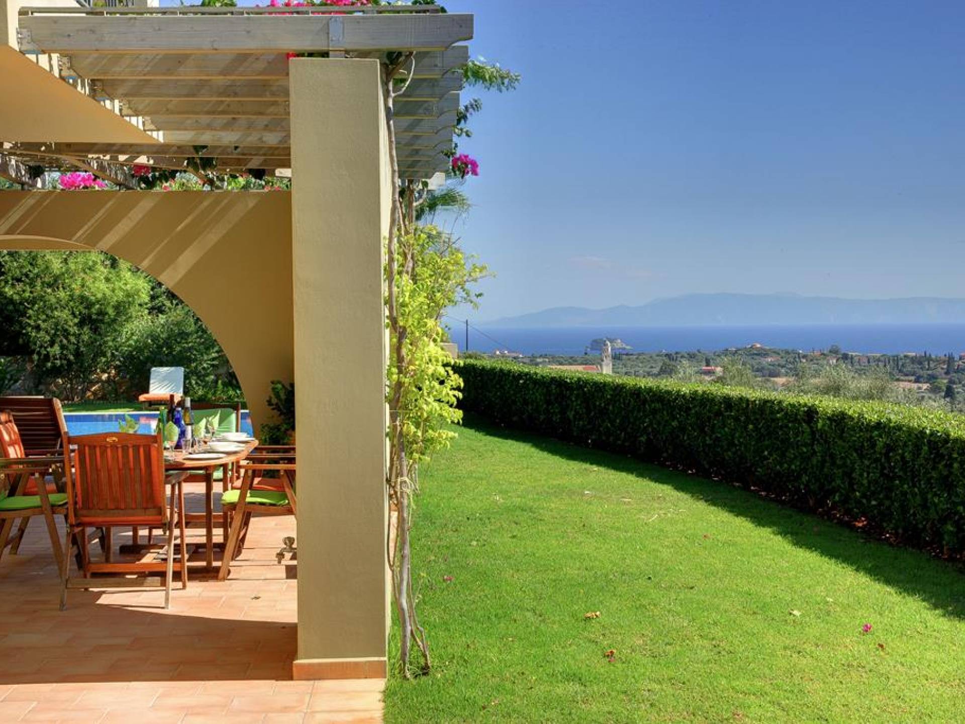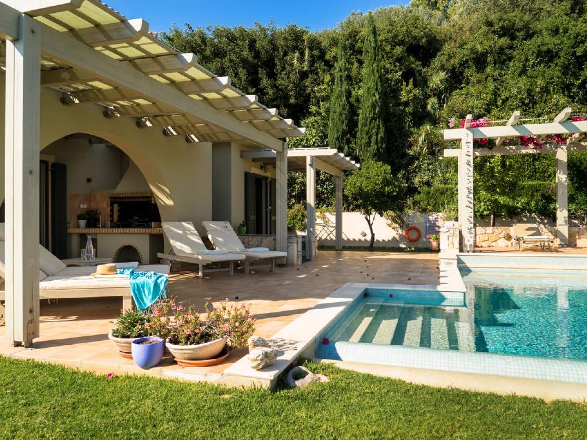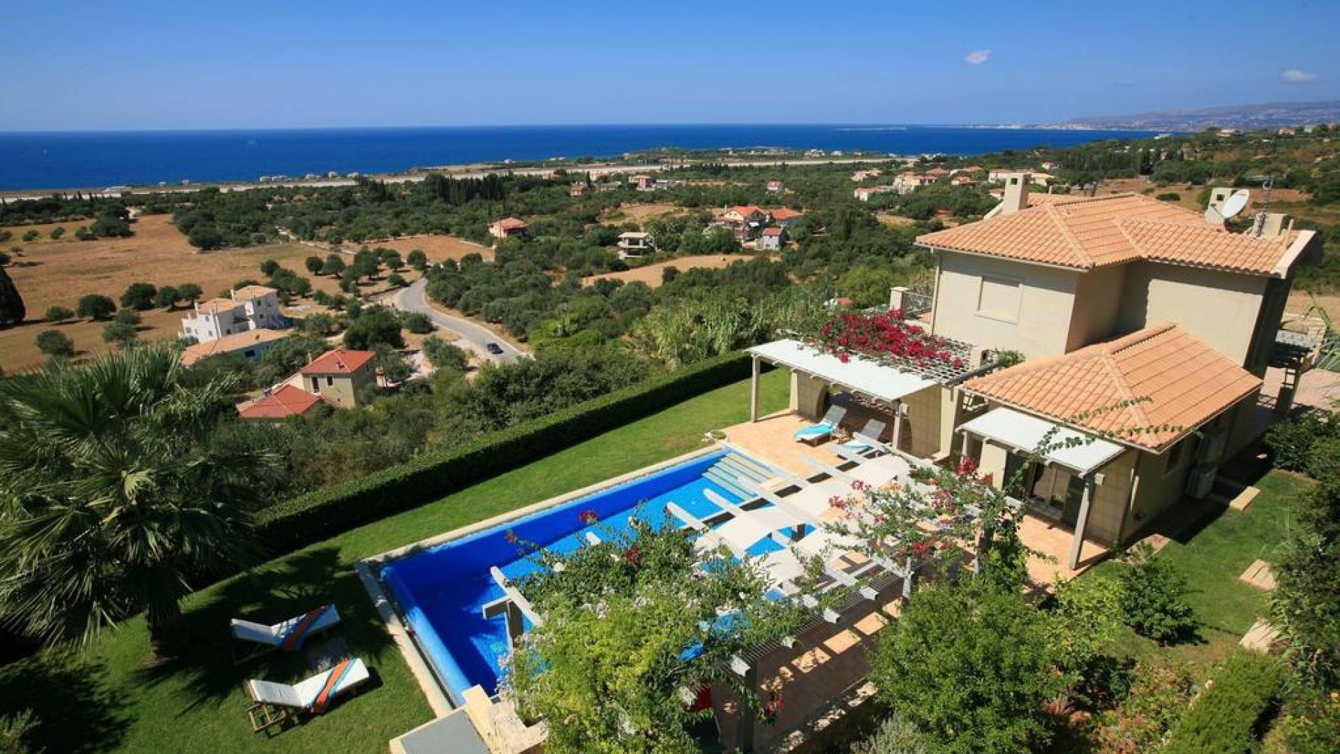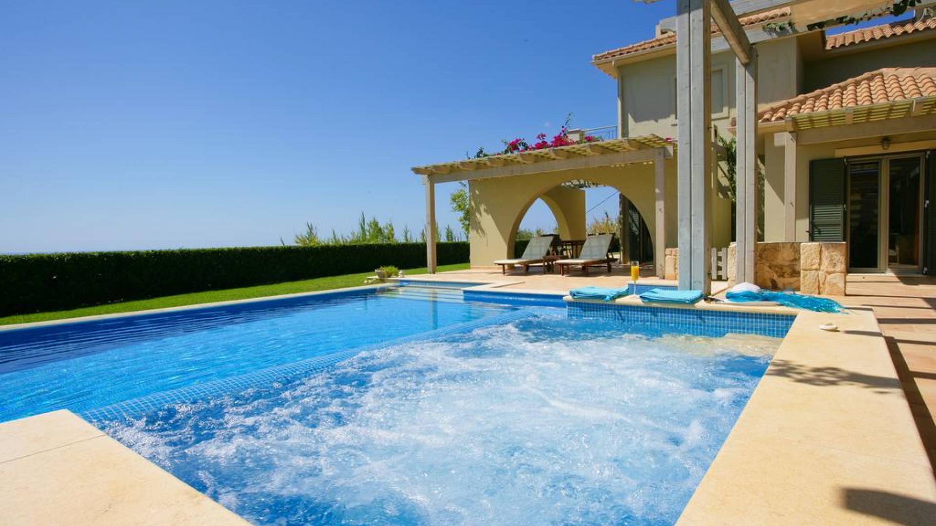 Villa Alexandra Kefalonia is a luxury villa rental consisting of 3 bedrooms, 3 bathrooms, a private heated pool of 45m2 with a Jacuzzi, and can accommodate up to 6 guests.