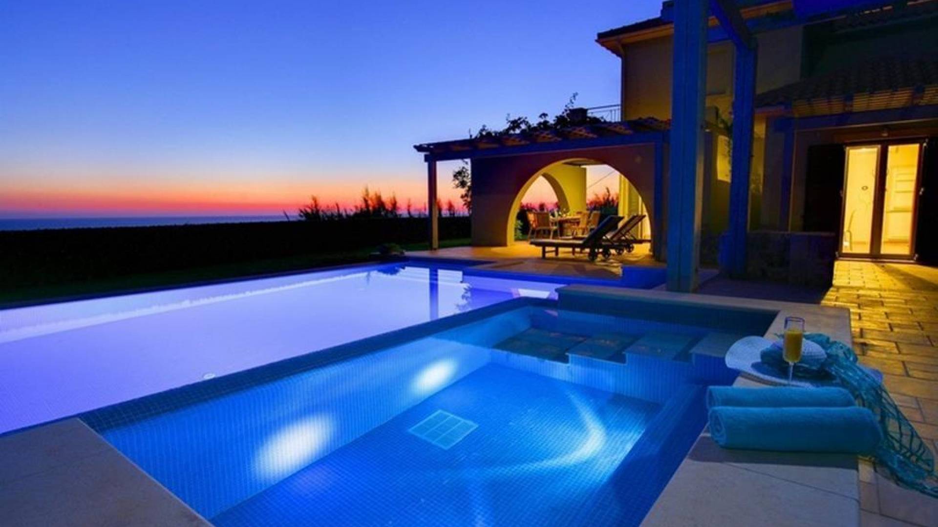 Color blue, sun and luxury, nothing can beat this combination. What else is there to ask for your vacation? Indulge yourself in a heated private pool in the coziness of your own villa, either an indoor or outdoor one. The water is healing and therapeutic…