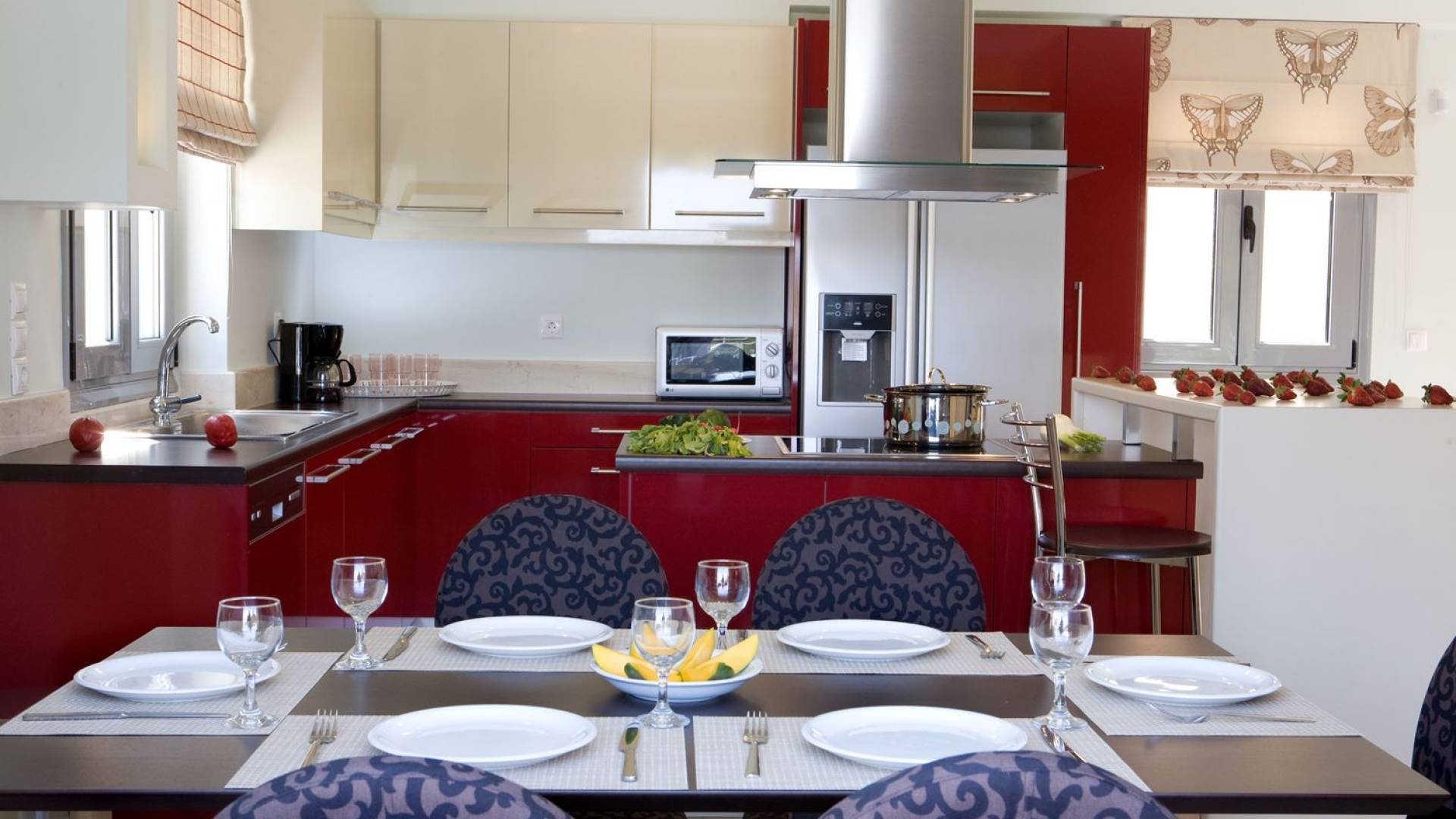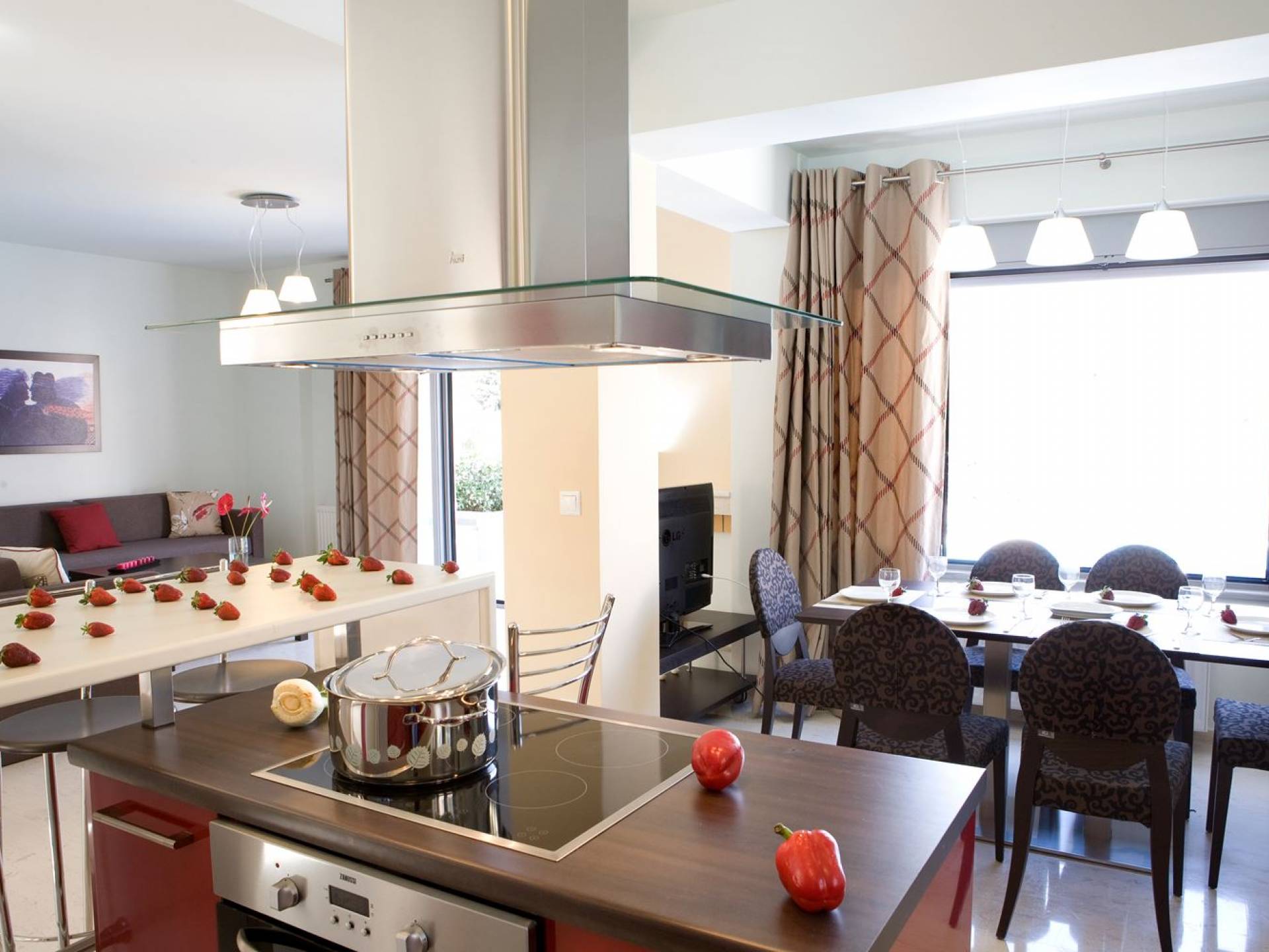 The fully equipped kitchen can satisfy the most demanding visitor, offering a two-door refrigerator, dishwasher, washing machine, microwave, toaster, kettle, coffee maker, vacuum cleaner, iron, ironing board, modern dinnerware cutlery, and glasses. There is also a large bathroom with a whirlpool tub, hairdryer, and complimentary toiletries.