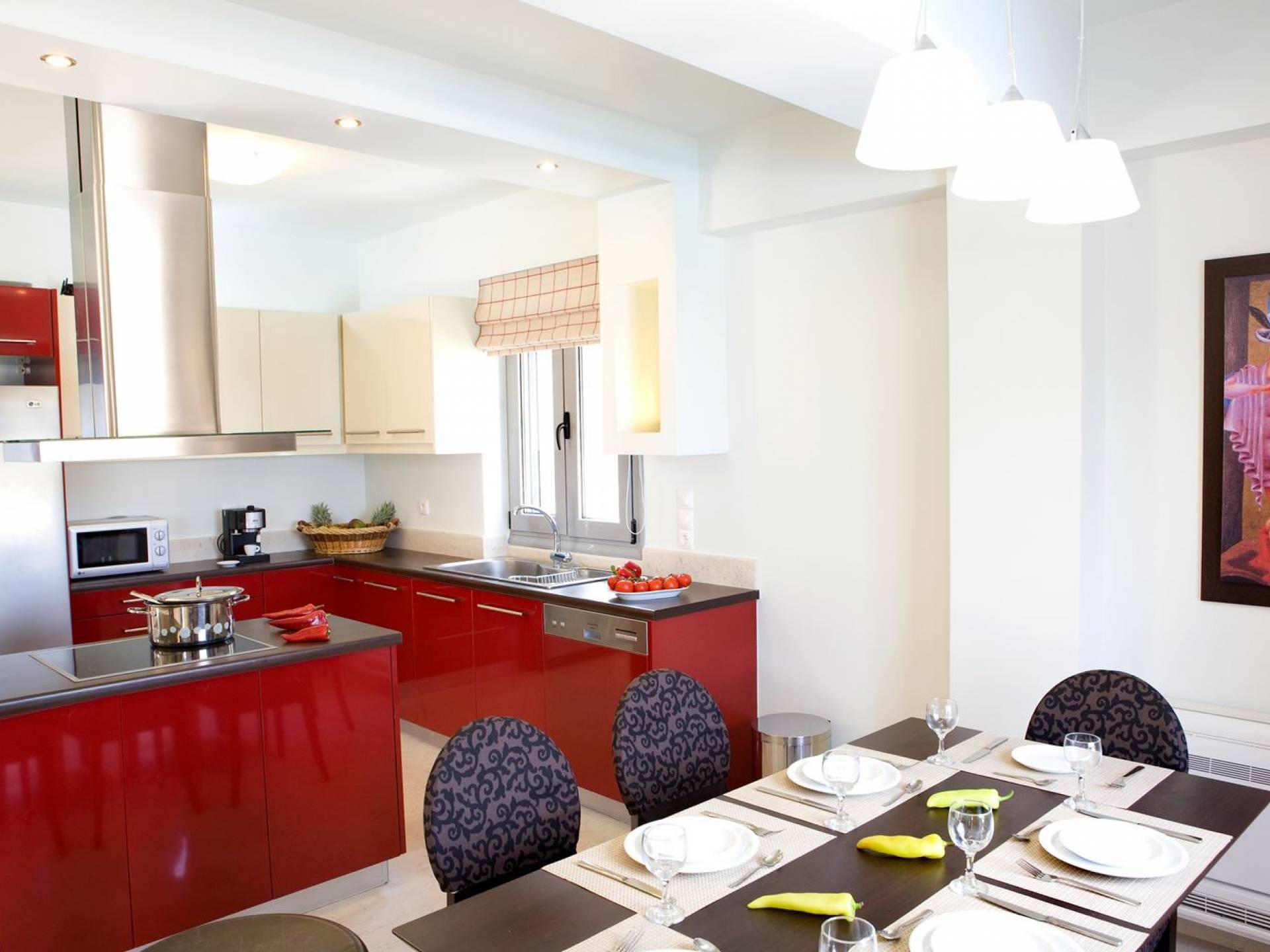The fully equipped kitchen can satisfy the most demanding visitor, offering a two-door refrigerator, dishwasher, washing machine, microwave, toaster, kettle, coffee maker, vacuum cleaner, iron, ironing board, modern dinnerware, cutlery, and glasses. There is also a large bathroom with a whirlpool tub, hairdryer, and complimentary toiletries.