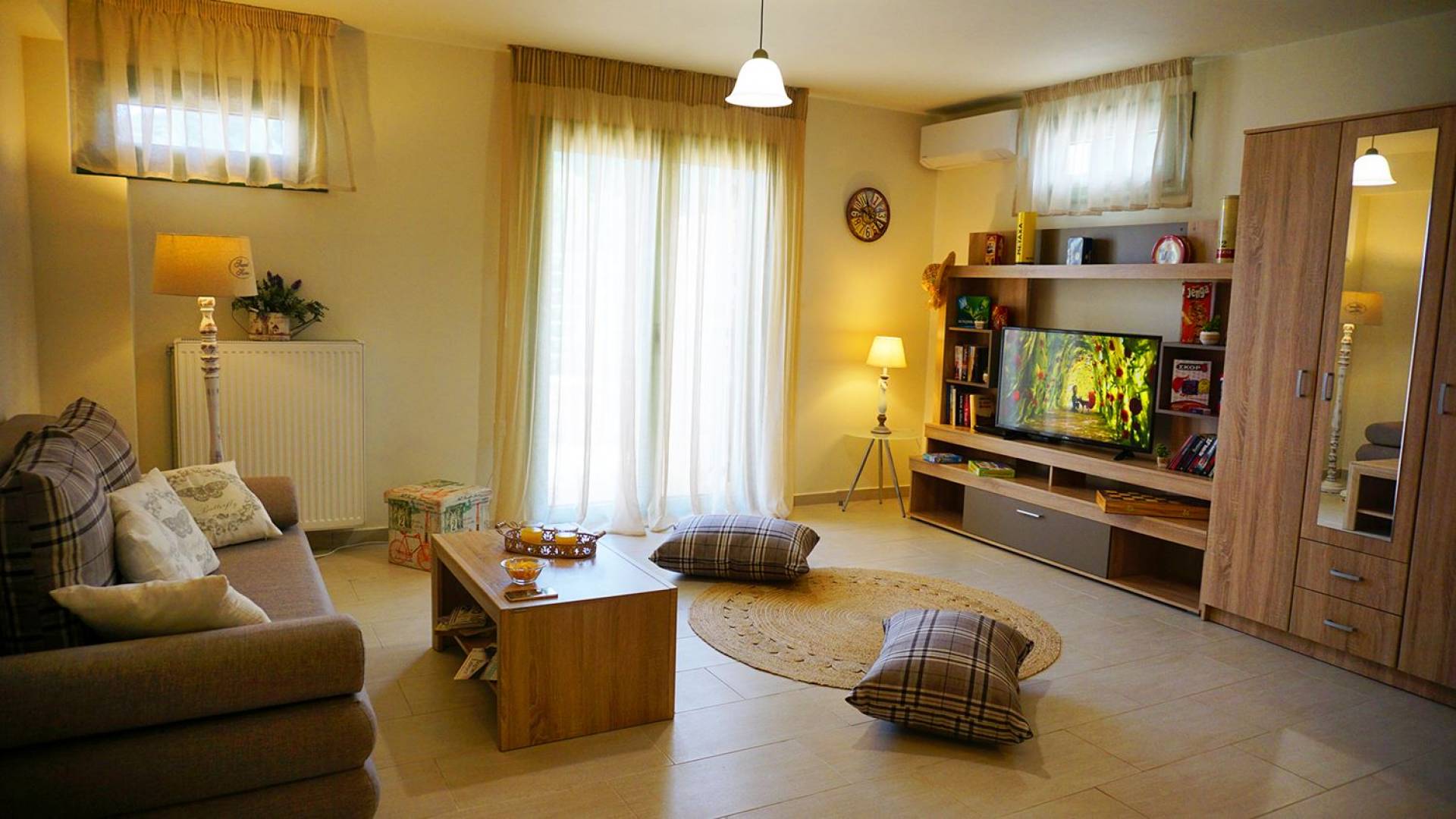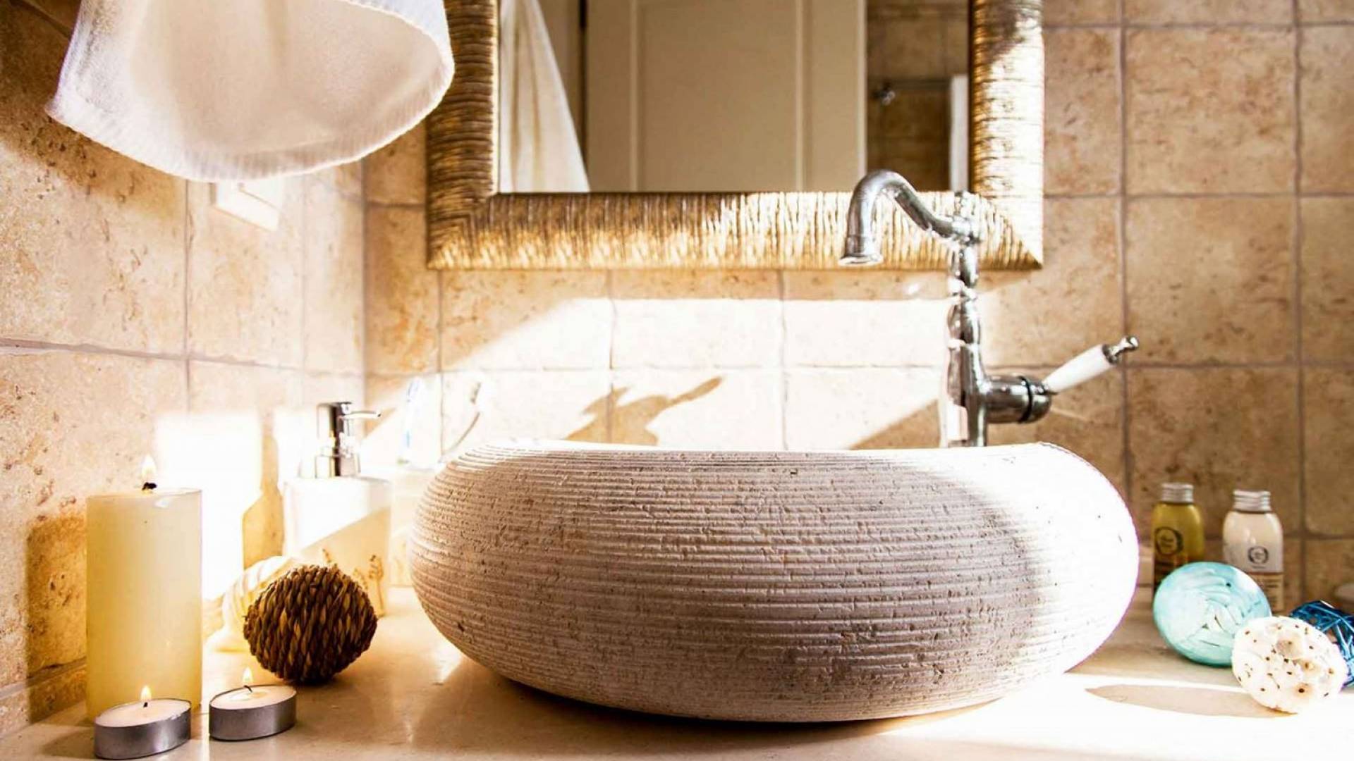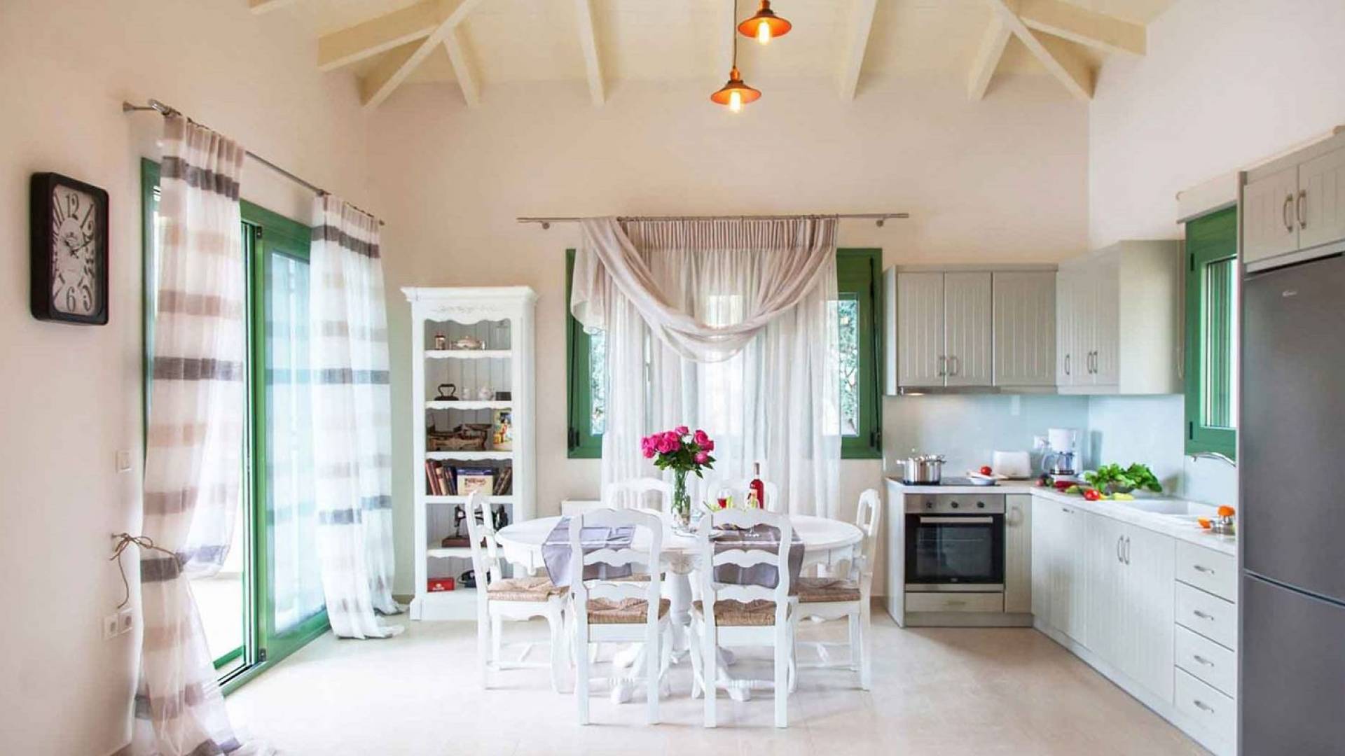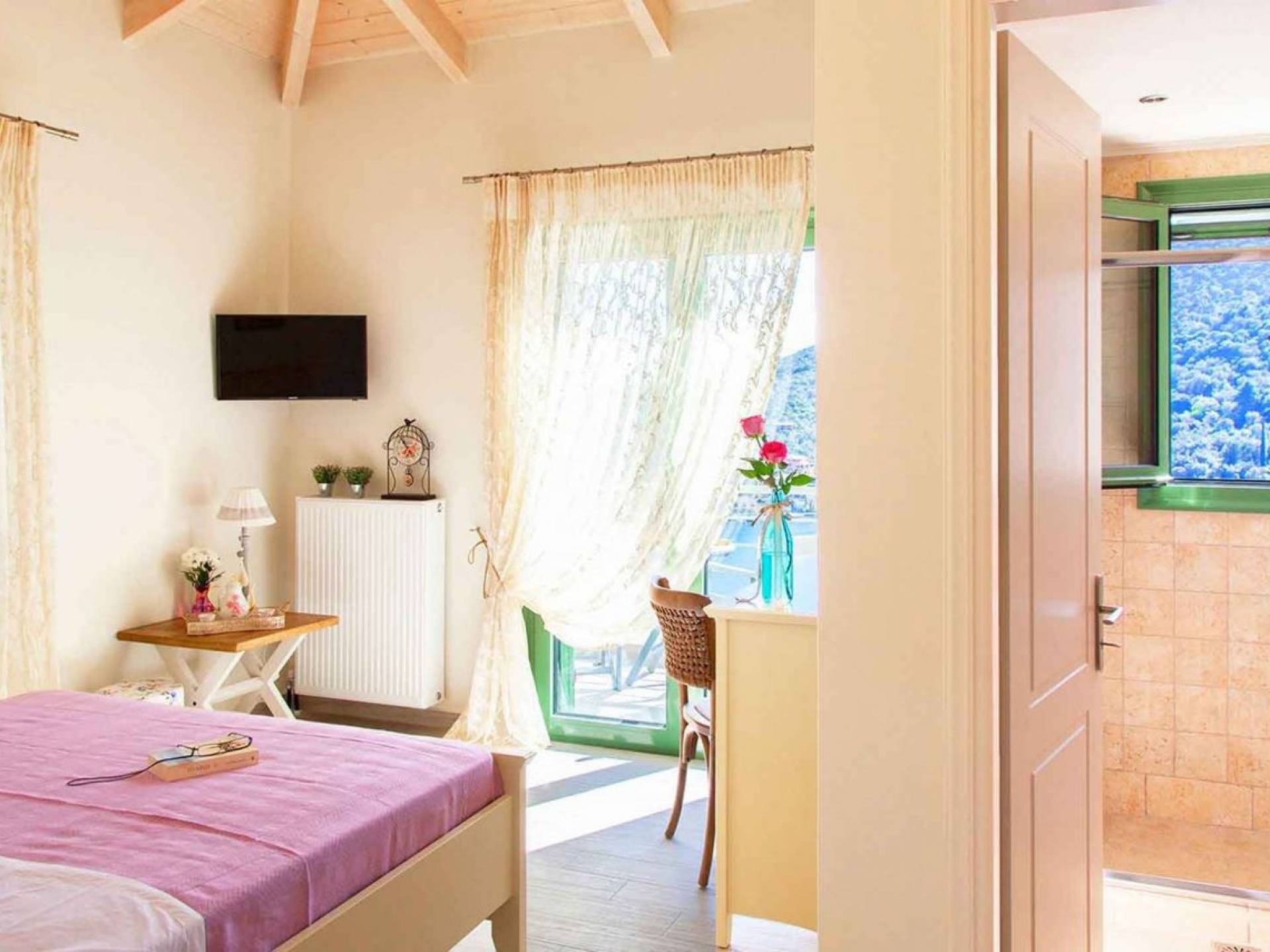 On the third floor we can find a bedroom with a king-size bed and anatomic mattress, air conditioning, a 28’’ LED television, and an ensuite bathroom. Both bedrooms have a French door and a window offering a magical view to the mountains and the sea. The bedroom balconies of both houses offer an unobstructed panoramic view to both the village and the vast blue of the Ionian Sea, from where the eyes can travel to the surrounding islands, all the way to Ithaca and Cephalonia.