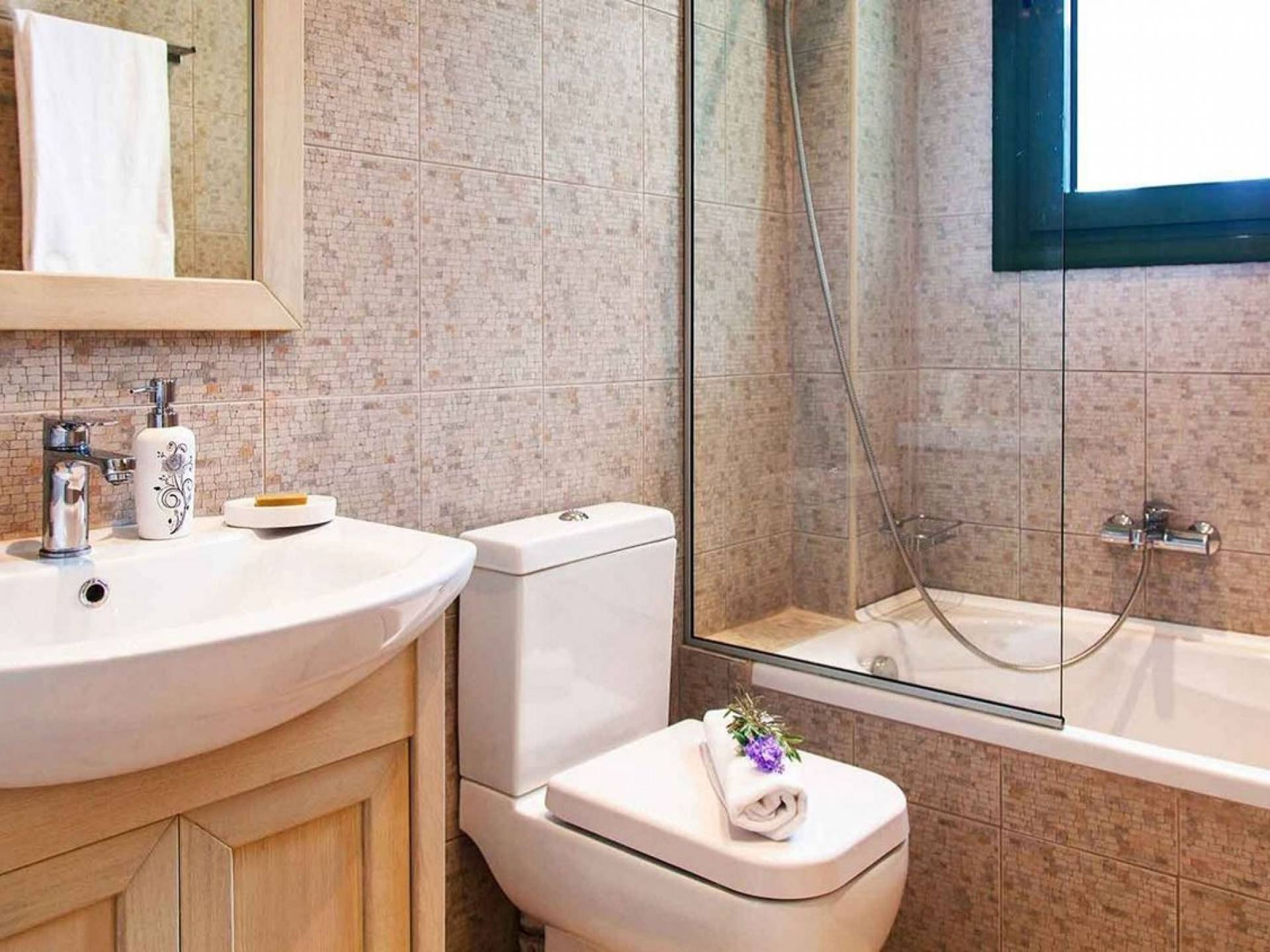 On the first floor lies a guestroom with a 43’’ LED television with an ensuite bathroom which can be transformed into a bedroom with a double bed. On the same level, there is the pool area which can be accessed directly through the French door.