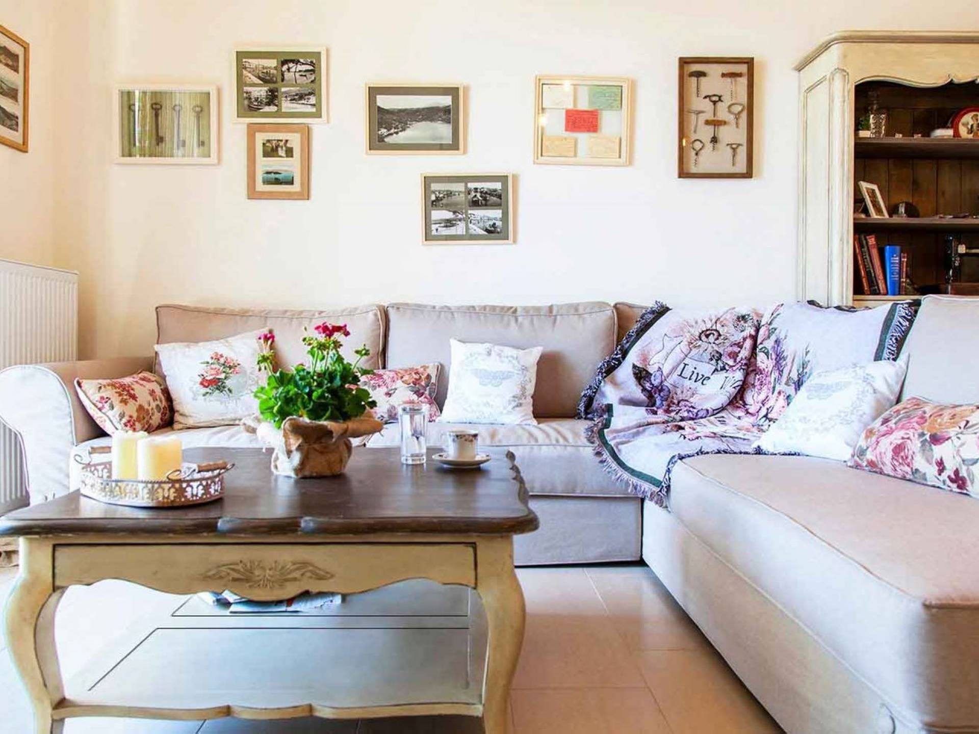 On the second floor, there is an open-plan space with a fully equipped kitchen and a dining room with a fireplace and a sectional sofa. It also has air conditioning, a 42’’ LED television, and a bookcase displaying a collection of old objects. There is also a WC on this level. The main balcony has a living room and dining-room French door for your moments of pleasure, from where you can enjoy the view of the swimming pool and surroundings. A few steps lead to the pool area with an infinity swimming pool. Sunbeds and umbrellas are there to add to your relaxation. The flowers and herbs planted all-around service to enhance the landscape’s beauty. A walking path with steps leads visitors to the village in just three minutes, where they can take a stroll or do their daily shopping.