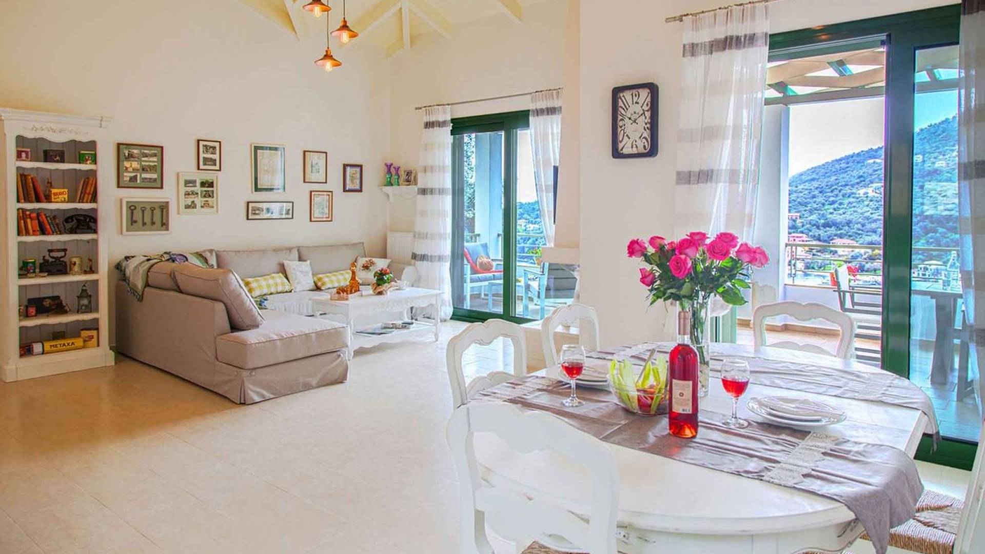 The Ktima Aniforeli Luxury Villas complex is located on the foothills overlooking the Sivota Bay in an idyllic setting of eleven acres of land full of olive trees. As you enter through the gate to the property, you will be completely amazed by the picturesque scenery and the two villas, Villa Athena and Villa Daphne that are completely in line with the natural environment.