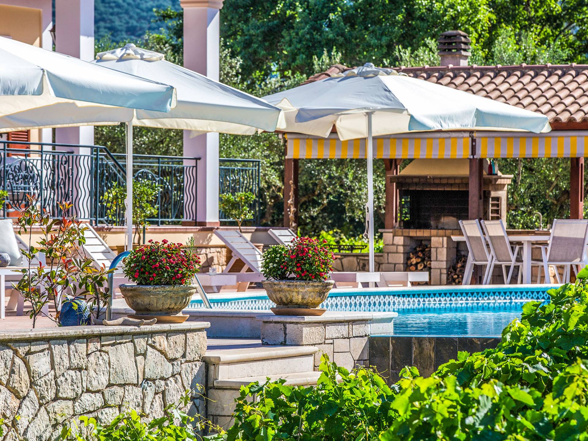 Villa Anastasia is spread in three levels, consisting in total of 7 bedrooms and 4 bathrooms, with a capacity of up to 14 guests, offers a great variety of facilities and plenty of entertainment choices. The villa has its own independent, gorgeous infinity 120sqm pool with open-air hydro-massage. Next to the pool a large roofed BBQ is built, with dining tables for 14 persons.