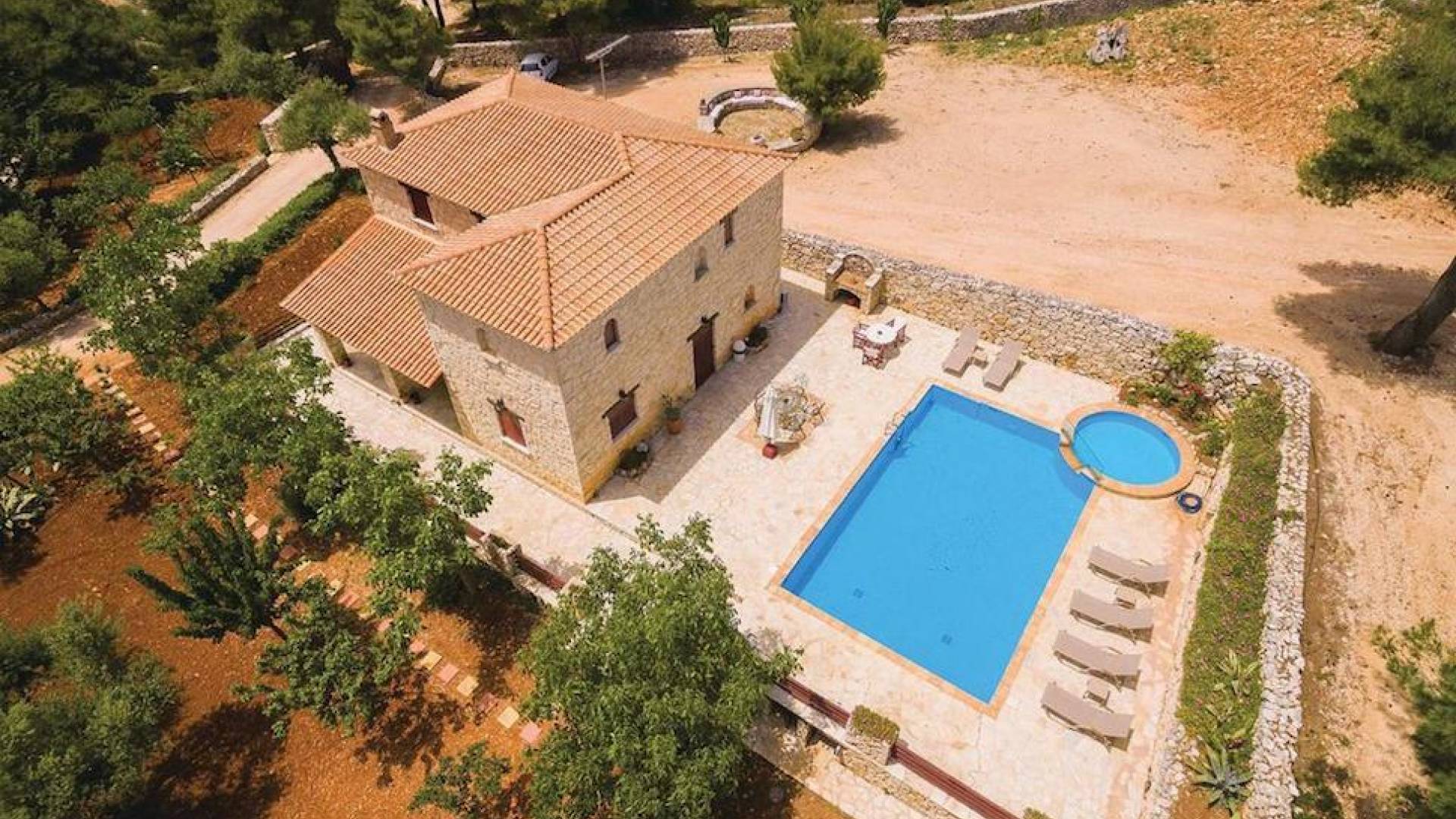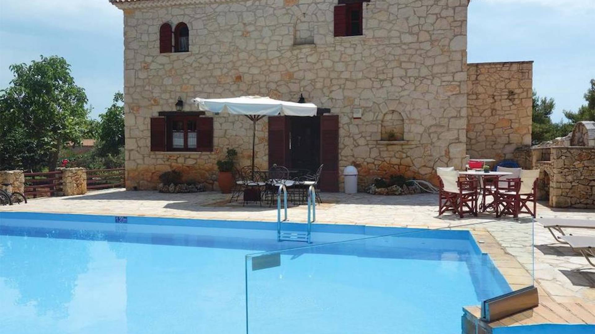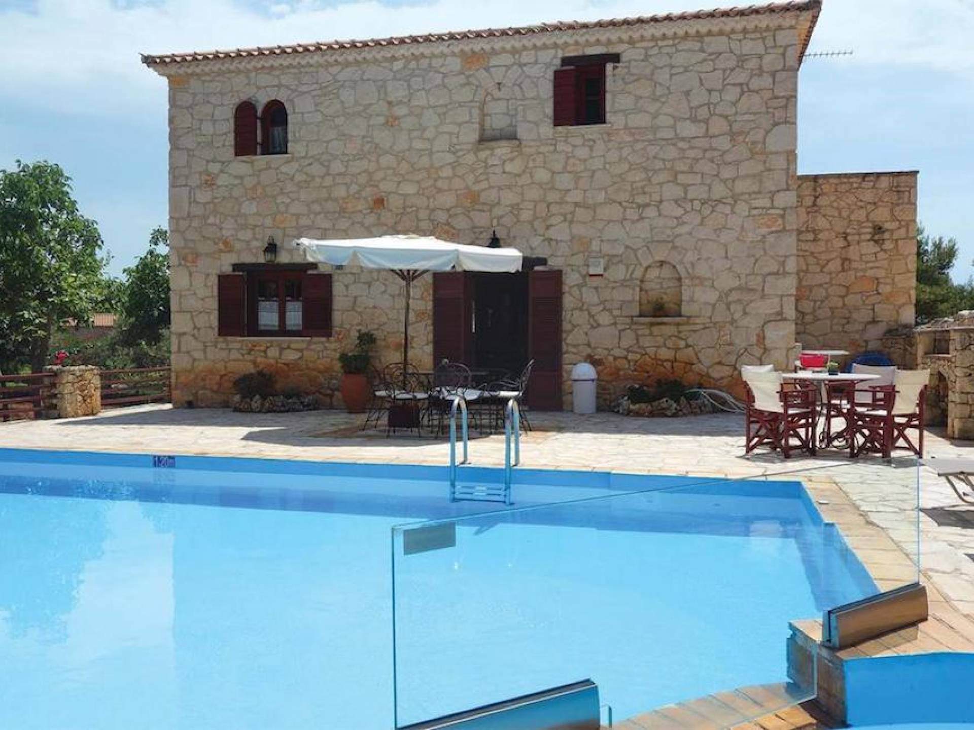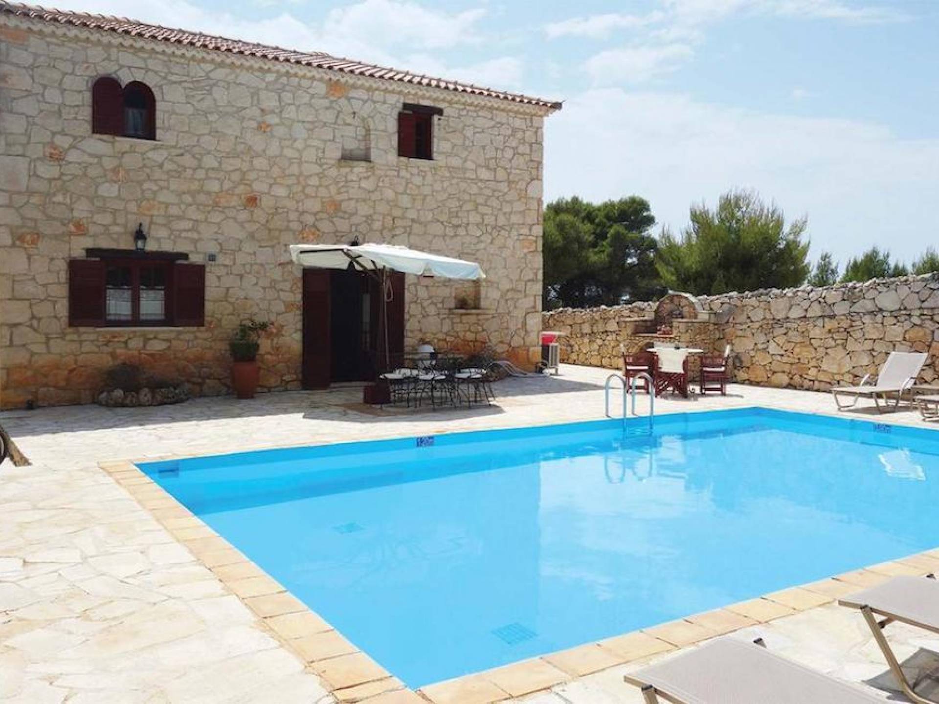 Within large private grounds of 200 sq. km., on the northwest coast of Zakynthos and 20 kilometers from Zakynthos town, the current owners gave life to a forgotten region. The land has been cultivated with loving care and planted with infrequent varieties of trees and plants that tend to disappear from the flora of the island. Five luxurious traditional stone villas were built following the local architecture.