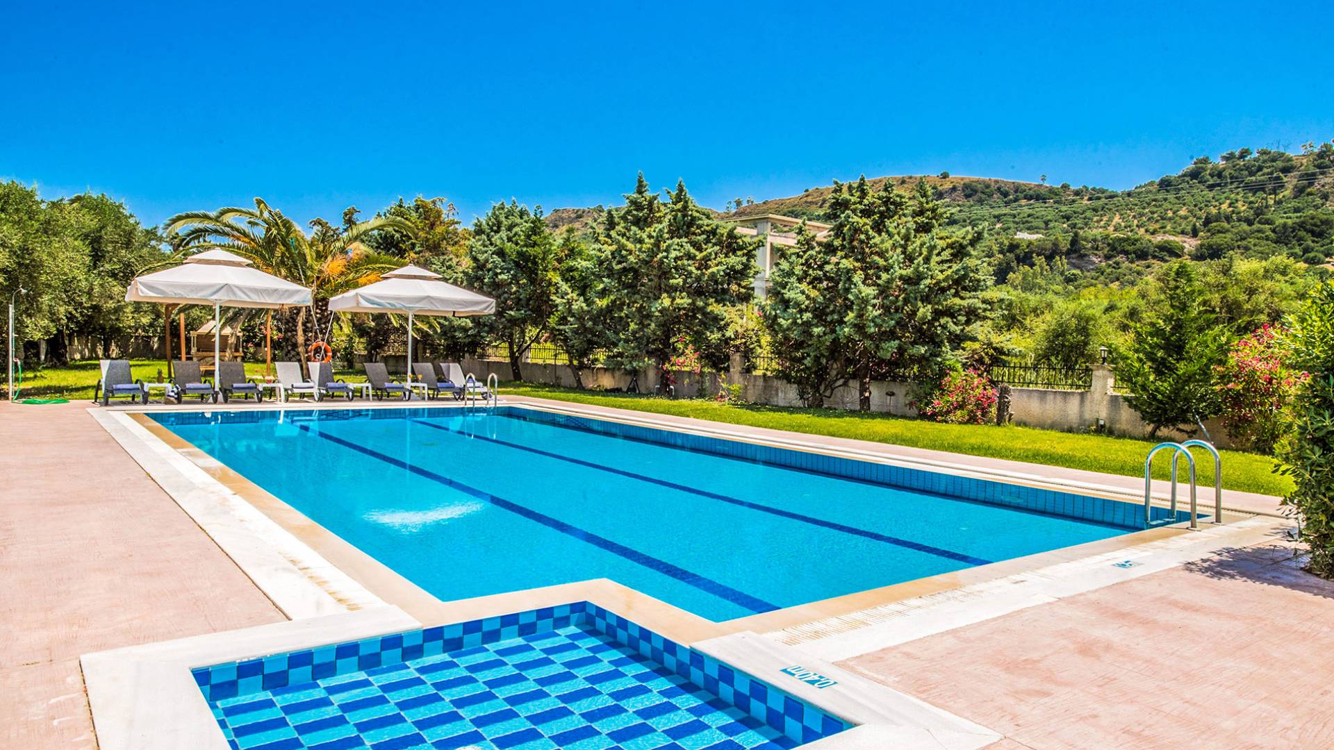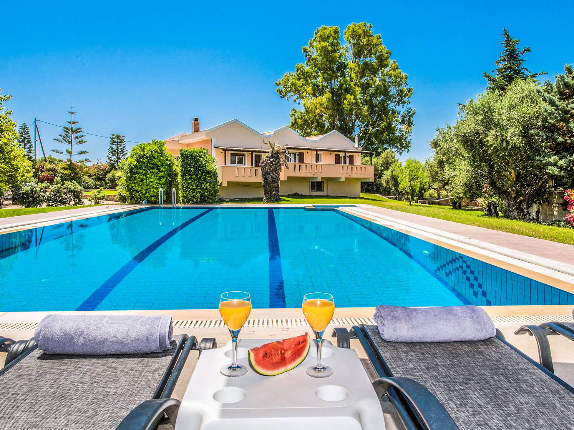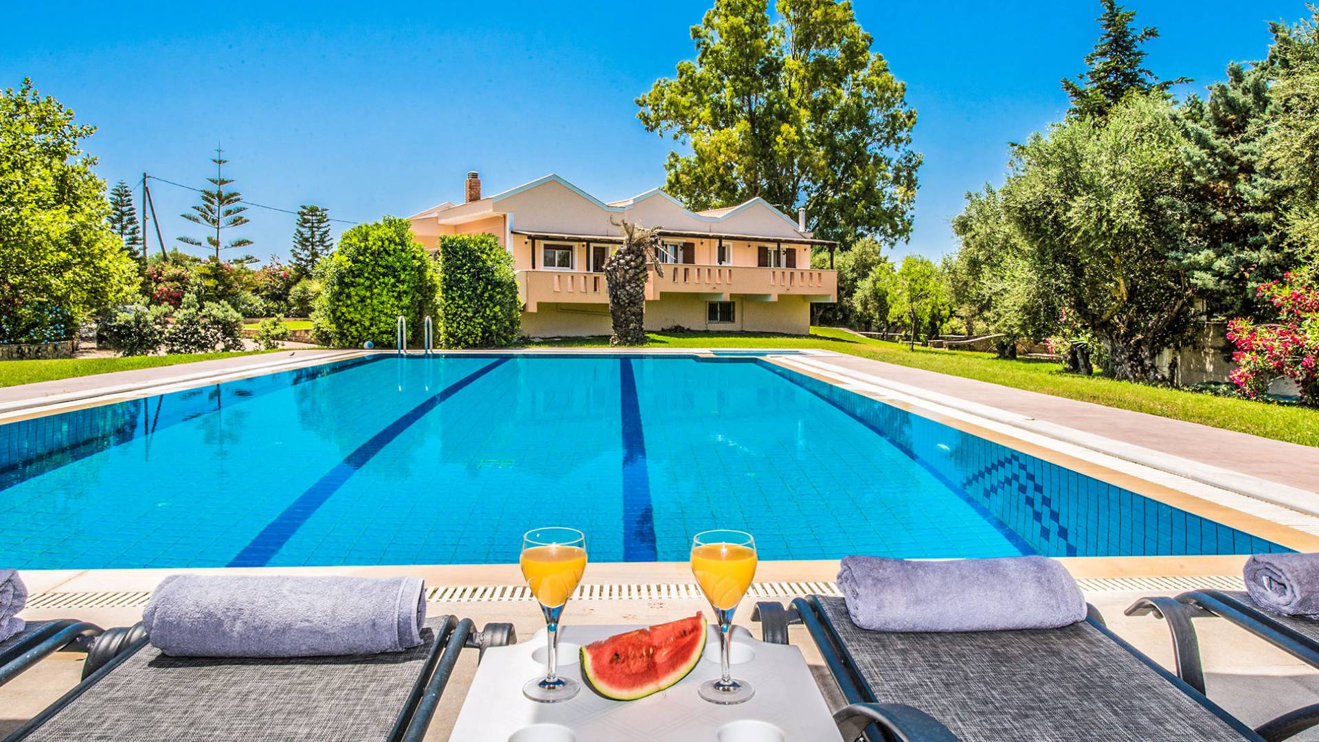 Set in a plot of 12000 sqm among the trees and endless greenery, Leone Luxury Villas Zante offers the ideal holiday destination for families and couples. The whole estate is enclosed by a stone wall in an area with all kinds of trees varying from palm trees to pine trees with an endless grass area as far as the eye can see and picturesque stone footpaths and bridges.