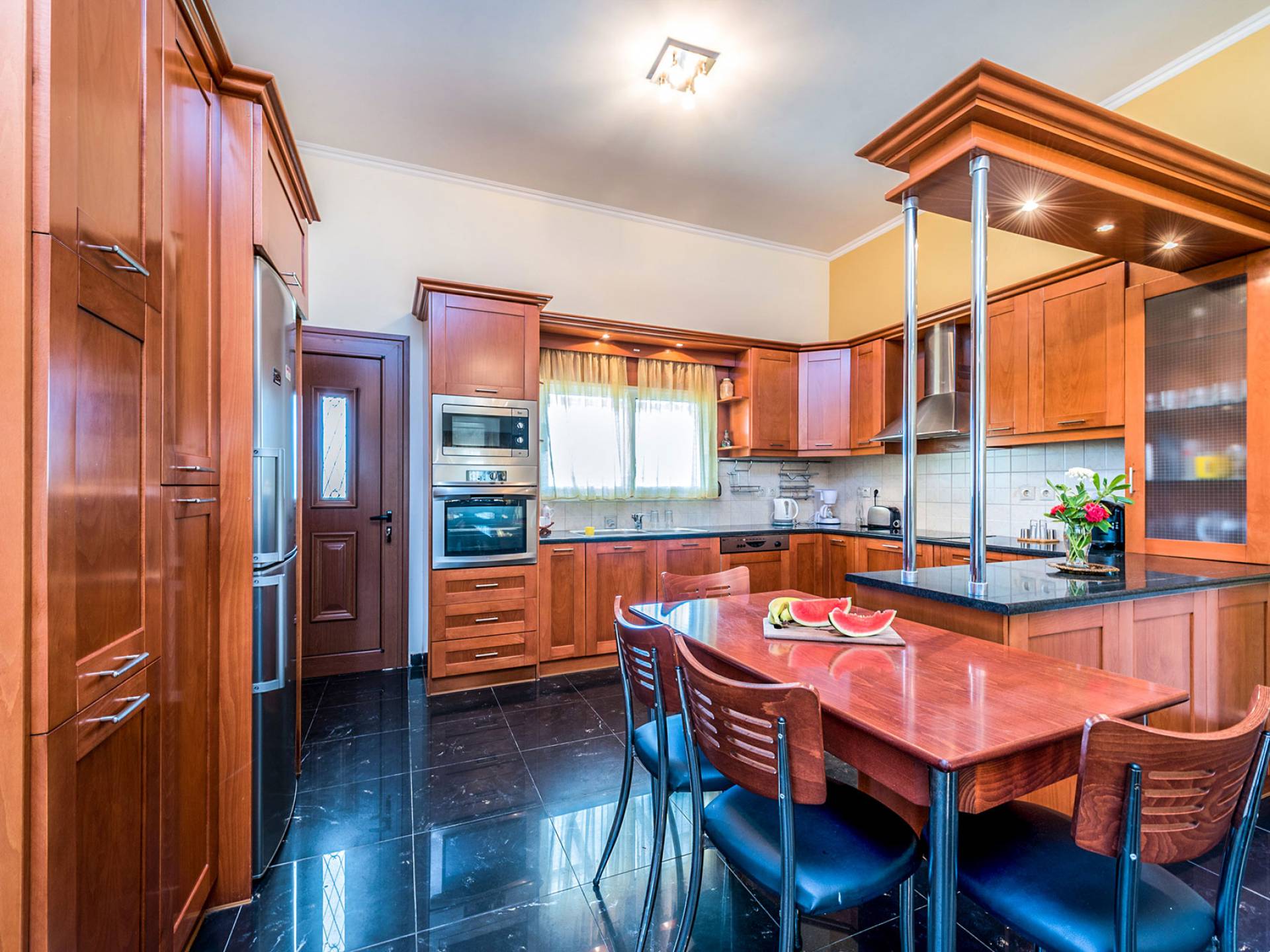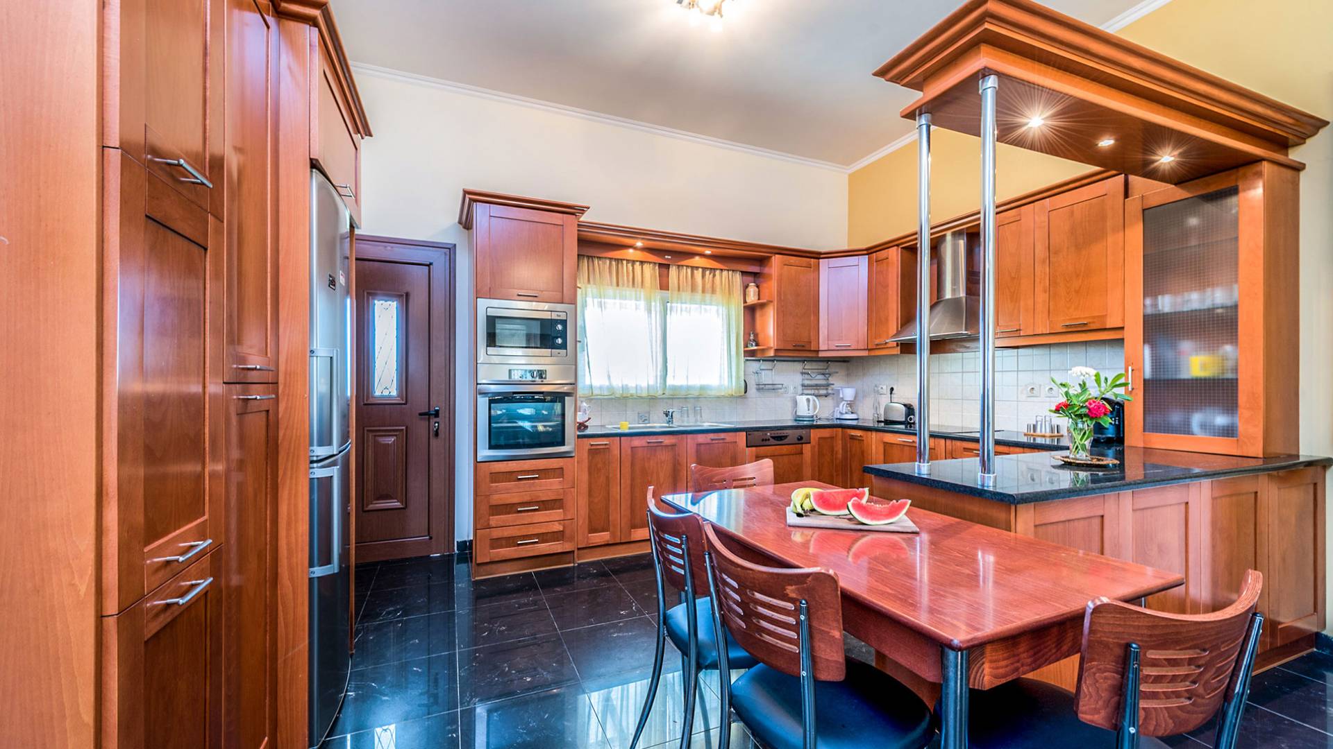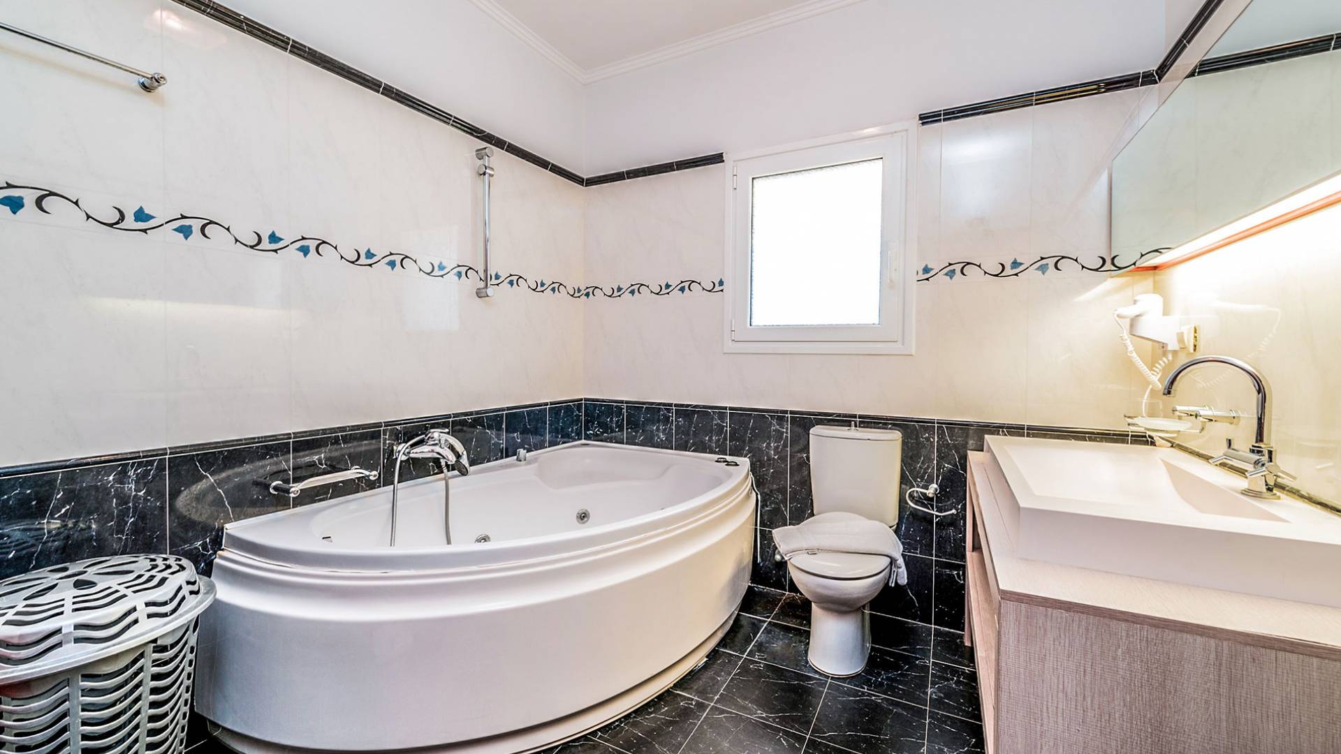 Leone Luxury Villas Zante is spacious and comfortable. There are four large bedrooms in each villa with double beds, air conditioning and balconies off each room. Moreover, there are three bathrooms and in the main bathroom, there is a hydro-massage for your private relaxing moments. There is a big kitchen fully equipped with all the necessary appliances and utensils (refrigerator, cooker, oven, microwave oven, dishwasher, toaster, kettle). You can also enjoy the large furnished living room and dining room areas where there is a large flat-screen cable TV. An interior staircase leads to the basement where there is a vast garage with an automated door. Leone Villas are safe and secure, especially for children. The entrance security camera and security alarm system ensure safe and carefree holidays.