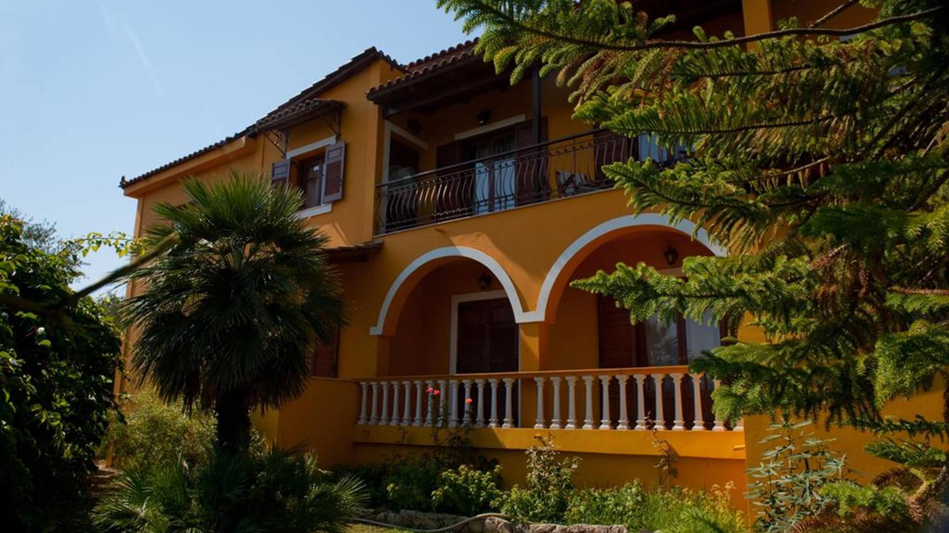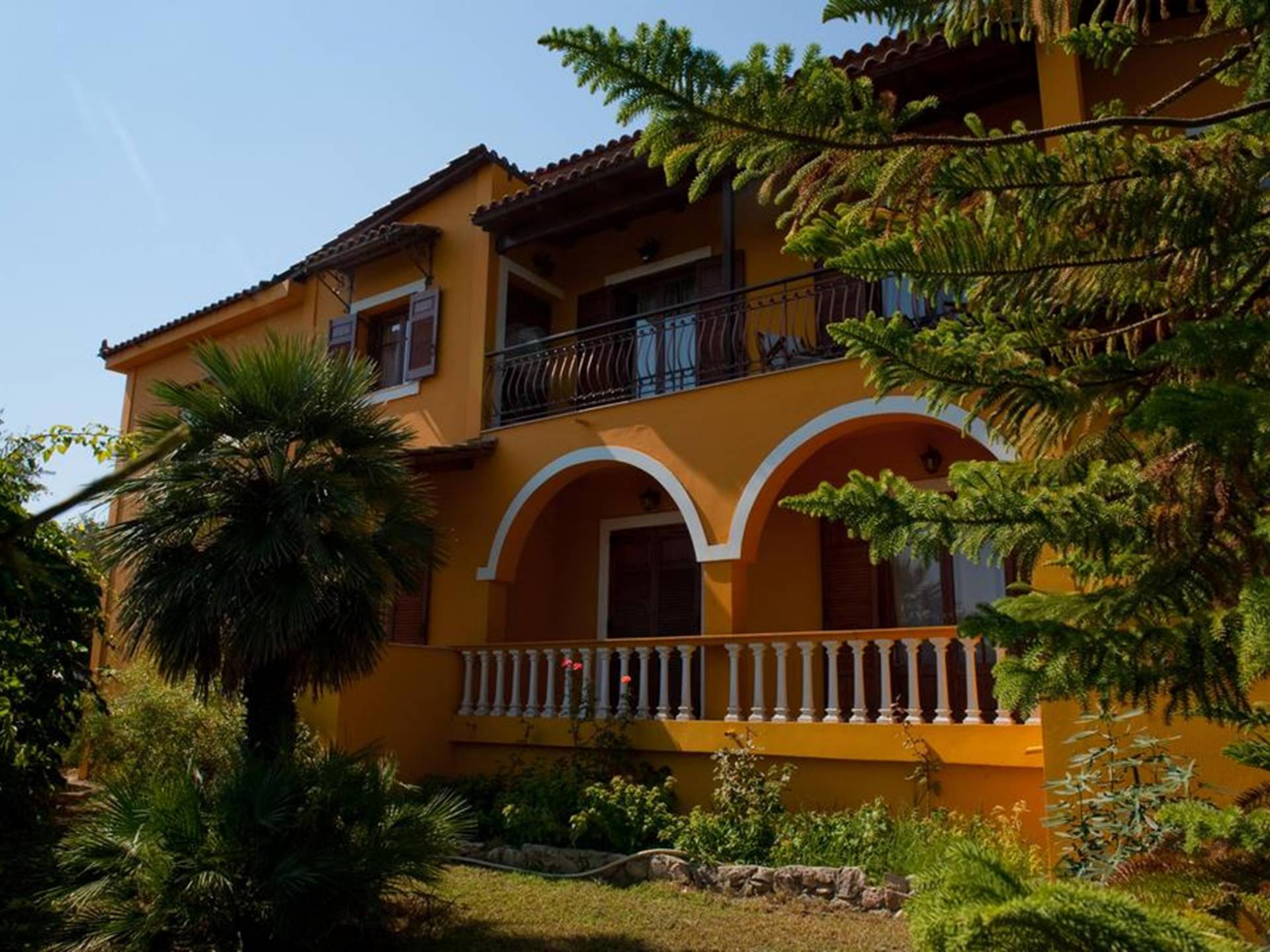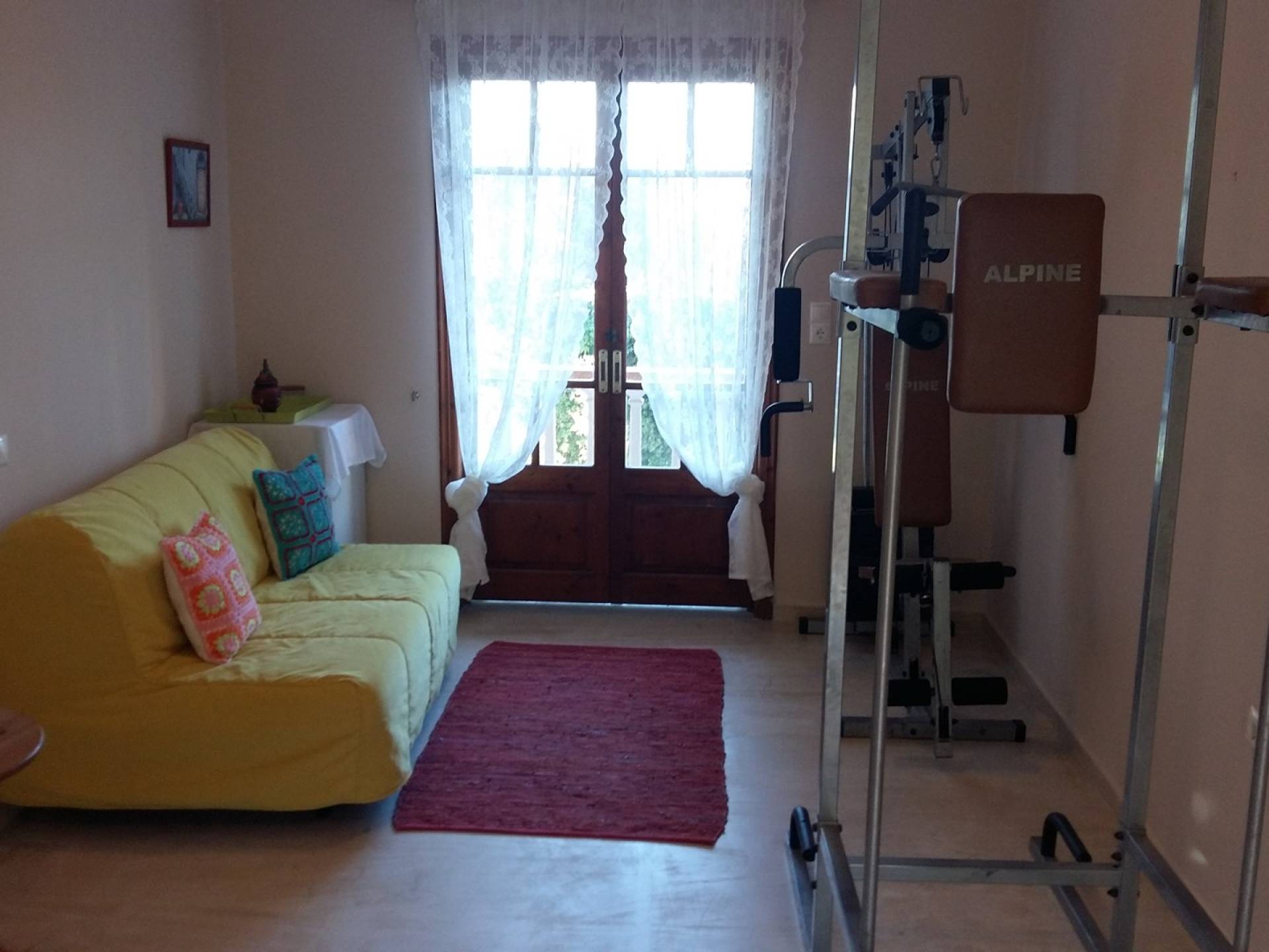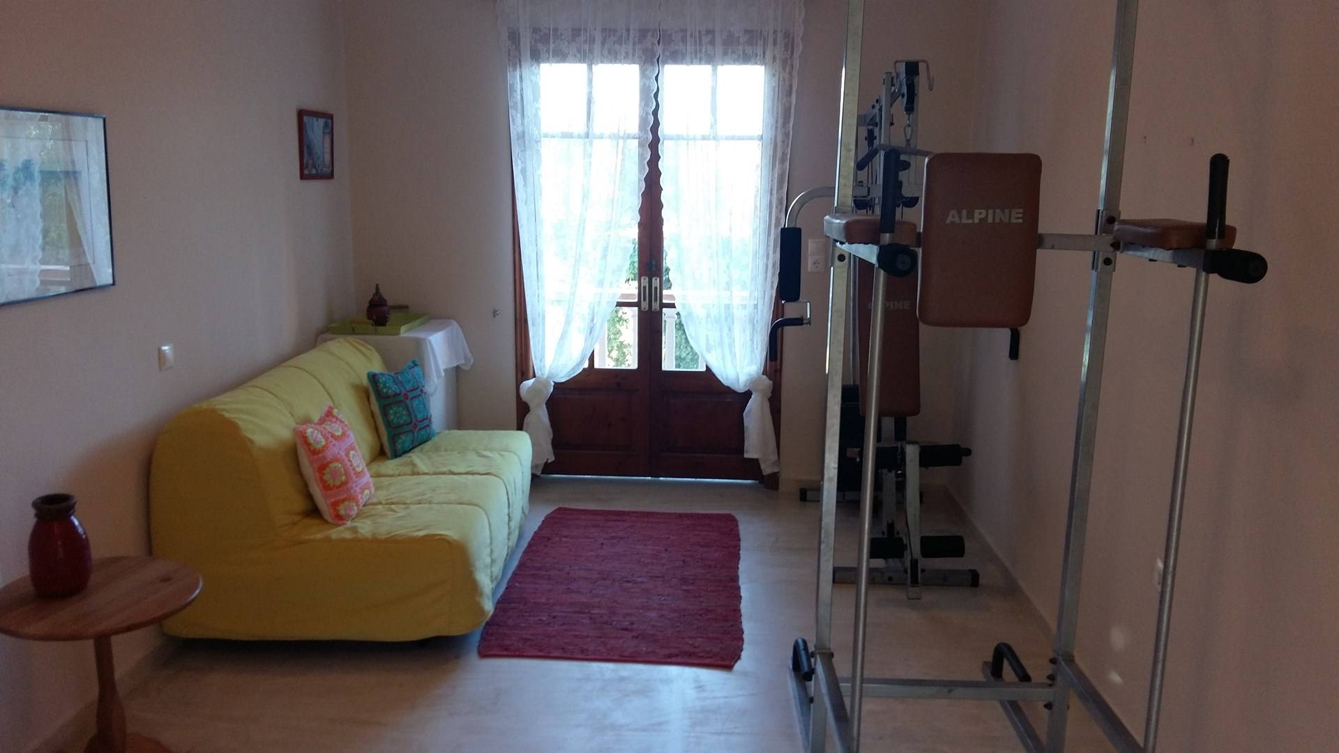 It is a traditional 2floor house with a large garden of 2,000m2, which is surrounded by thick greenery ensuring your privacy. On the 1st floor, there is a spacious living room with the dining room and the kitchen, 2 bedrooms, and 2 bathrooms. From the balcony, you can enjoy the marvelous view of Laganas bay. On the ground floor, there are 3 bedrooms and a playroom gym. They all have en-suite bathrooms, an independent entrance, and a balcony.
