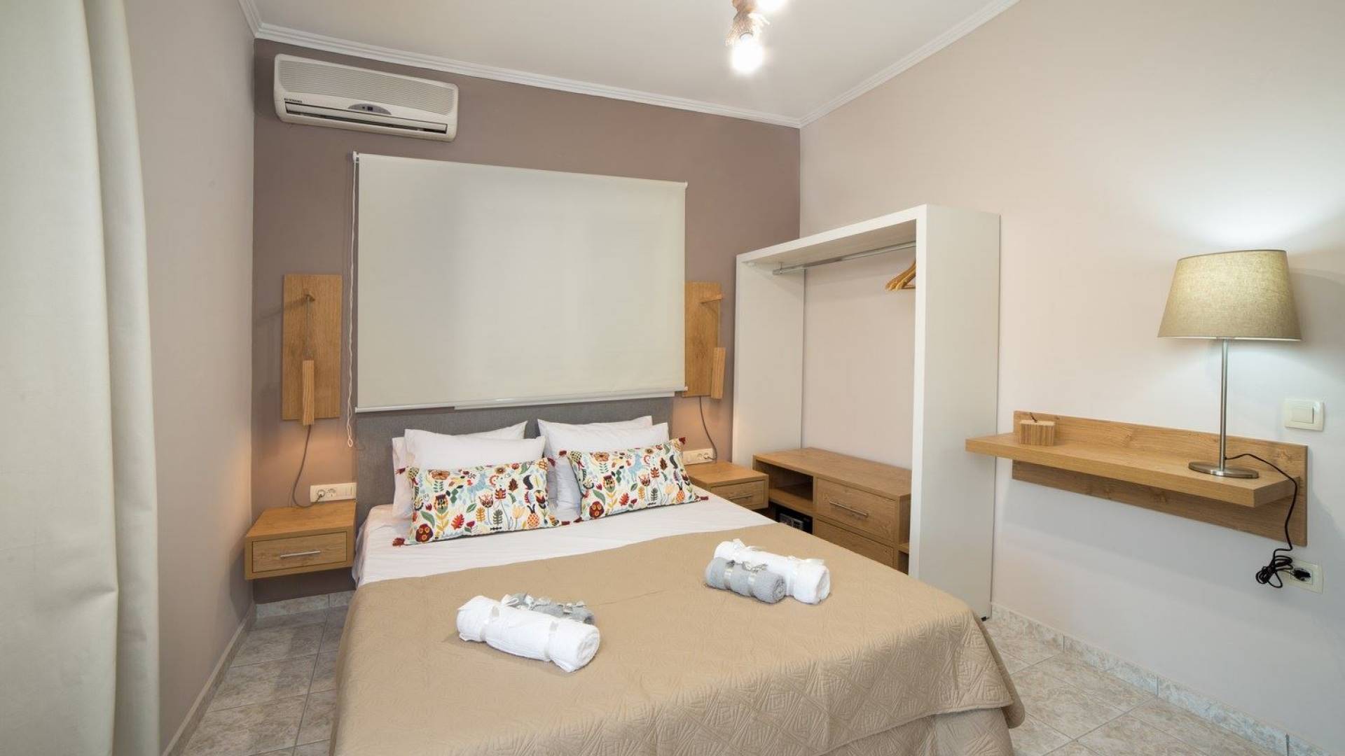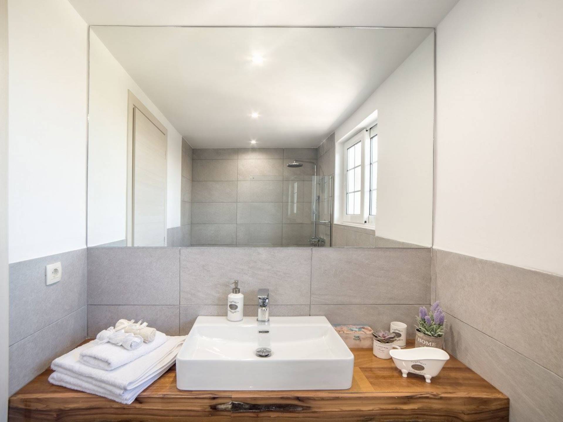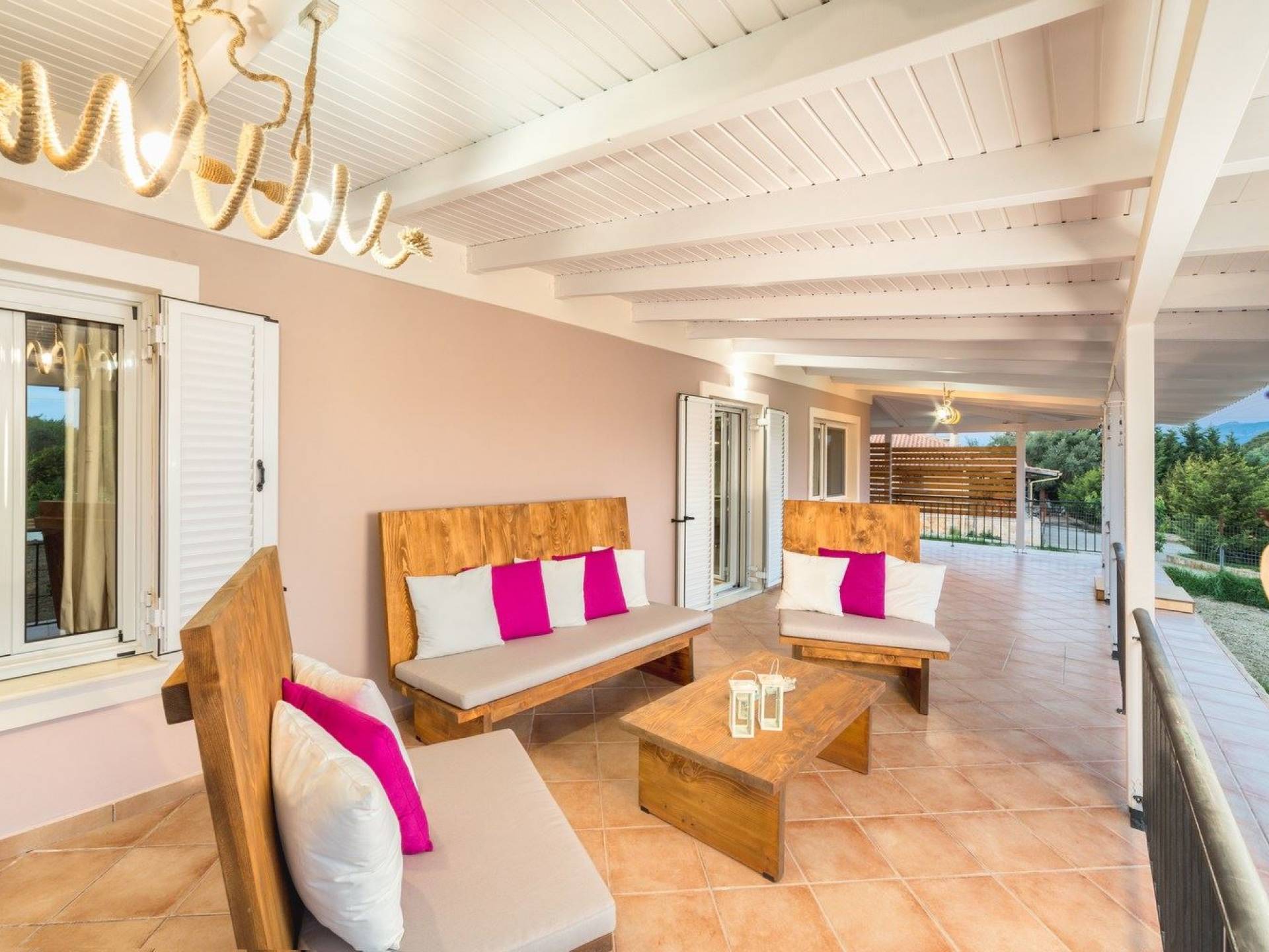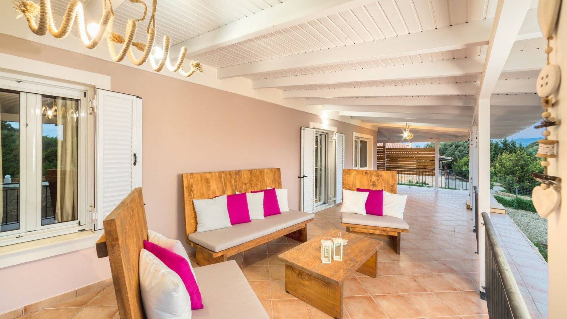 It features five bedrooms, 3 bathrooms, living room with dining area, kitchen, office room, private swimming pool with children’s pool, parking space, barbeque with dining table, and several outdoor sitting areas. It is a beautiful two-story maisonette with special care to detail and luxurious touches. You will find a rich welcome pack upon your arrival including fresh products from the garden. Each room has its own flat-screen satellite tv, luxurious linen, towels, bathrobes and slippers, wifi, and air-conditioning. The kitchen is fully equipped with all modern appliances including fridge, oven/stove, coffee machine, electric kettle, toaster, and microwave. Spacious balconies around the villa are perfect setting for summer evenings with family and friends, overlooking the charming gardens and the serene landscape.