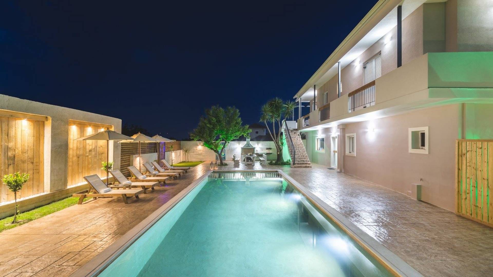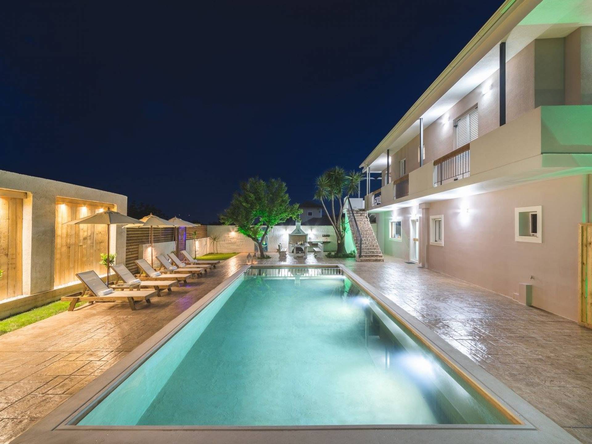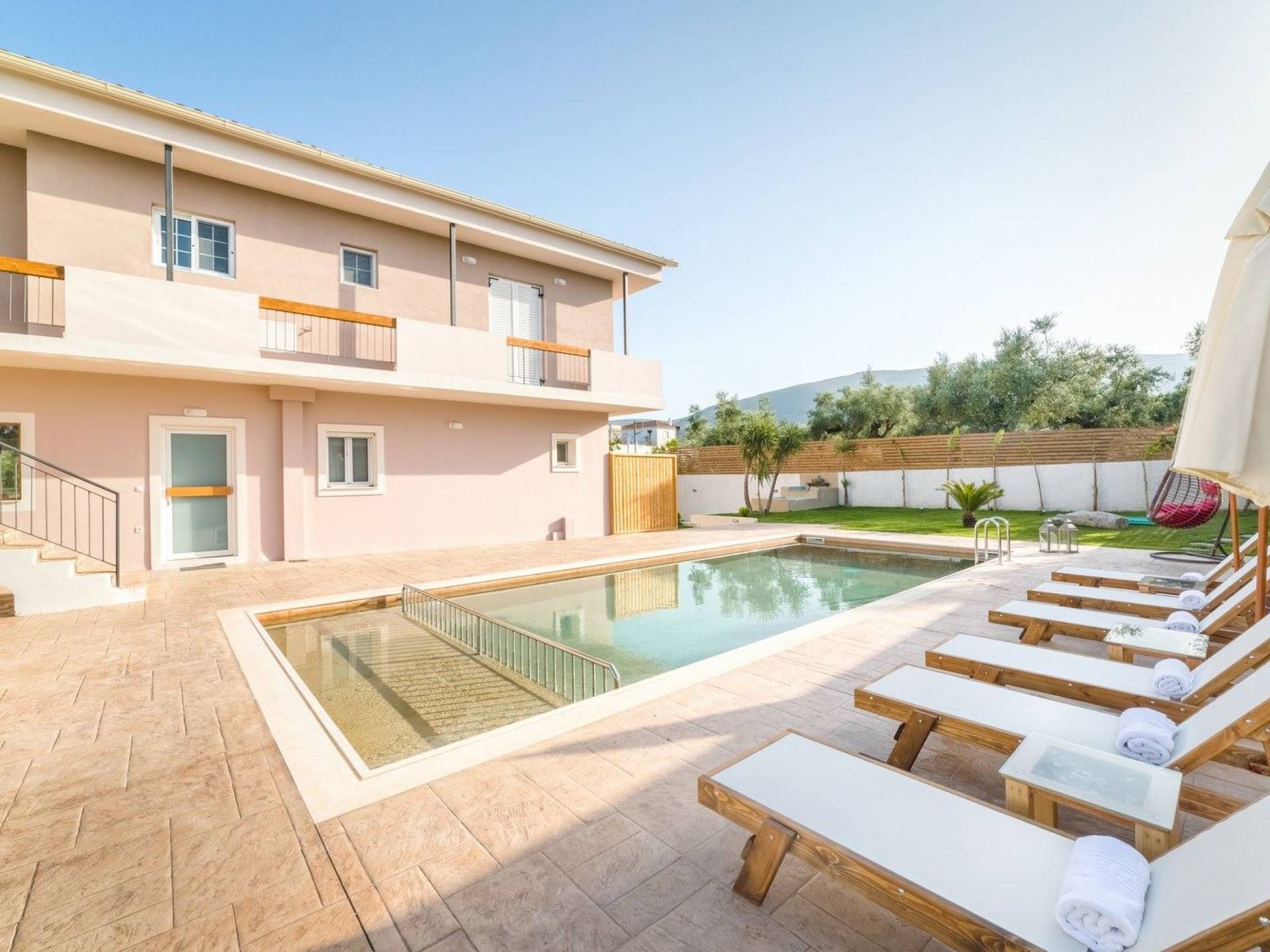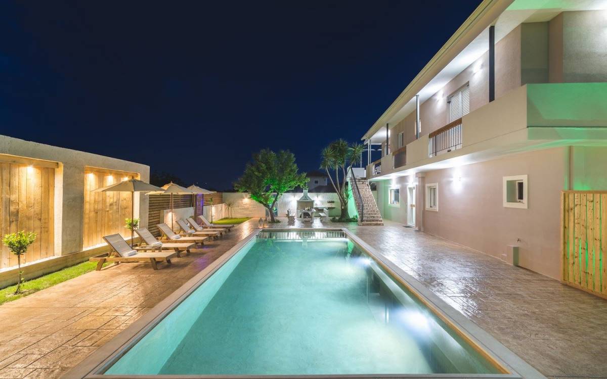 Bruma Residence Zante is a luxury villa rental with 5 bedrooms and a private pool. Bruma Residence is a totally renovated and nicely decorated four-bedroom villa, located in a convenient area close to the most important attractions of Zakynthos island. With easy access to Laganas, Zante town, airport, it can be the ideal base to explore around. It can accommodate up to 10 people, fully equipped offering free parking space, outdoor swimming pool with children's pool, beautiful garden, barbeque, kitchen, dining area, living room, and all modern facilities to cover your needs.