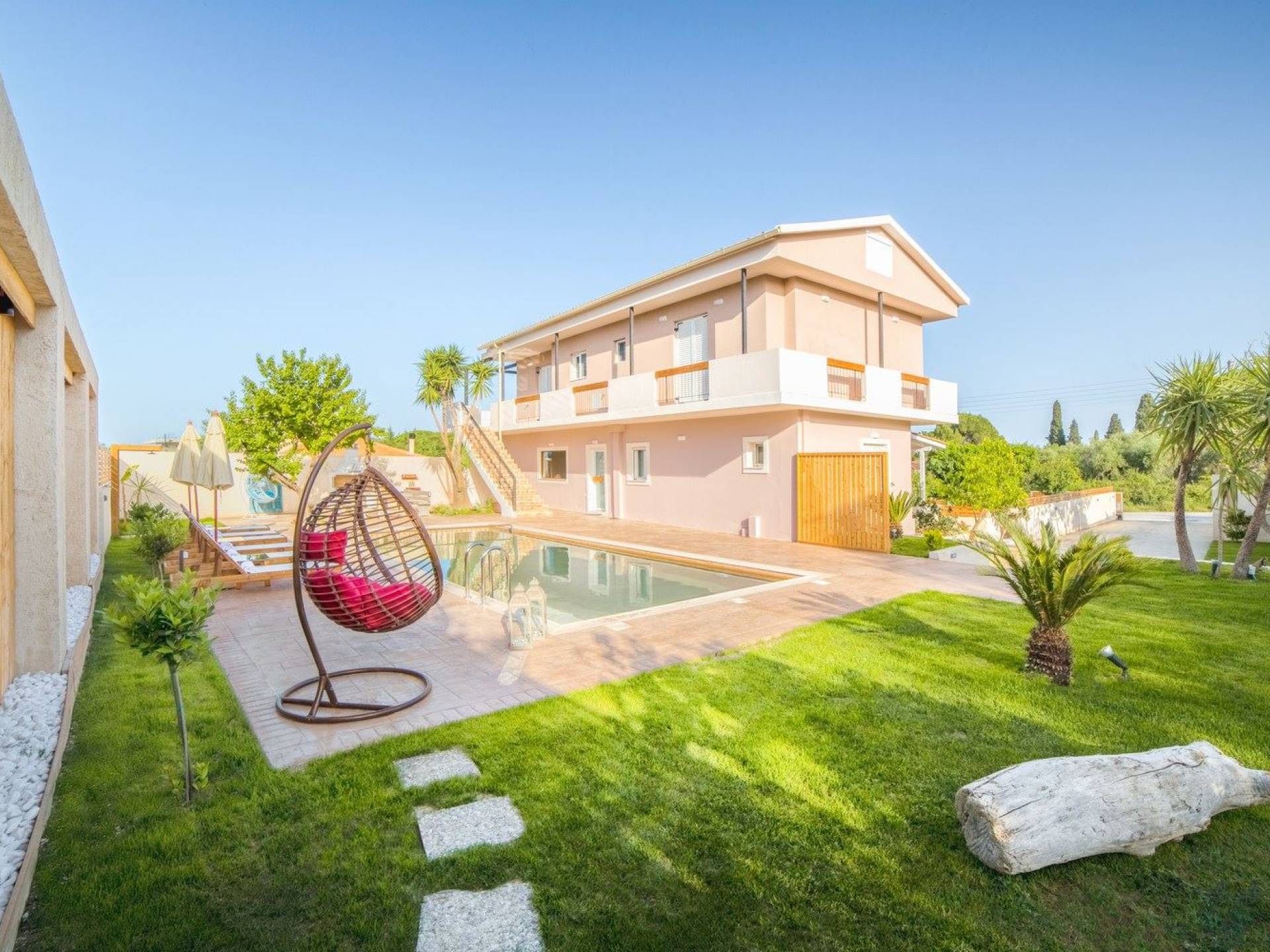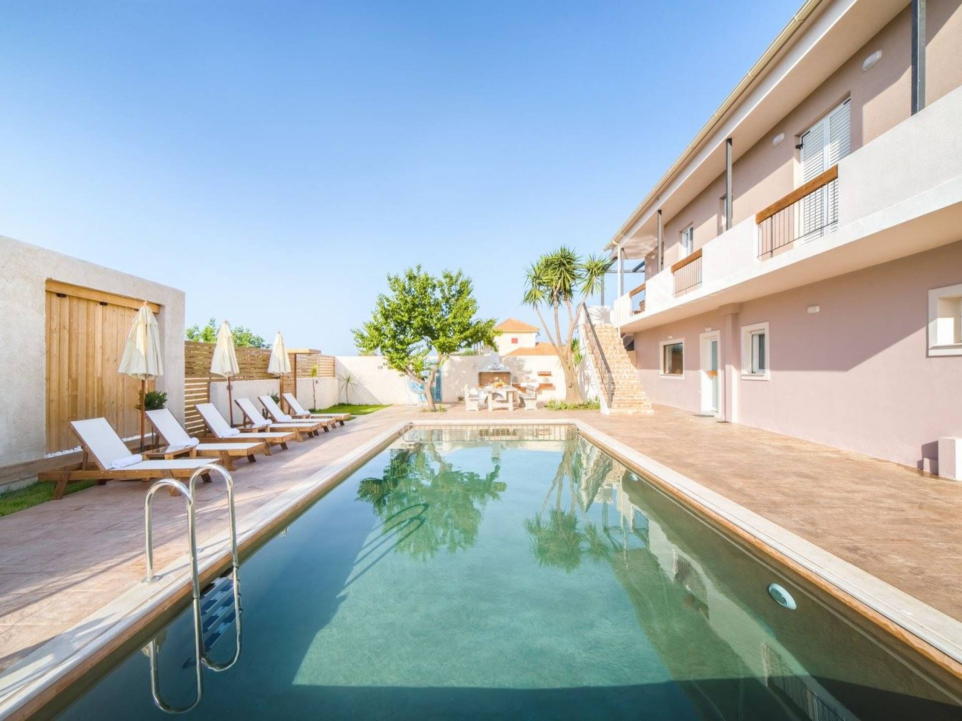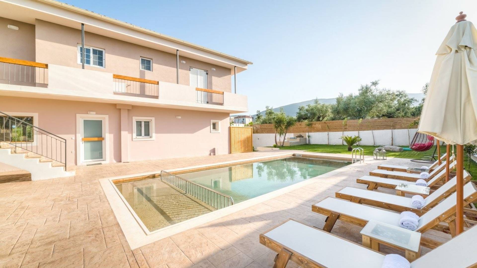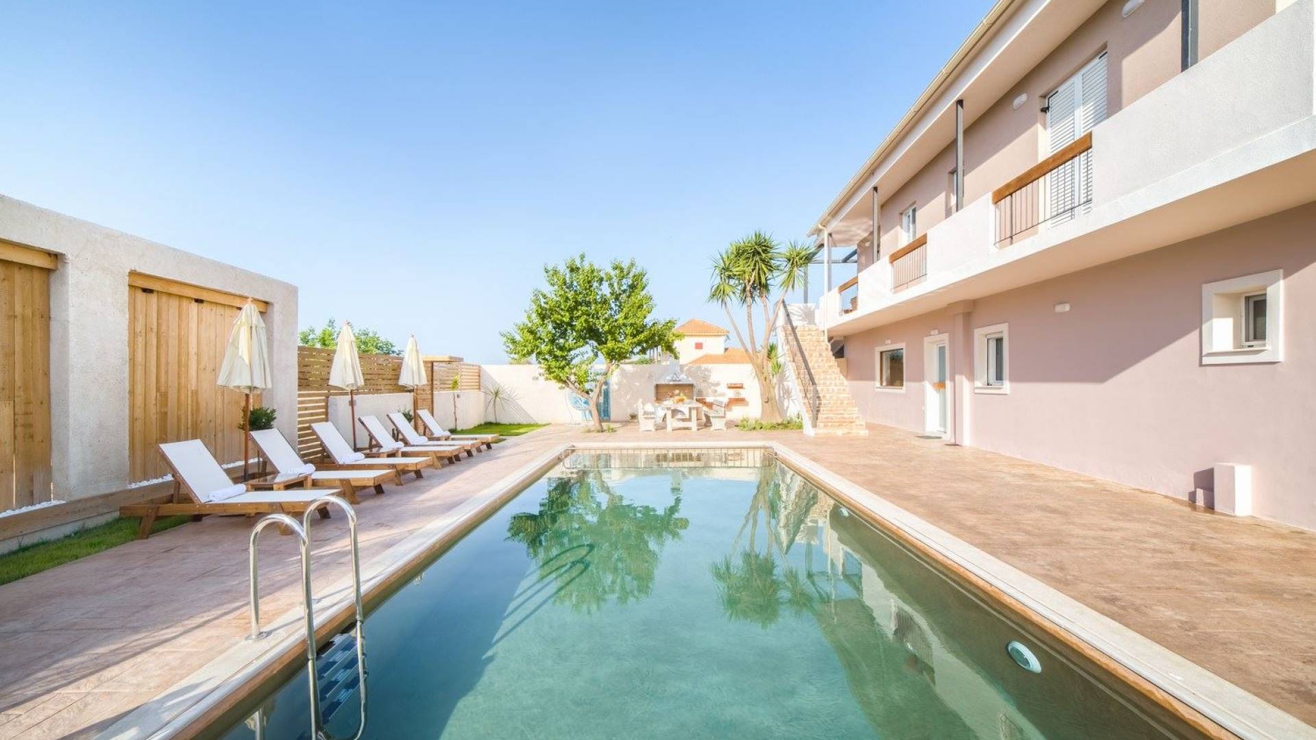 Bruma Residence Zante is a luxury villa rental with 5 bedrooms and a private pool. Bruma Residence is a totally renovated and nicely decorated four-bedroom villa, located in a convenient area close to the most important attractions of Zakynthos island. With easy access to Laganas, Zante town, airport, it can be the ideal base to explore around. It can accommodate up to 10 people, fully equipped offering free parking space, outdoor swimming pool with children's pool, beautiful garden, barbeque, kitchen, dining area, living room, and all modern facilities to cover your needs.
