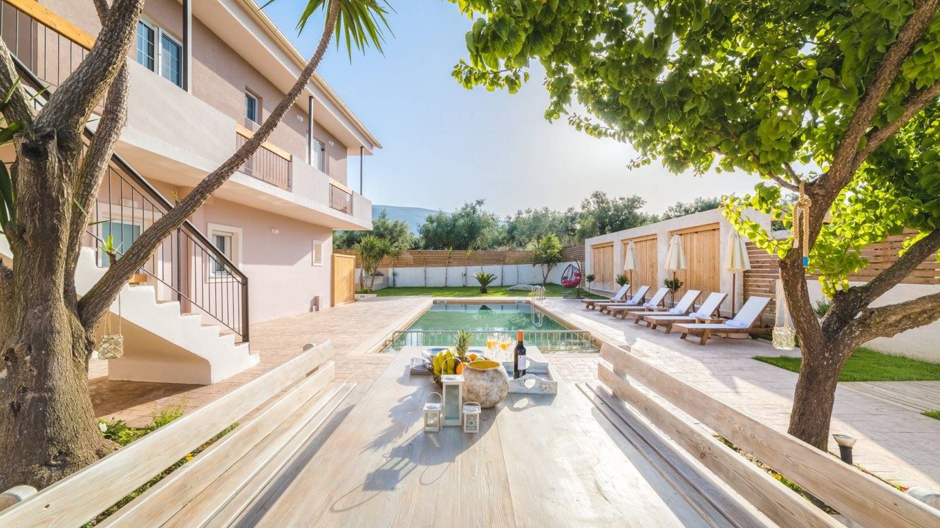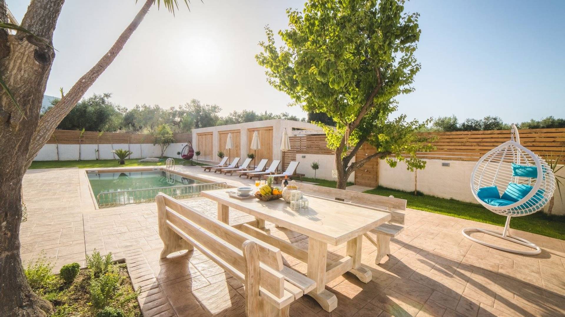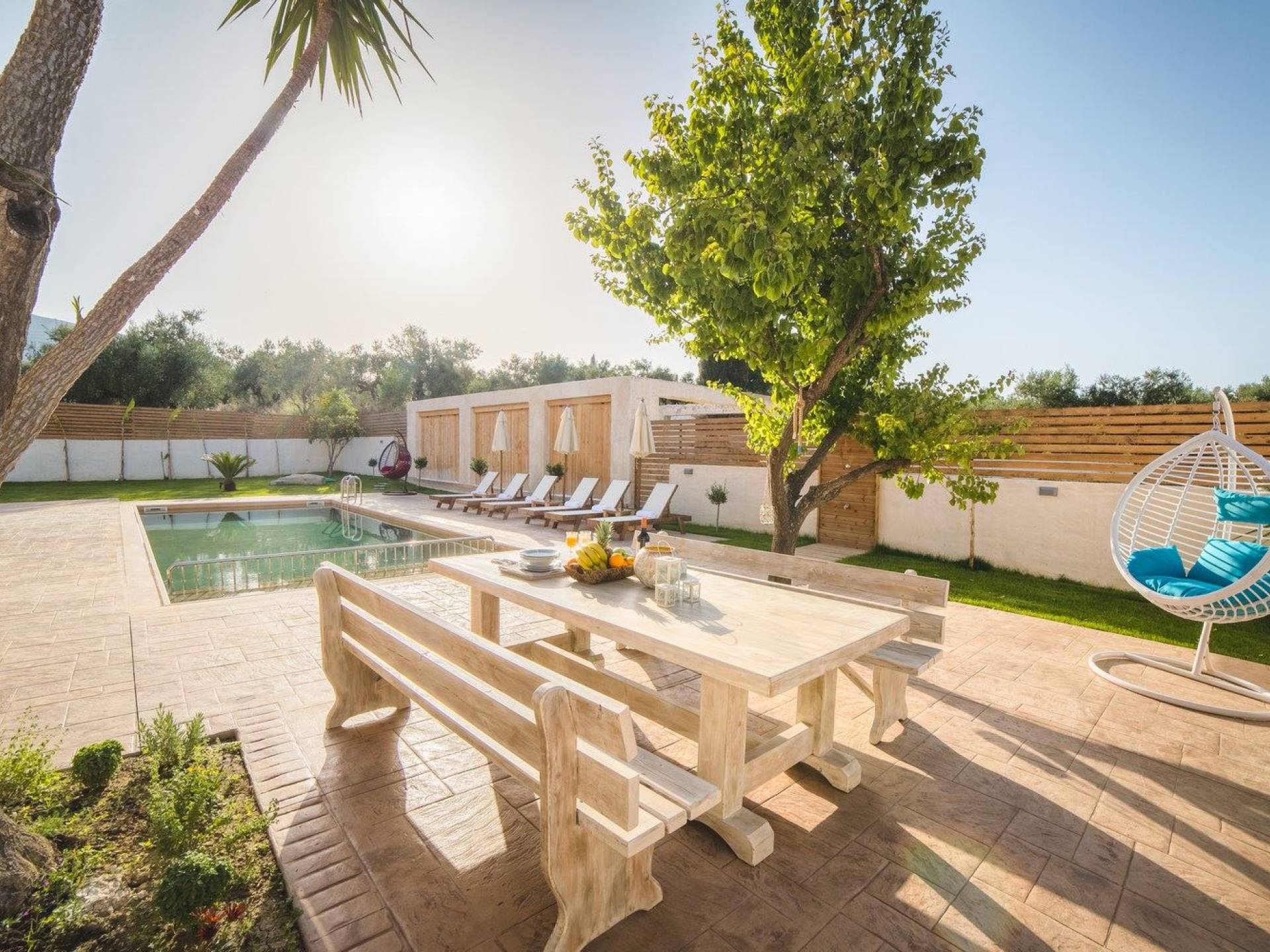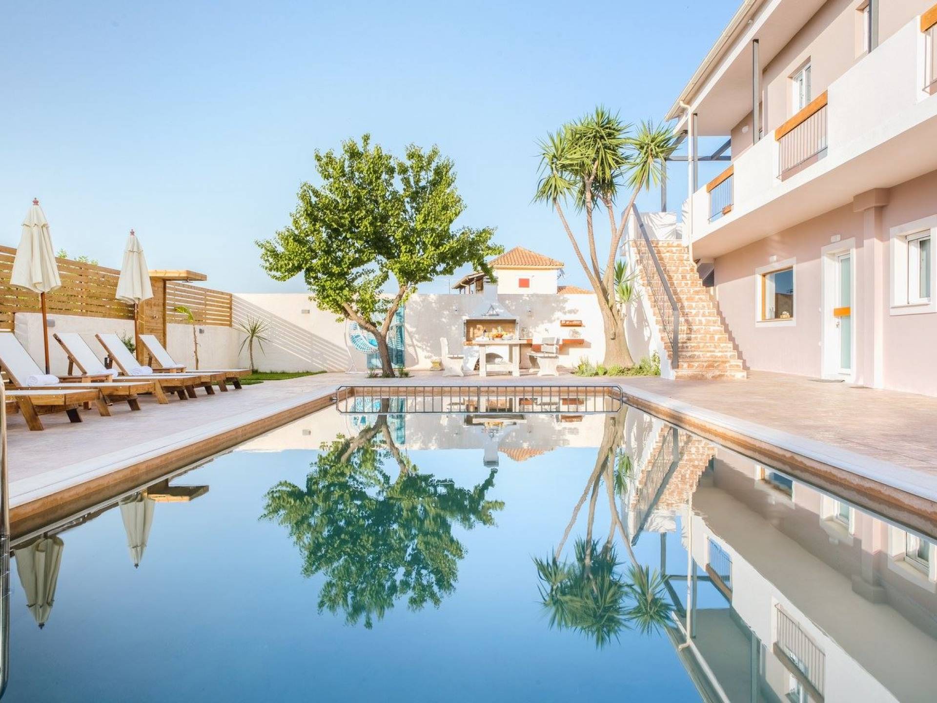Bruma Residence Zante is a luxury villa rental with 5 bedrooms and a private pool. Bruma Residence is a totally renovated and nicely decorated four-bedroom villa, located in a convenient area close to the most important attractions of Zakynthos island. With easy access to Laganas, Zante town, airport, it can be the ideal base to explore around. It can accommodate up to 10 people, fully equipped offering free parking space, outdoor swimming pool with children's pool, beautiful garden, barbeque, kitchen, dining area, living room, and all modern facilities to cover your needs.