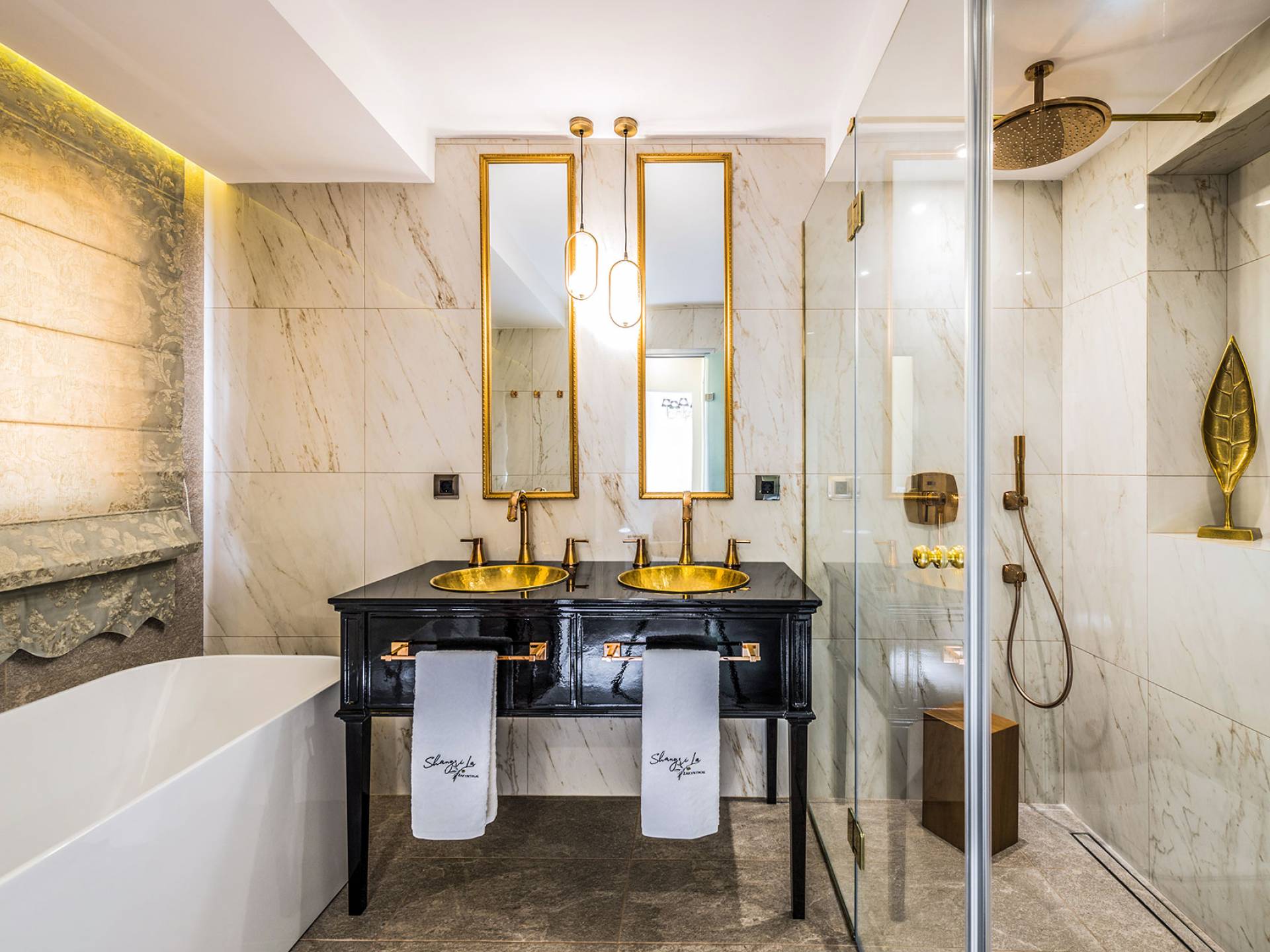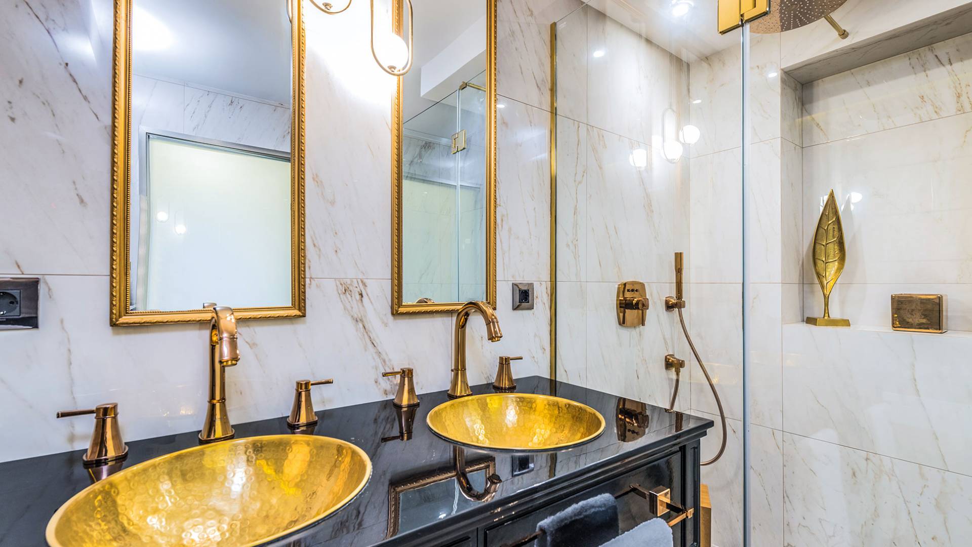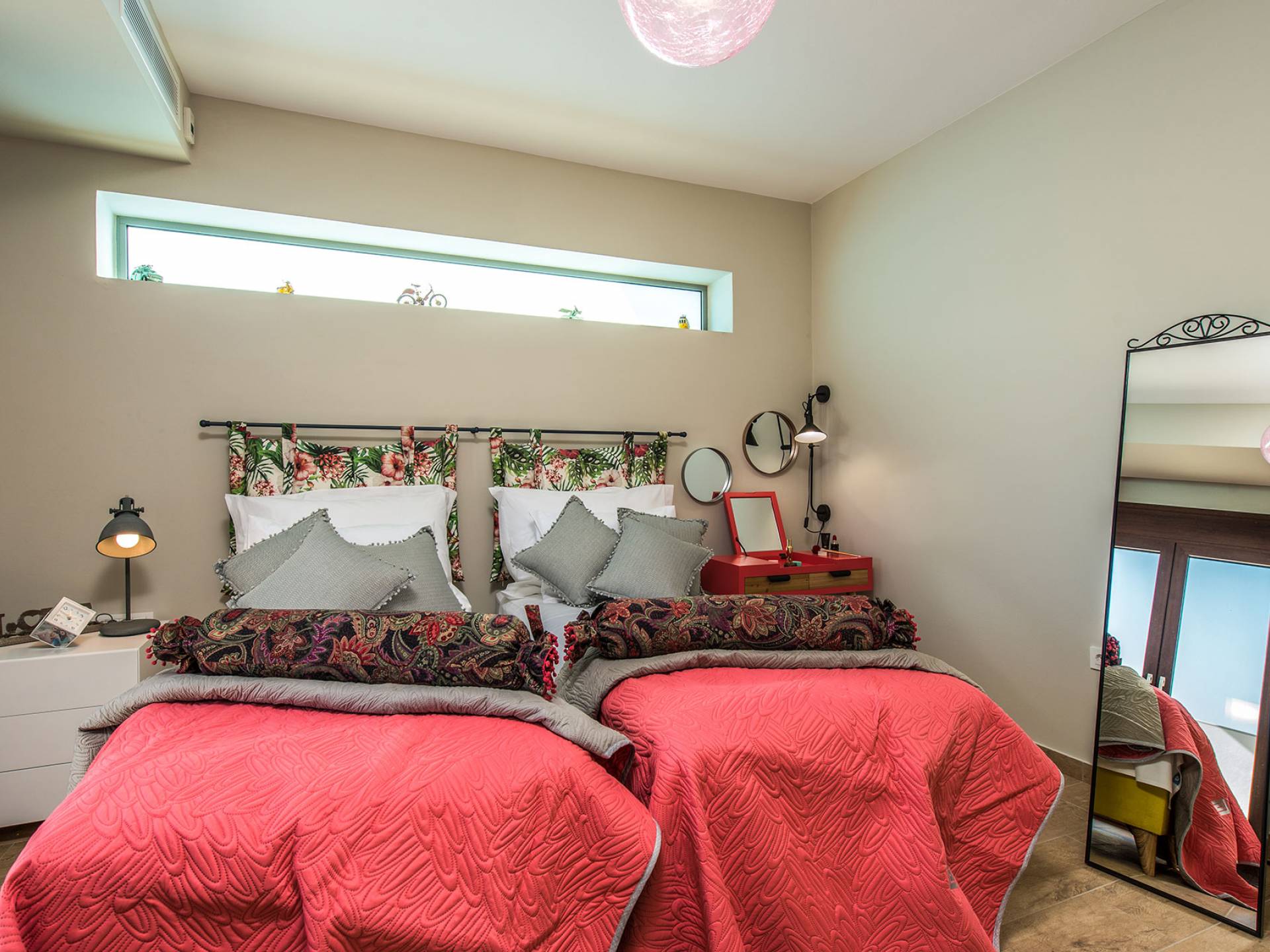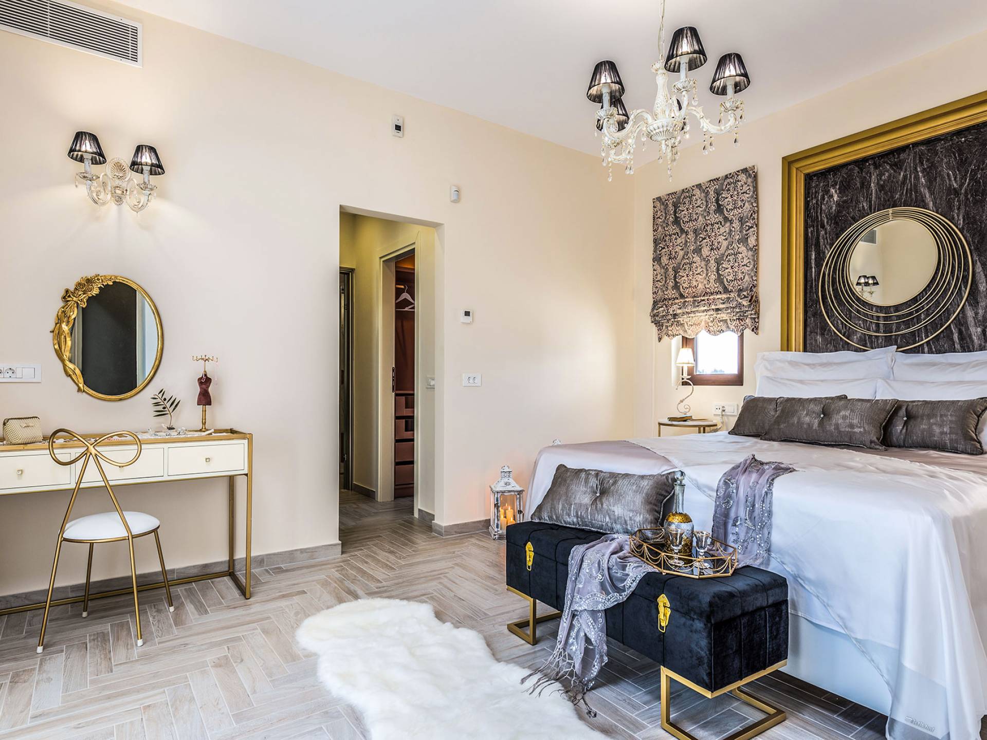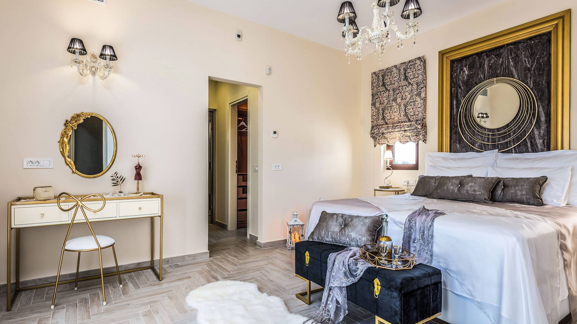 The absolutely luxurious master bedroom features a king-size bed, with His & Hers walk-in closets, and an extra refined master bathroom for exquisite moments of solitude. On the same floor, there are two standard suite bedrooms, also featuring king-size beds or four single ones depending on our guests’ needs, a shared bathroom, and a laundry area. Each bedroom hosts a balcony perfect for a much-needed tranquil break.