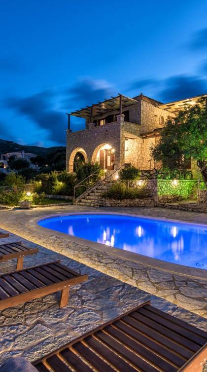 The luxurious Villa Armos Zante is located on the mountainside, in Skinari of Zante, with a view of the endless blue of the Ionian Sea and of Cephalonia. Is an example of unique architecture with an exceptional interior design. Villa Armos Zante has achieved this magnificent result of unique excellence using regional materials and benefiting from the art of local craftsmen with respect to tradition and away from the standards of mass tourism.