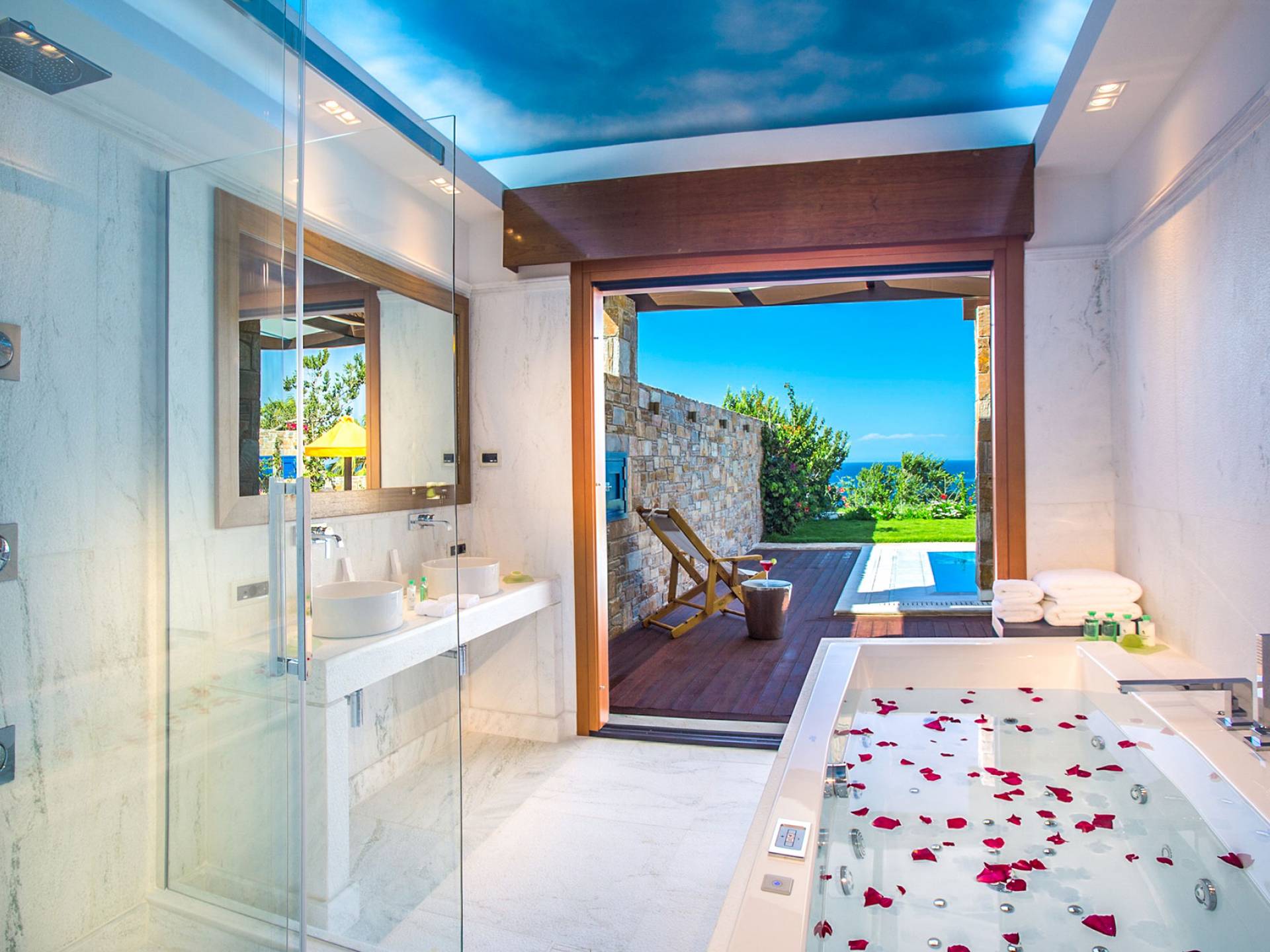 Color blue, sun and luxury, nothing can beat this combination. What else is there to ask for your vacation? Indulge yourself in a heated private pool in the coziness of your own villa, either an indoor or outdoor one. The water is healing and therapeutic…