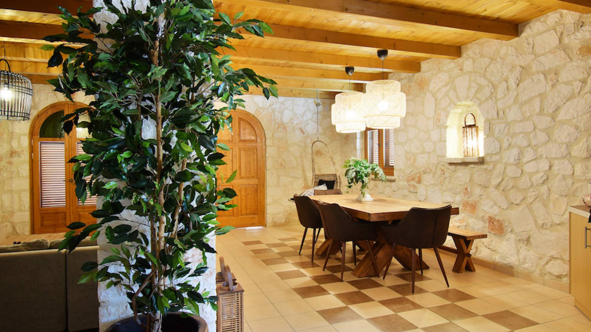 Jootiq Villas, mixing a magnificent stone-built concept with top-notch facilities and supreme comfort, all in a luscious location overwhelmed by surrounding olive groves.