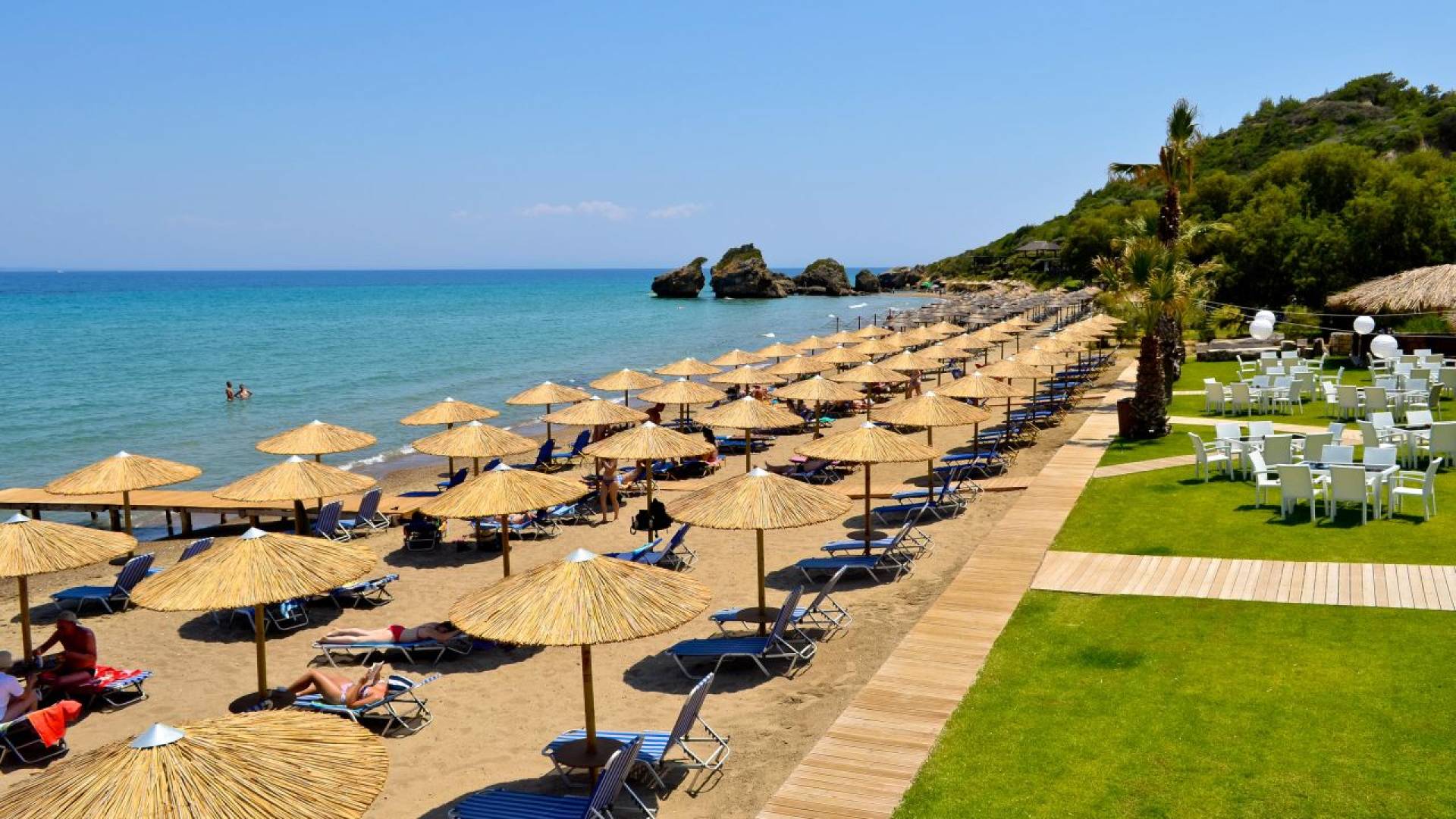 Vasilikos village is located 11km from Zakynthos Town and is one of the most popular destinations of Zakynthos situated on the peninsula of the island in the southeast. Vasilikos is a general area of the peninsula rather than a separate resort, including many villages. It is known for its natural beauty and tranquility. Beautiful blue and clear shallow waters and beaches embraced by high mountains and vast olive groves compose its beautiful frame making also ideal for families with children. Access is easy by car or even on foot. Here lie some of the most breathtaking beaches of the whole Ionian complex. Vasilikos is also a known reproduction site for the famous Caretta sea-turtle. While being a very quiet resort, Vasilikos offers many beach amenities and is composed of many different beaches to choose from; Kaminia, Porto Zoro, Ionio, Porto Roma, Daphni, etc.