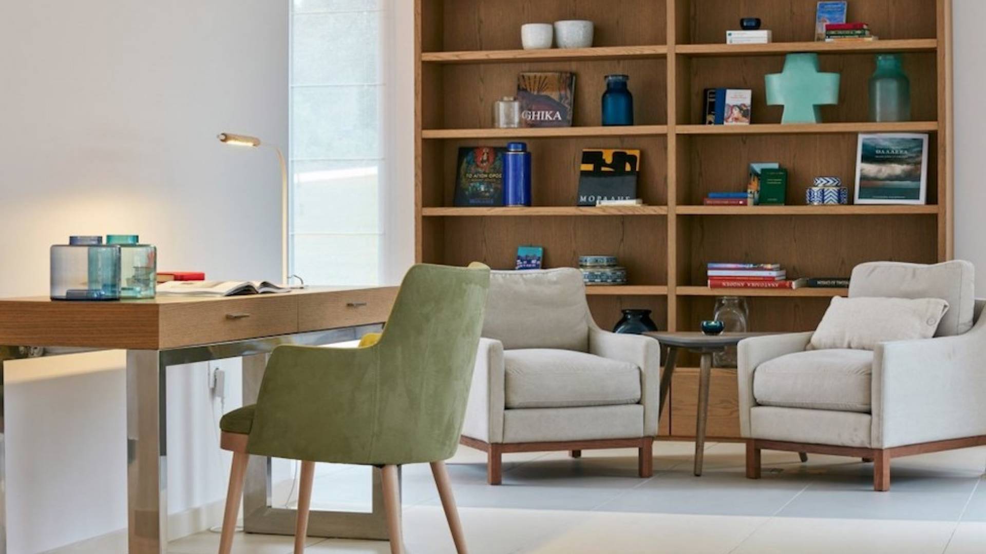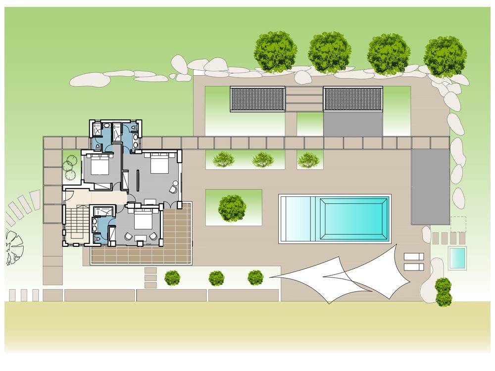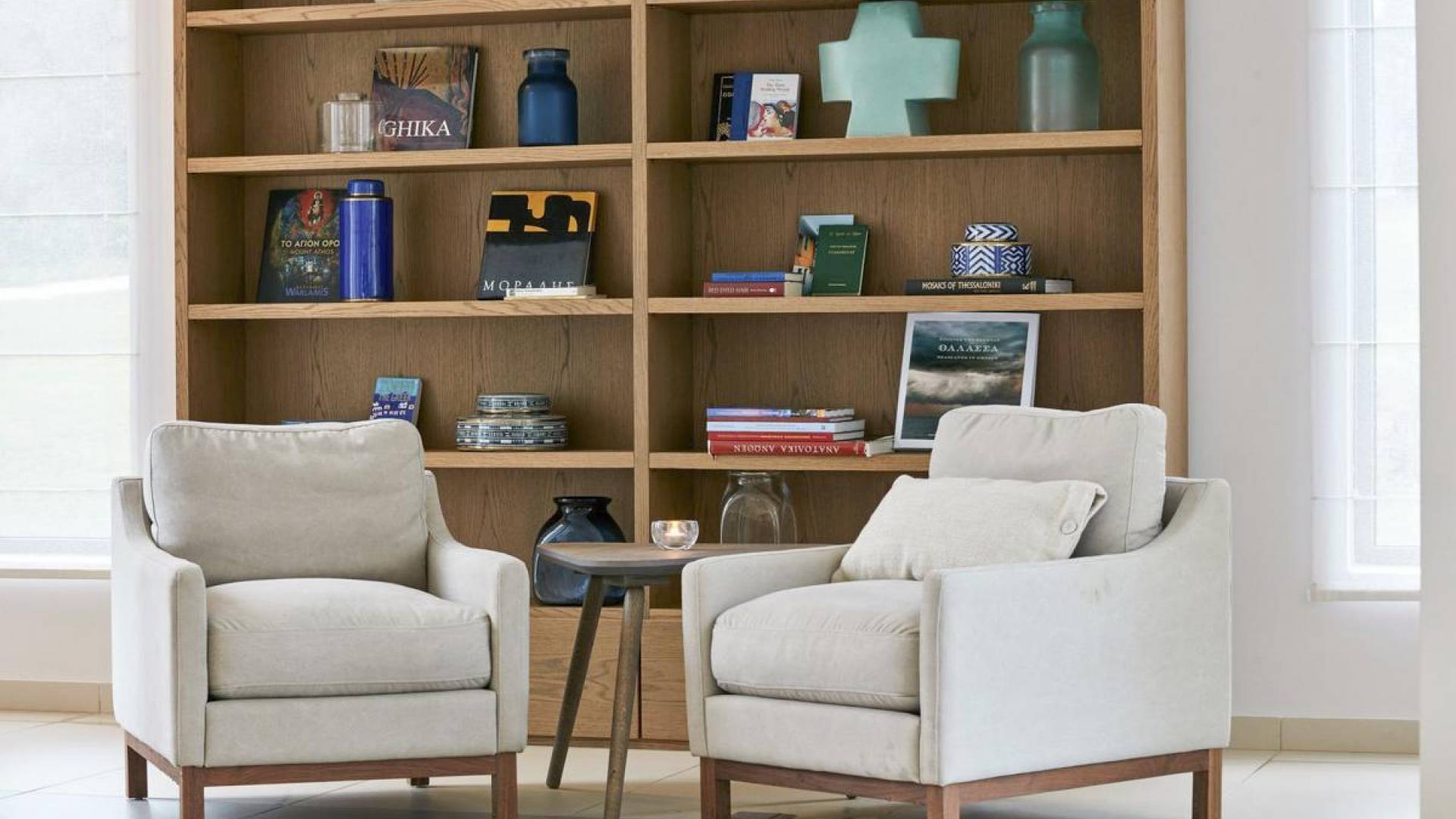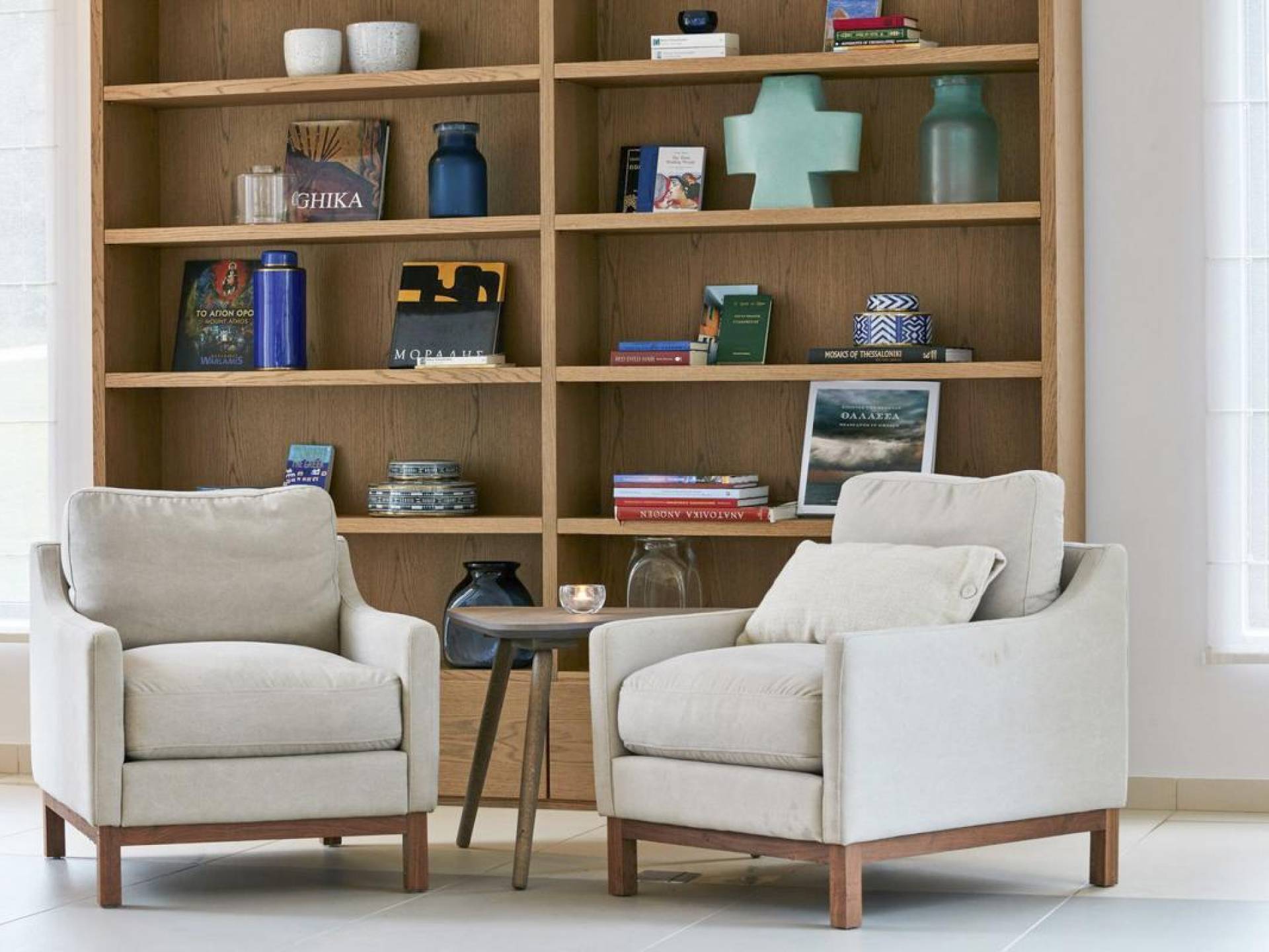The 107 m2 first floor features 3 bedrooms with en suite bathrooms and majestic views of the sea. The spacious 132 m2 ground floor includes a sitting area, a dining area for 8 people, a library, a fully equipped kitchen, and a desk area. The modern furniture provides a flowing, breathing atmosphere, while equally inspires a complete feeling of luxury and comfort. The modern kitchen is fully equipped to meet high standards with appliances from well-known international brands. The modern furniture has been carefully chosen to symbolize the island’s calm yet enjoyable atmosphere.