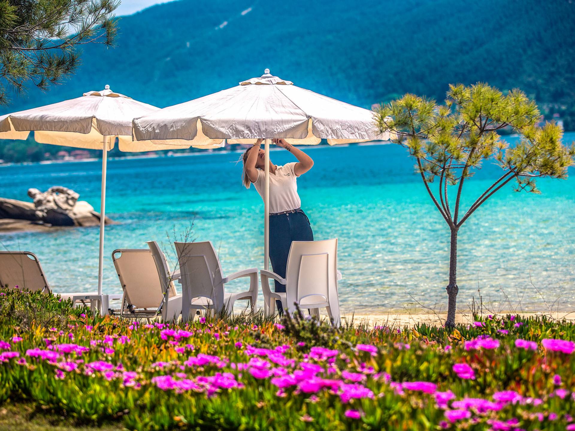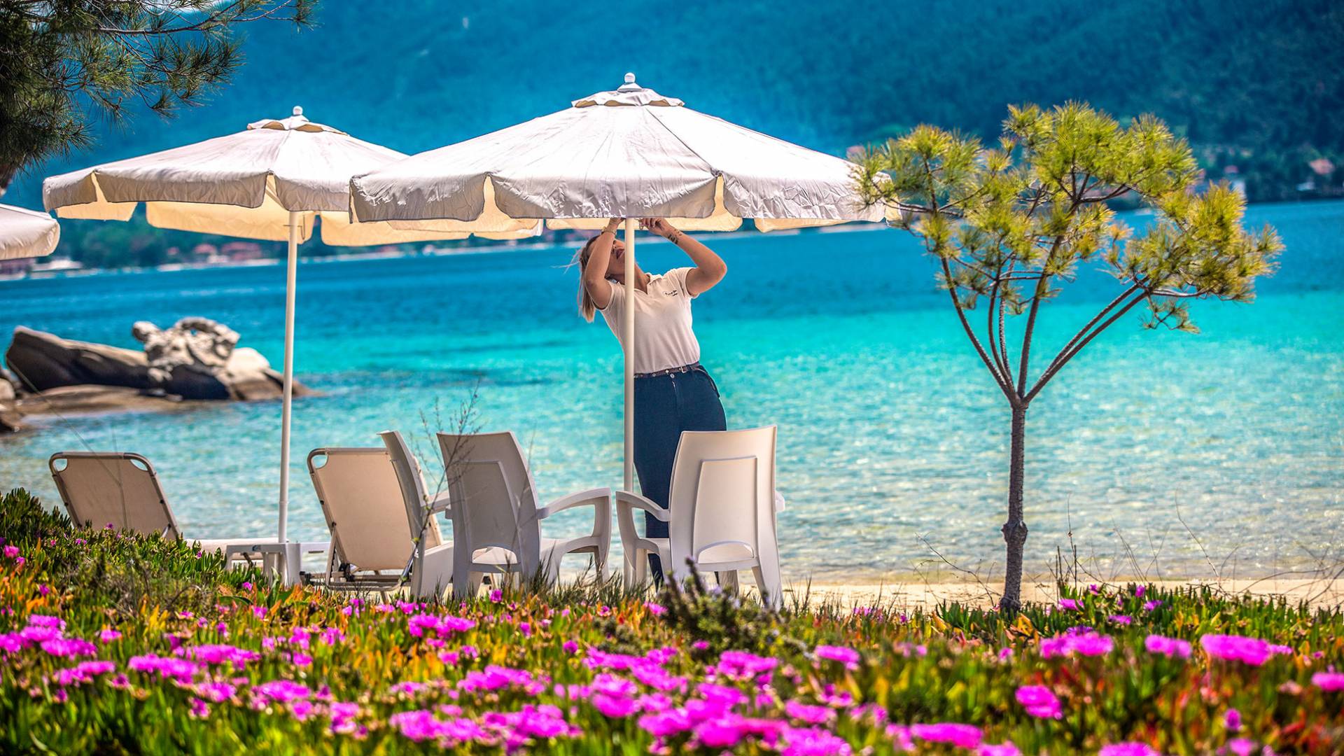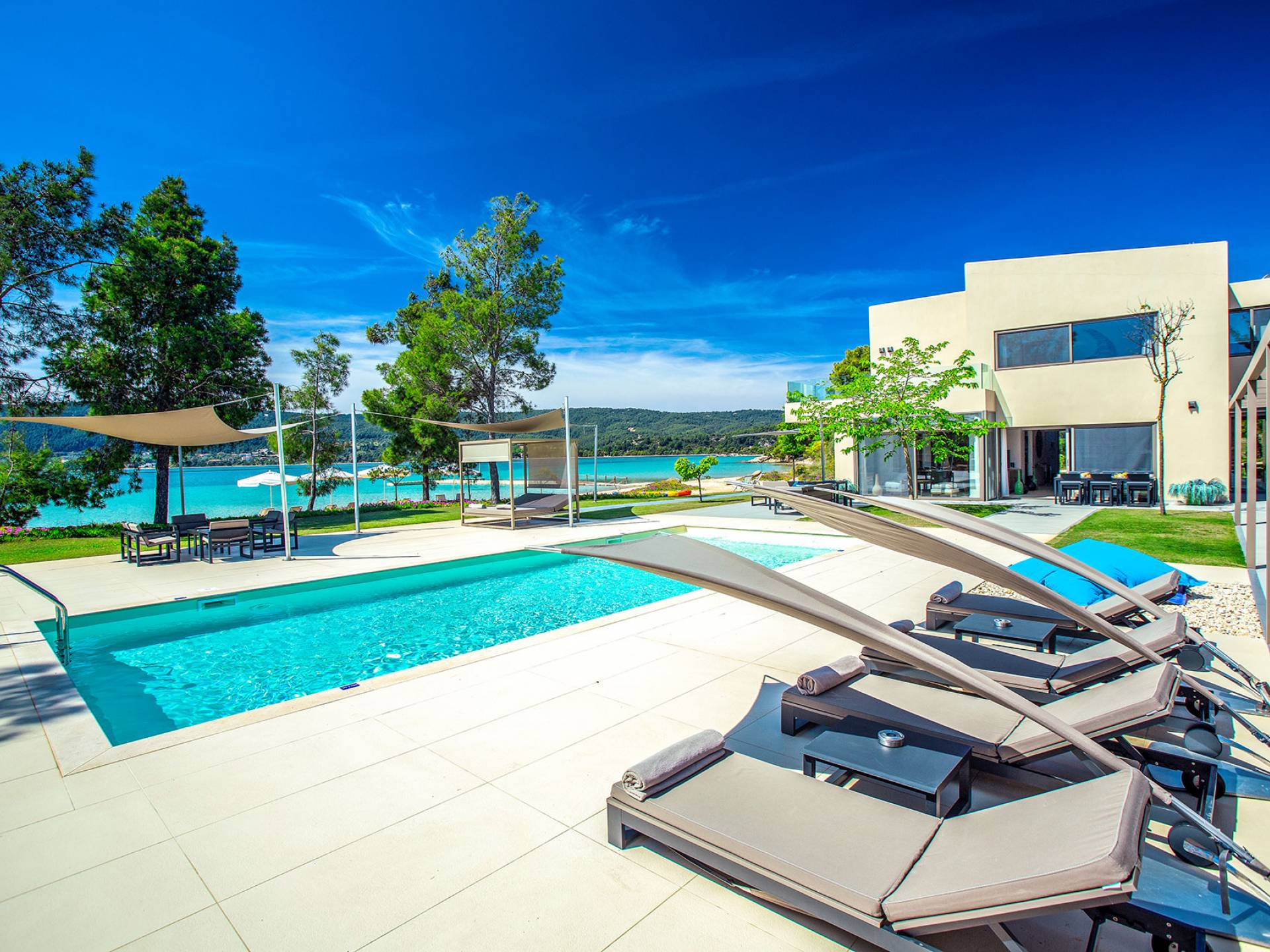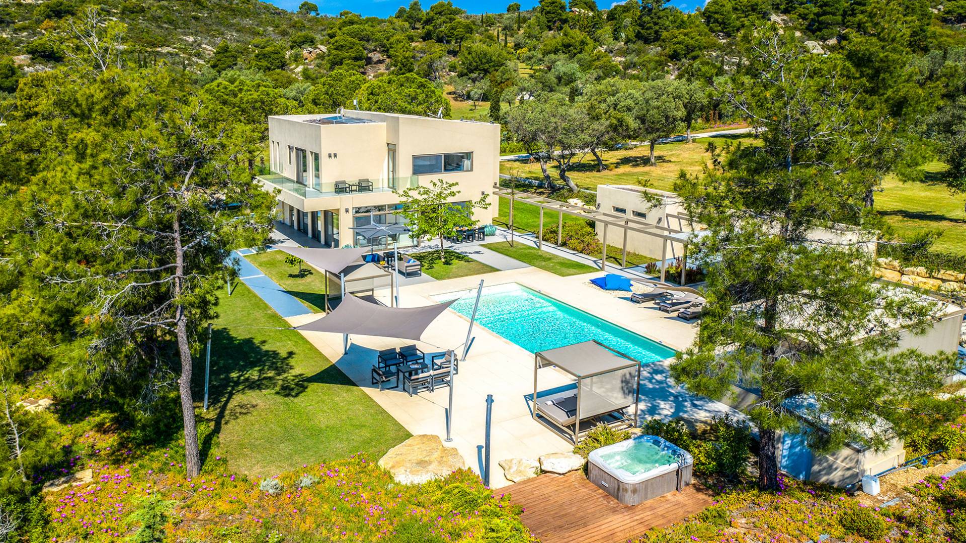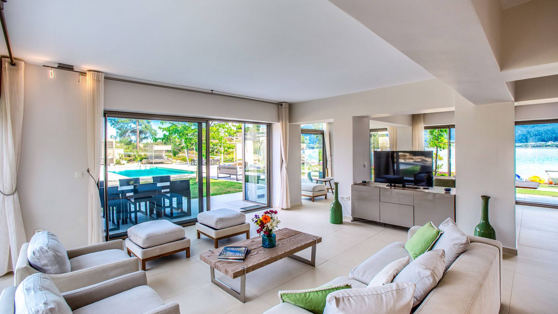 Villa Lagoon Halkidiki, a three-bedroom luxury residence of 240m2 lies on a land of 6.500 m2 on the southwest side of Viaporos Halkidiki. It is settled in a natural cove of a rare aquamarine tint only a few feet from the water with spectacular views to Sithonia and Vourvourou. The distinctive feature of the property is its closeness to the sea. The private beach is an integral part of the internal space. The latest quality standards in construction set the preservation of the island’s resources as their highest priority, while they serve to enhance the natural ecosystem the residence is supplied with solar panel energy.