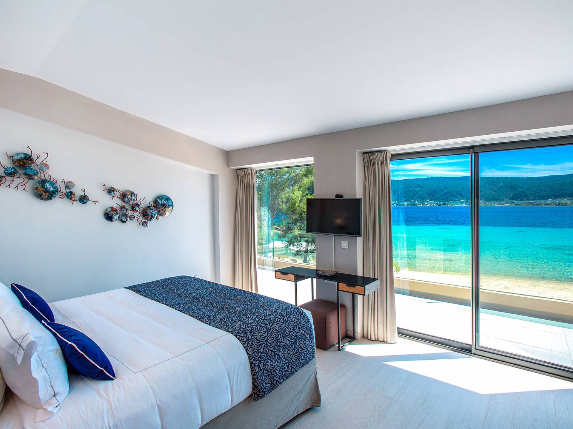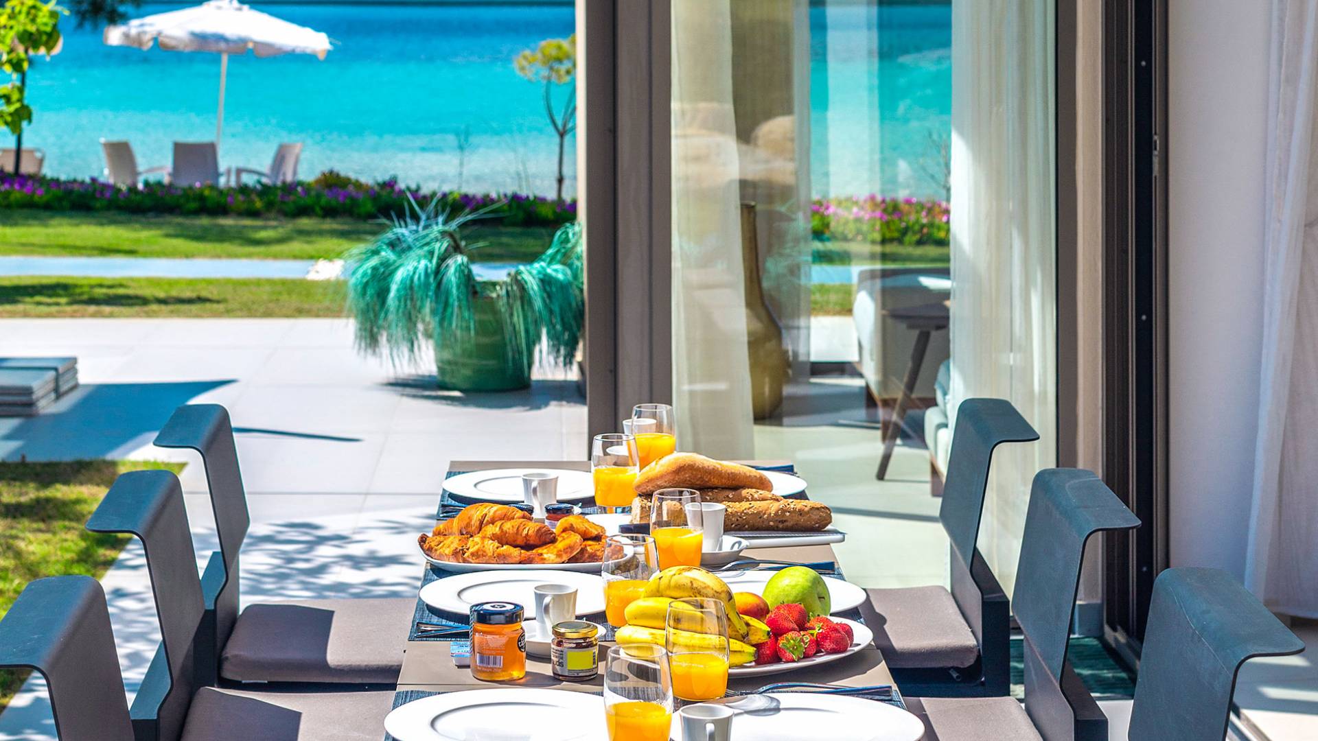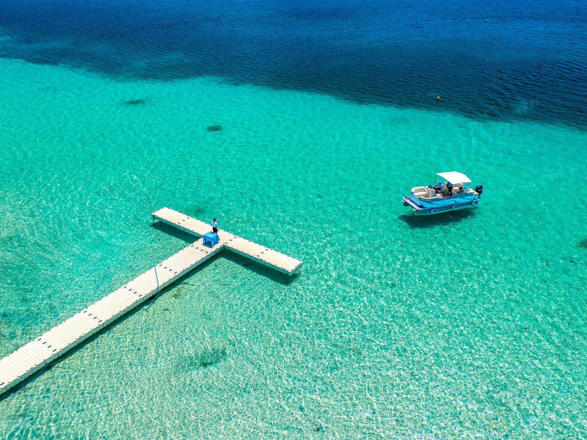 This service is private, complimentary, and available at any time. The journey between the meeting point and the island lasts about 10 minutes on the quiet and soft sea all year round. A private beach with pontoon access awaits and is ideal for secured anchorage. The natural protection from winds is offered by the closed wind-resistant cove and the calm waters that offer privacy and safety to a wide range of boats, under any conditions and in all seasons. Upon your arrival at the island, the residence lies only a few meters away from your arrival point. You will have at your disposal and included in the price of each villa a self-service 5m boat with an outboard 30hp engine.