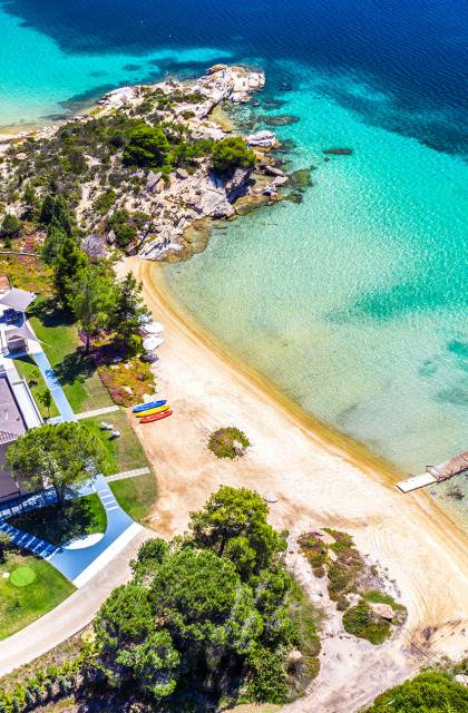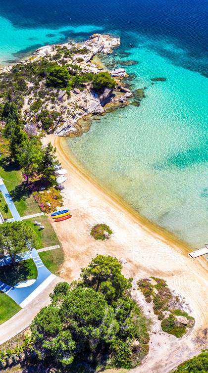 There are many reefs where one can snorkel in the crystal clear water. Diaporos coves are windproof and they can be reached within minutes from Vourvourou with a private yacht or organized boat trips. There are no permanent residents on Diaporos, yet there are holiday villas sparsely scattered around the islet that provides total privacy and will give you the sense that you own a private island. No shops or restaurants are available on the islet, yet nearby Vourvourou provides all amenities.