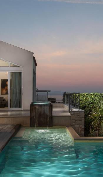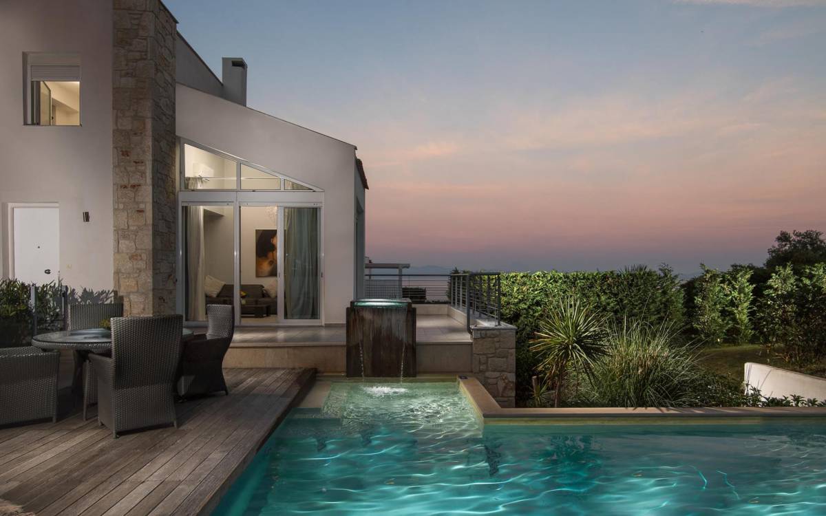 Located right above Toroneos Bay these luxury villas in Halkidiki combine elegance and minimalist design with the typically Greek blue-green background. As they are built amphitheatrically, they feature panoramic views and outstanding facilities. Whether you are looking for a romantic retreat, a family vacation villa, or luxurious accommodation in Halkidiki, our beachfront unique resort is a perfect choice. If you are looking for a villa with a private pool in Halkidiki, a suite in Halkidiki or a unique 5-star holiday experience, then you have come to the right place.