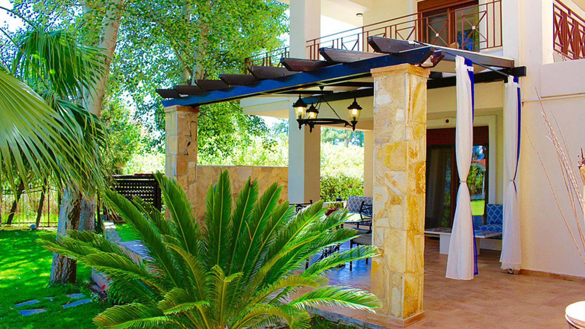 The spacious patio of the Villa, which has shadow all day long, serves as the best choice for outdoor dining and for monitoring the children who are playing in the garden. All floors are accessible by an interior lift. The Villa have direct access to the Garden, to the Central Garden Pool and to the Beach. Most rooms enjoy unlimited view of the Garden, the Pool and the Sea.
