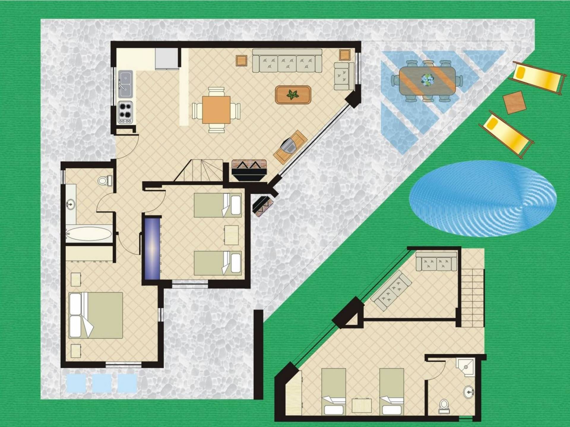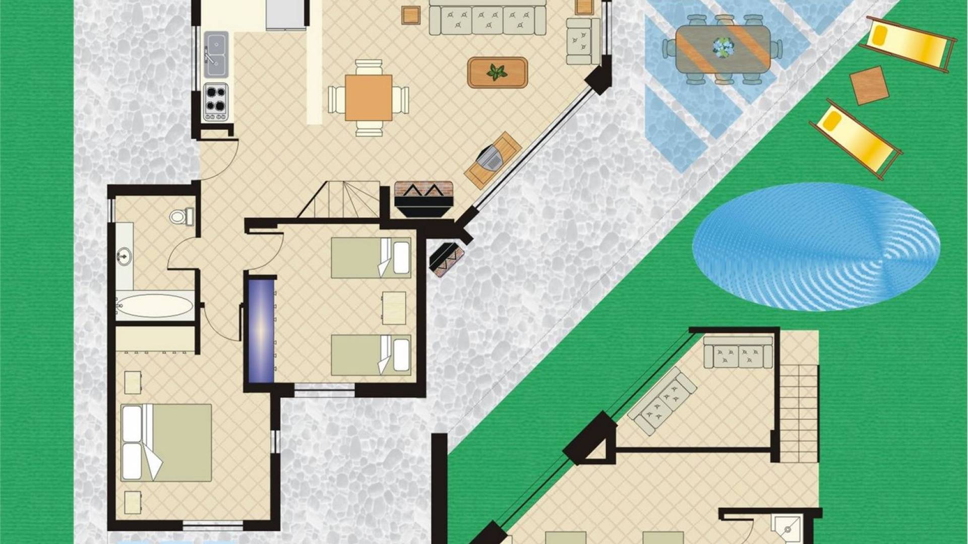 Nefeli villa is a large, luxurious villa contained in its own garden and has its own private swimming pool. The villa holds one double bedroom and a two single bedroom on the lower level and a further two-bed bedroom on an upper level, that has its own wc. The villa also contains a spacious living area and a connected kitchen facility. For your hygiene, the villa houses a bathroom with wc, containing a bath.