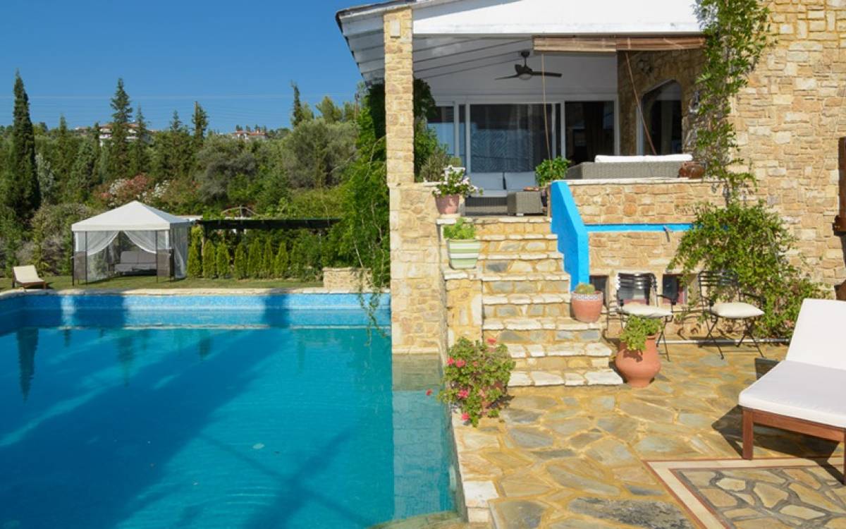Maria Elena Villas Halkidiki is a synonym of hospitality. Uniquely placed and built upon the traditional architectural values, it is in total harmonization with the surrounding environment. The constant modernization of the facilities and their small sizing ensures personal service in an environment of unparalleled beauty and discrete luxury. Located in the second peninsula of Chalkidiki, the luxurious stone-built villas are the ideal destination of dream holidays.