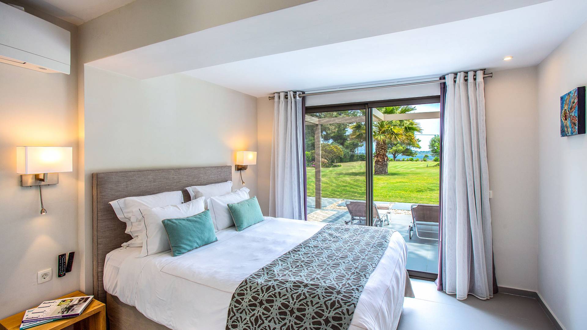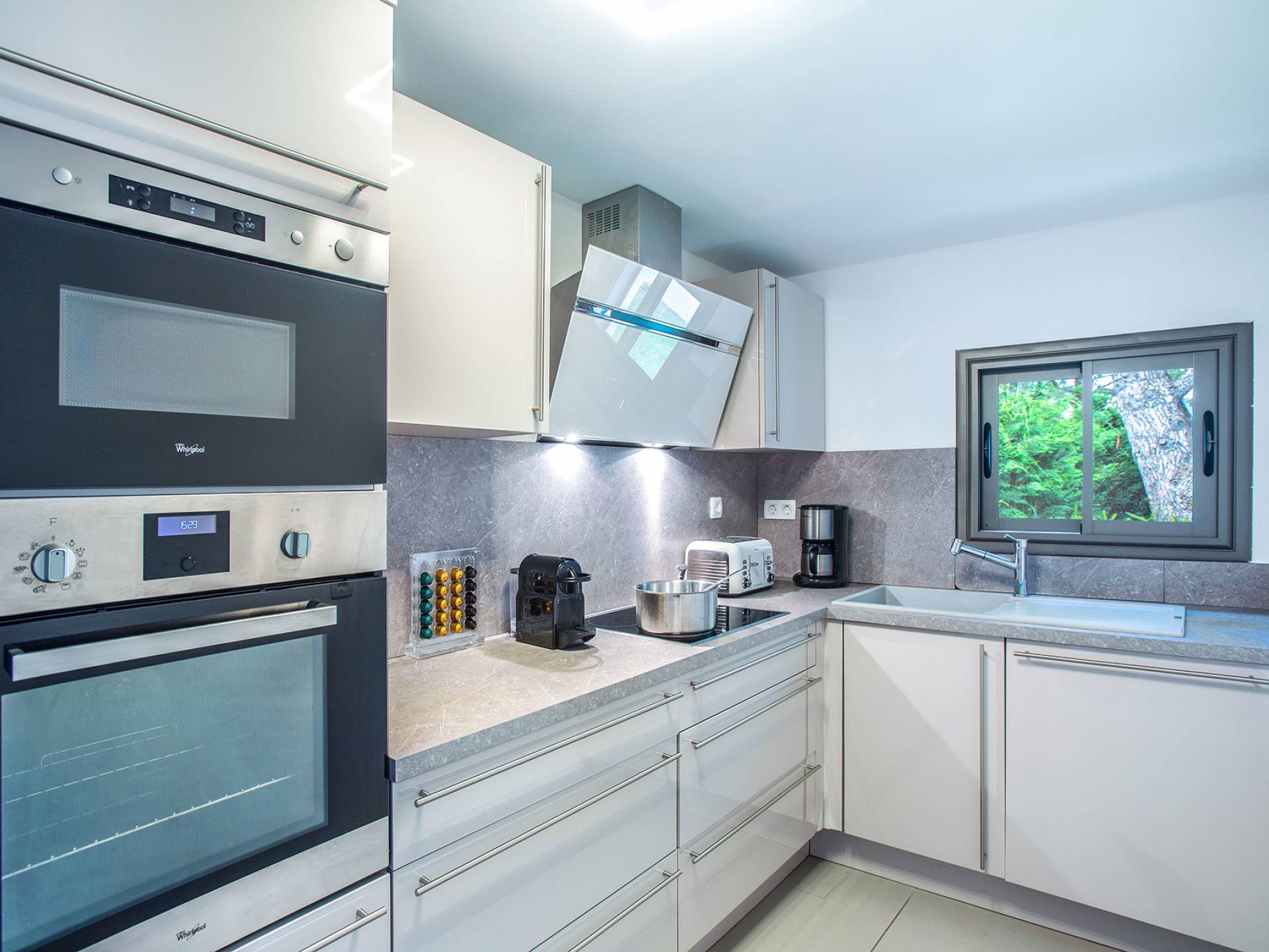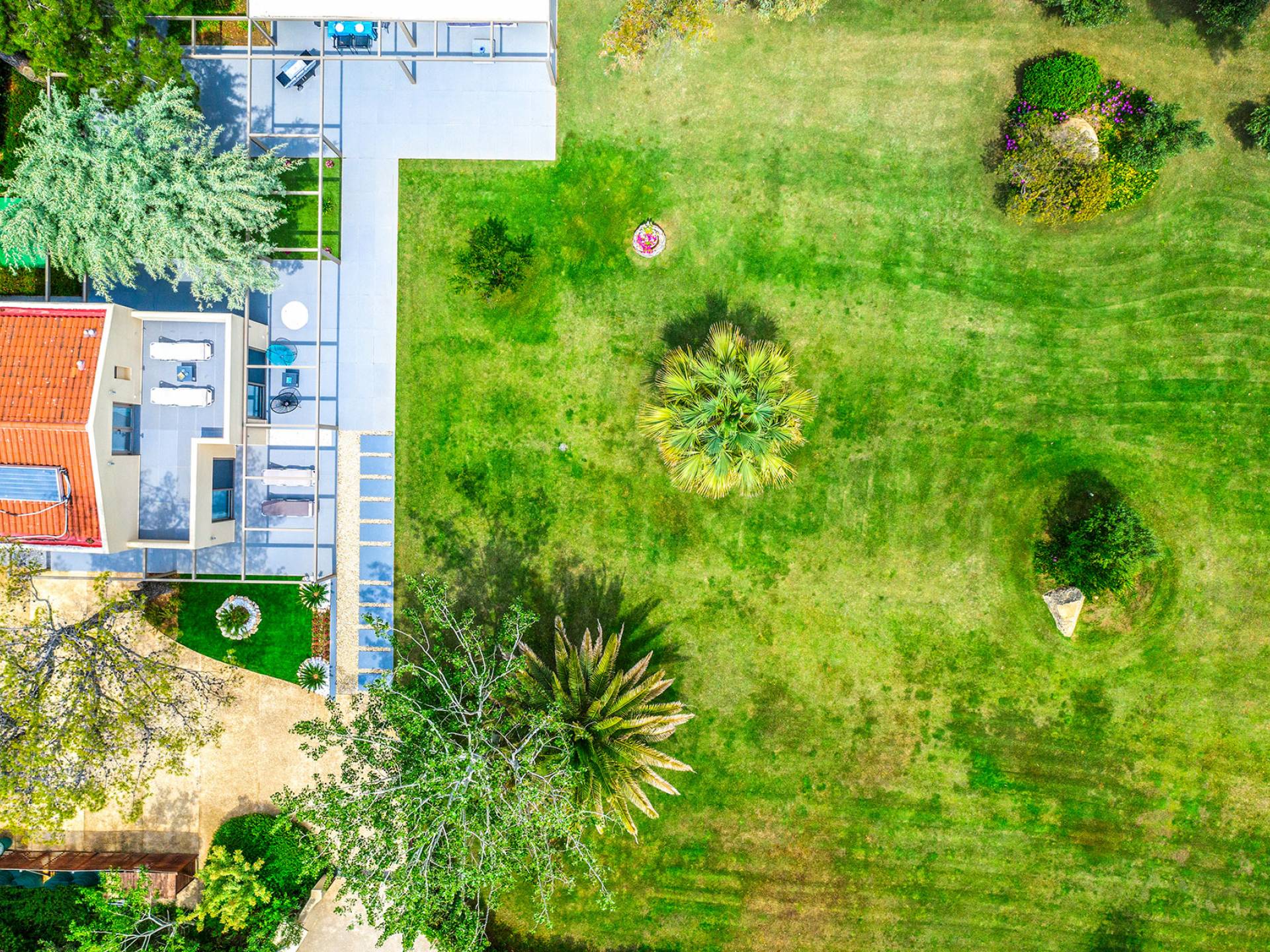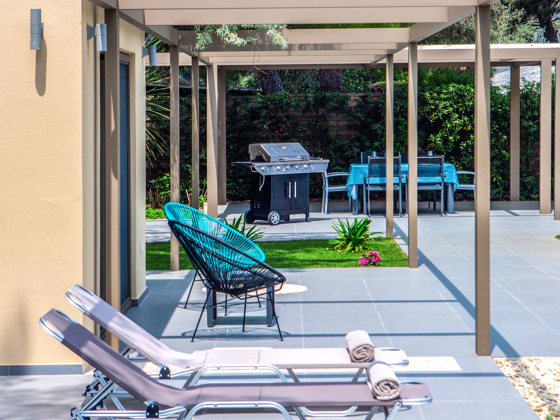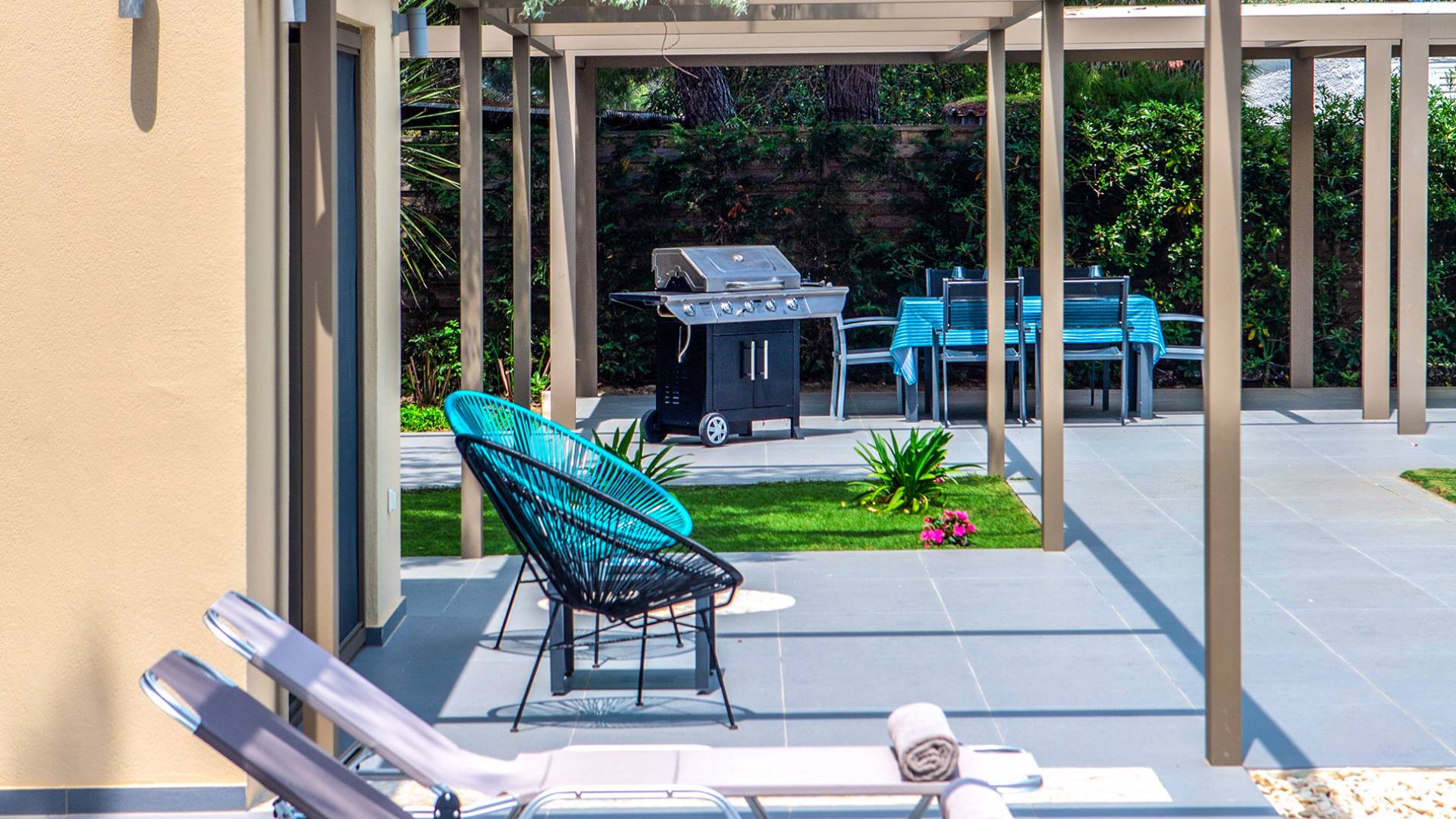 Palm Garden Villa Halkidiki is equipped with satellite TV, Wi-Fi, air conditioning, safe and security system. The latest quality standards in construction gave the highest priority to preserve natural resources. The beautiful garden and terraces, the barbecue area, and the outside seating provide endless possibilities for relaxing and joyful activities. The rooftop terrace offers a majestic view over the 1000m2 property. Diaporos Island can be seen on the horizon. The beautiful beach with crystal clear waters is available for a refreshing dive.