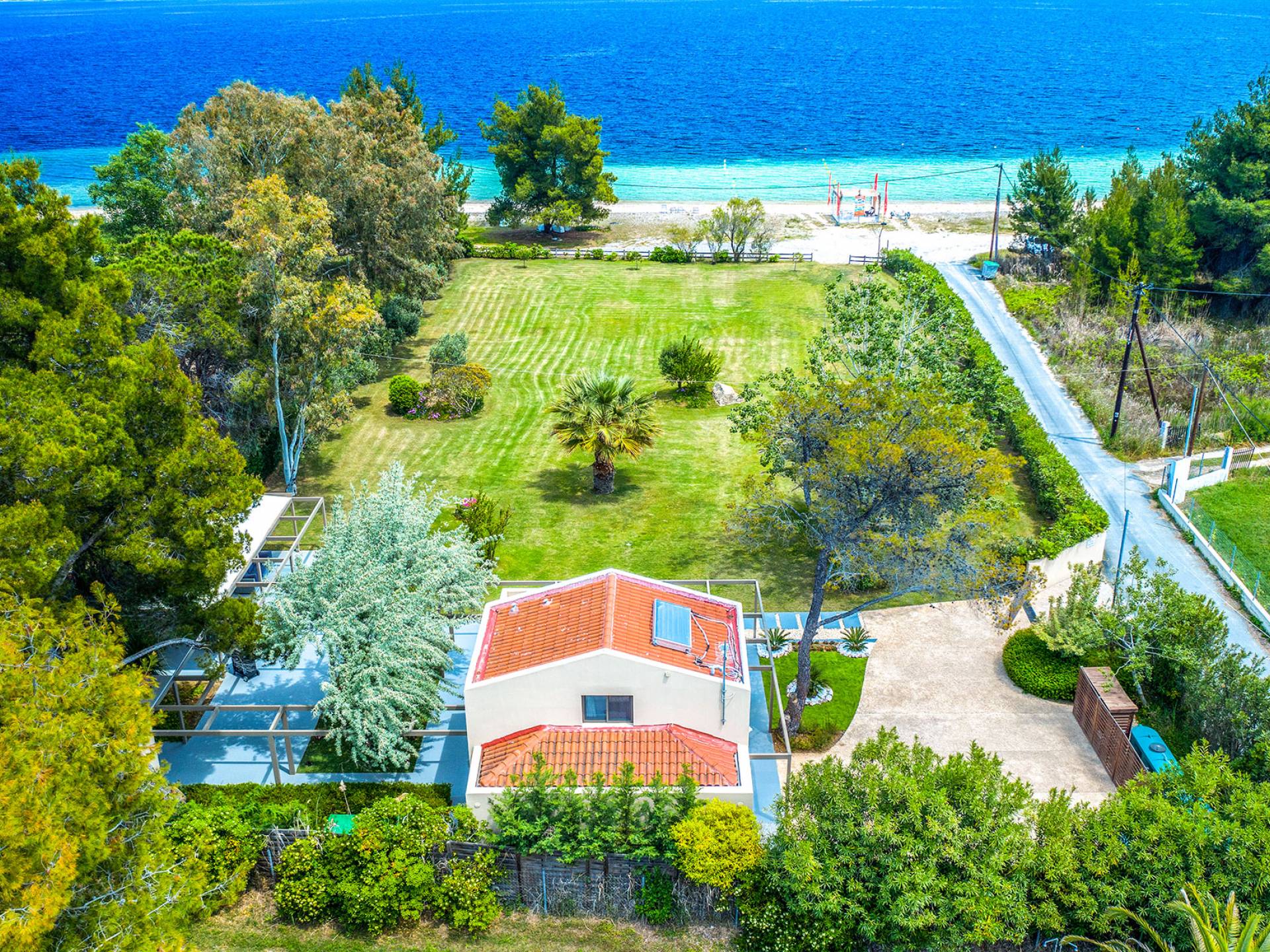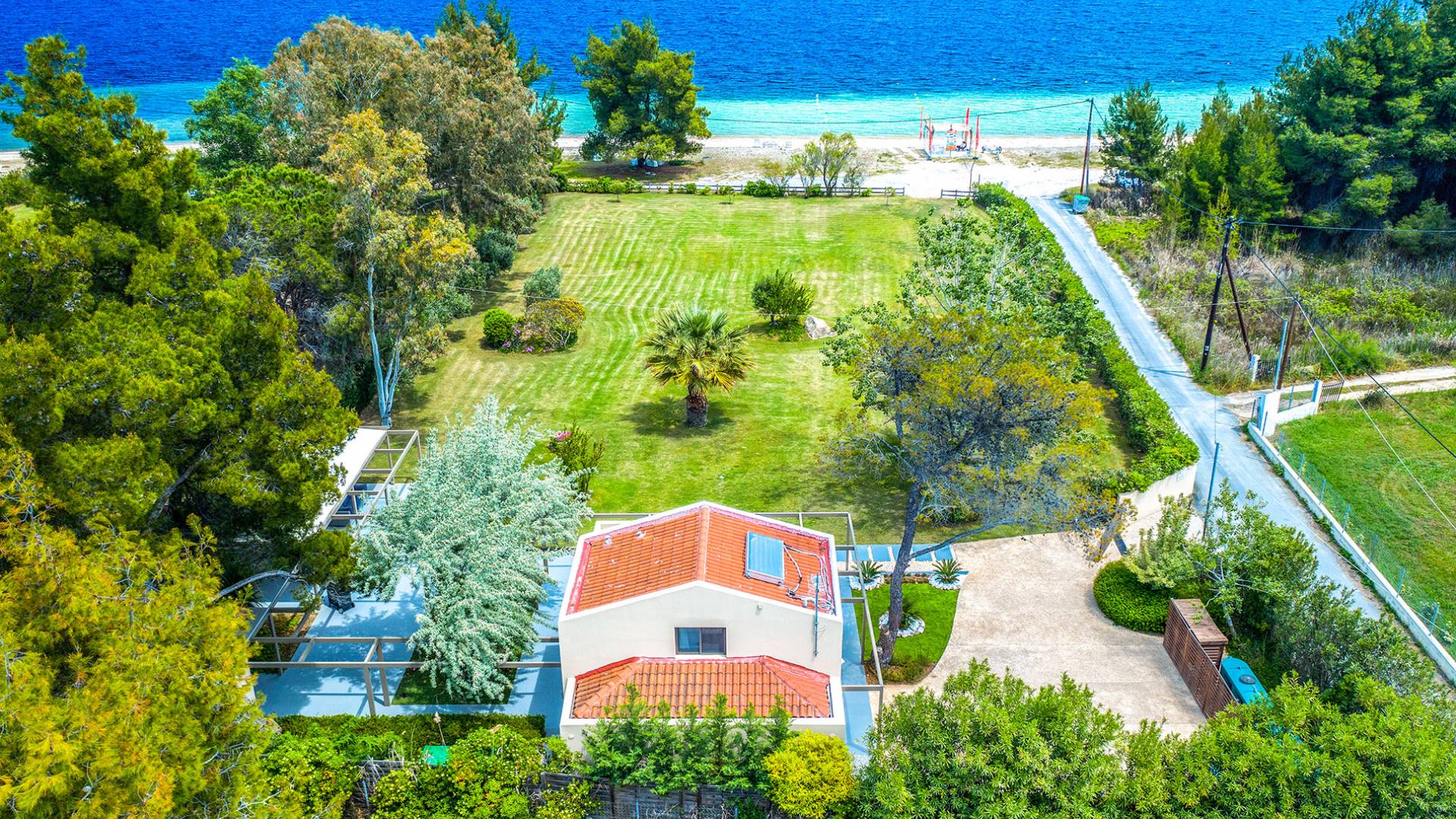 It lies in a land of 1.350m2 in the region of Vourvourou. The white sandy beach is just a stone’s throw away with direct access yet the expanse of lawn gives ultimate privacy and peace. Diaporos Island and the famous Mount Athos can be seen on the horizon. The ground floor of 70m2 consists of a spacious bedroom, bathroom, fully equipped kitchen, and dining area. On the 35m2 first floor, the chic bedroom with the en suite bathroom offers spectacular views and effortless luxury.
